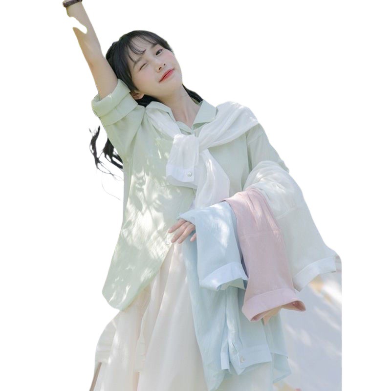 甜美雪纺衬衫防晒衣开衫薄款女吊带裙外搭罩衫夏季披肩冰丝小外套