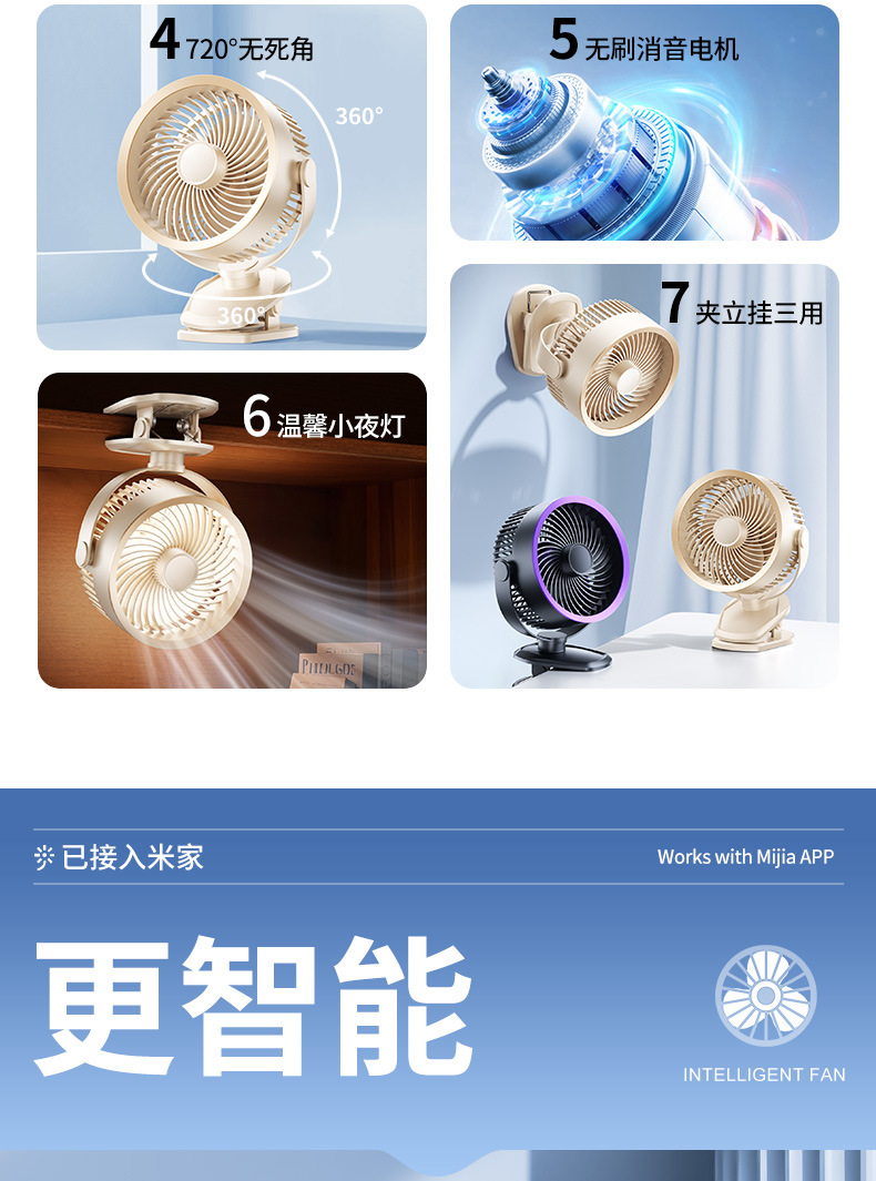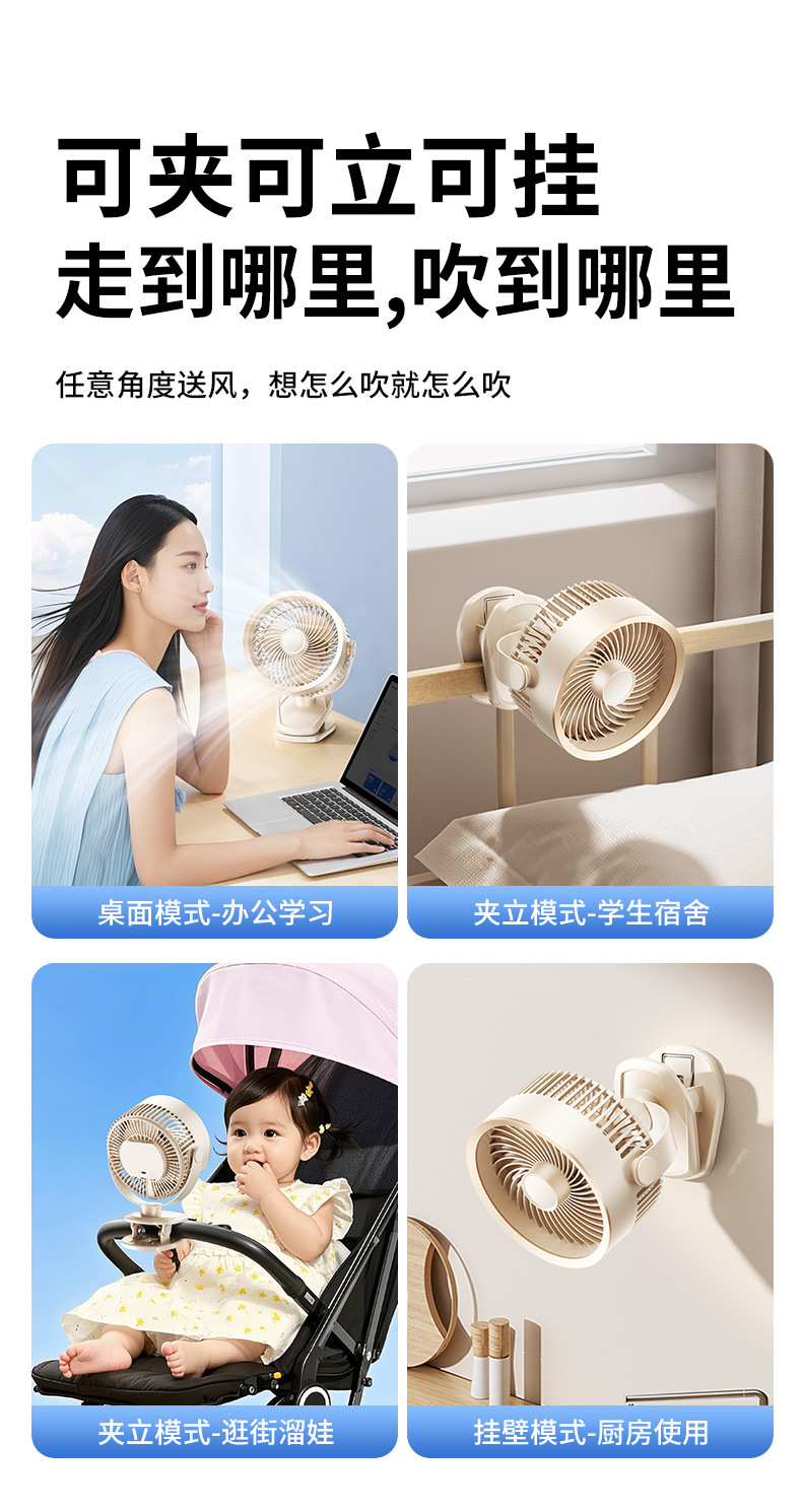 USB桌面小风扇迷你办公室风扇台式学生USB大风力静音夹子风扇跨境