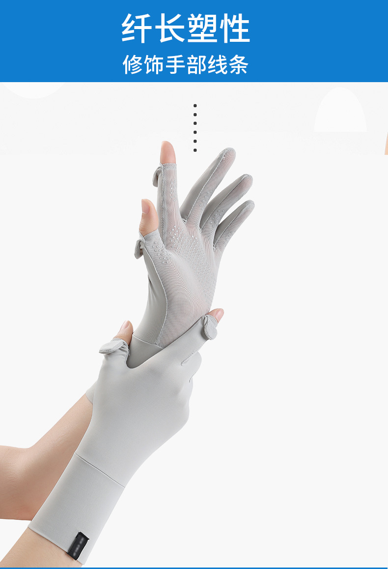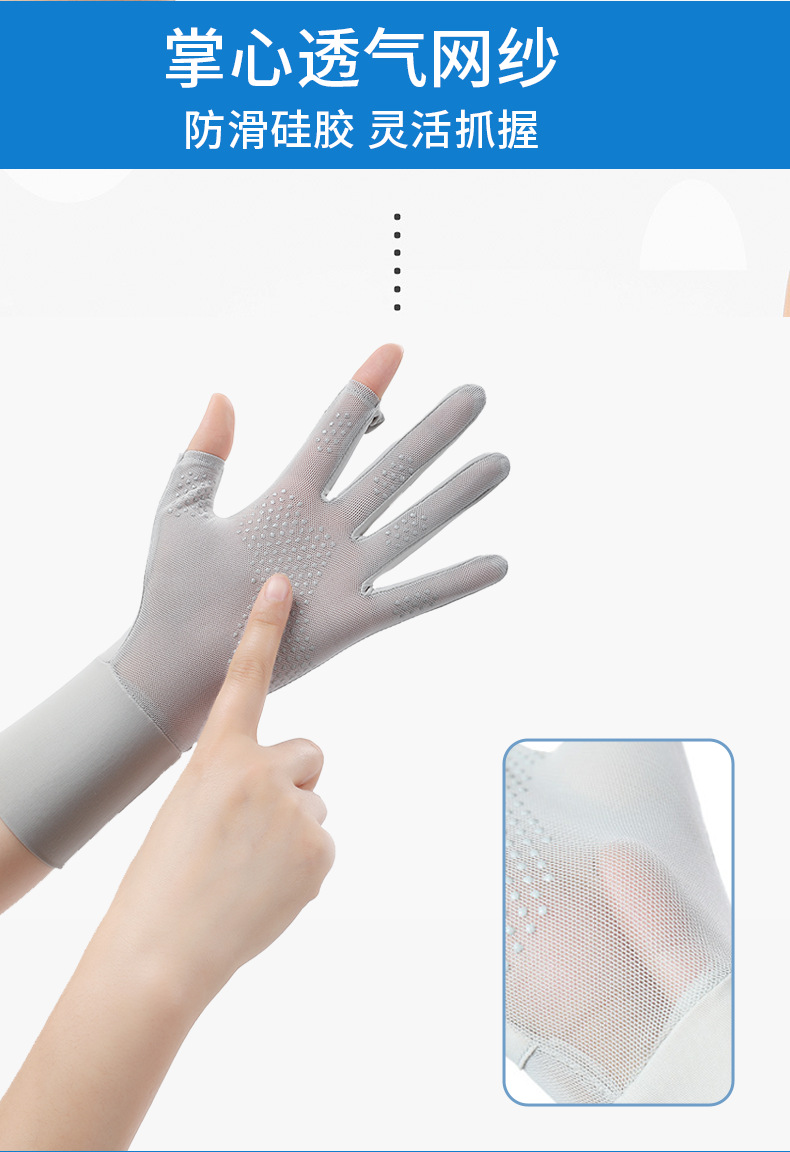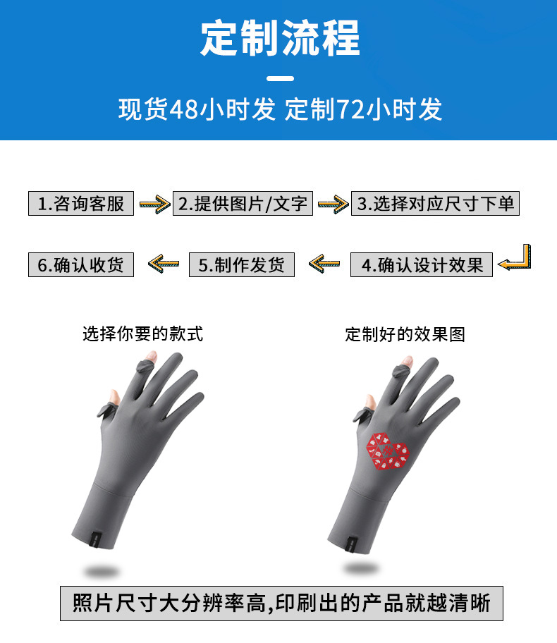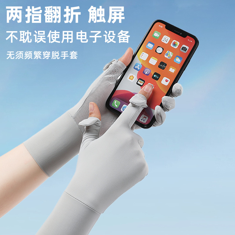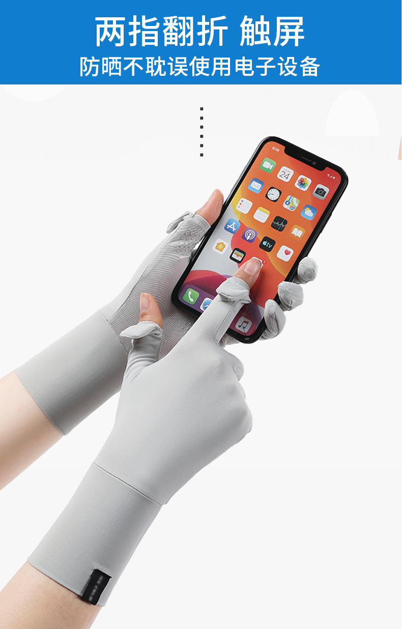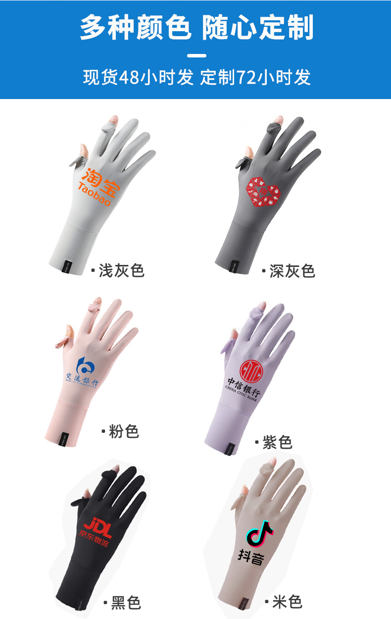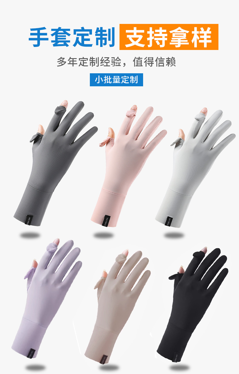 定制夏季防晒手套女士透气防紫外线翻盖触屏骑行冰丝手套中长定制