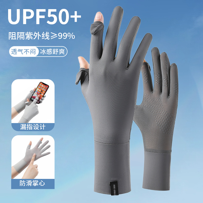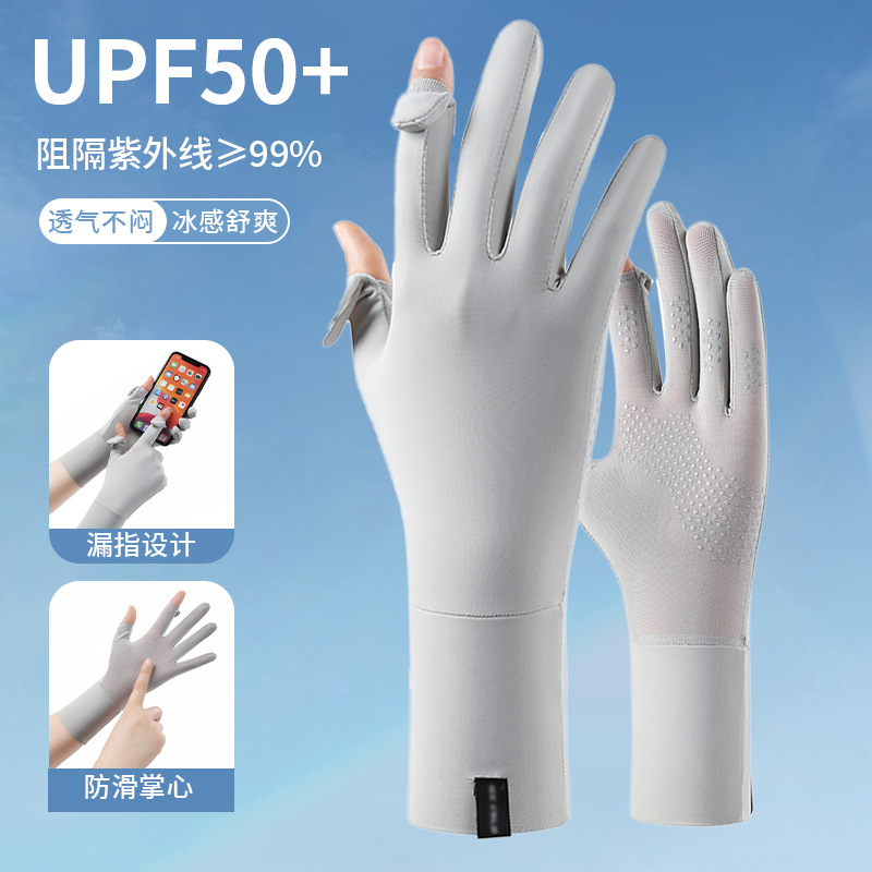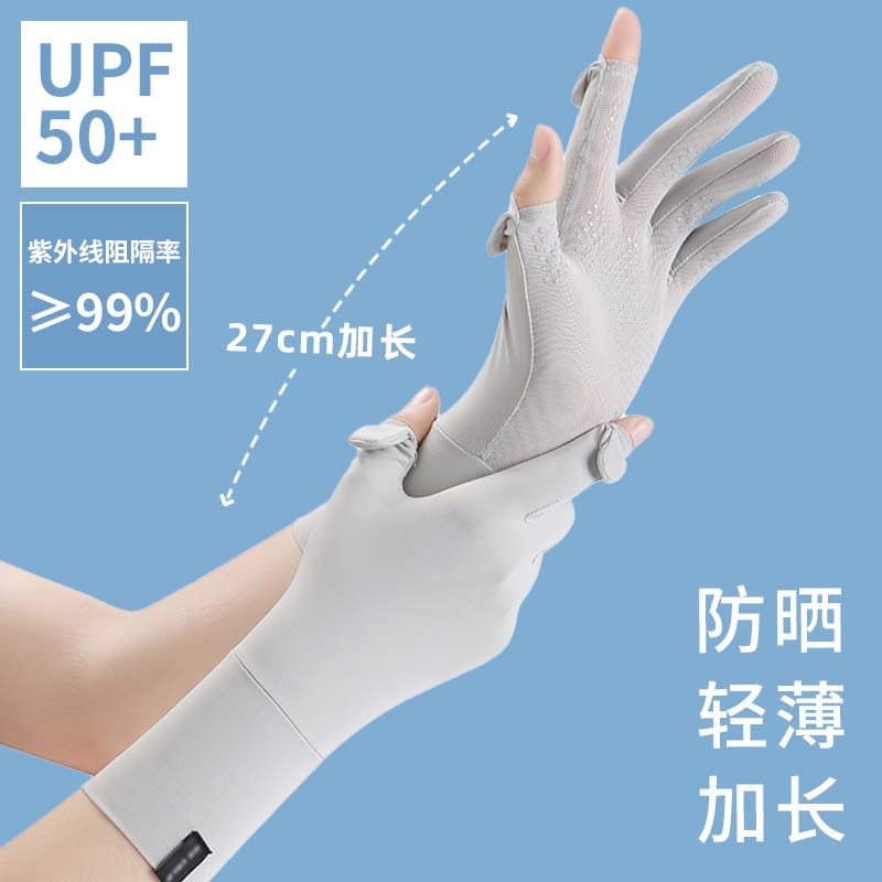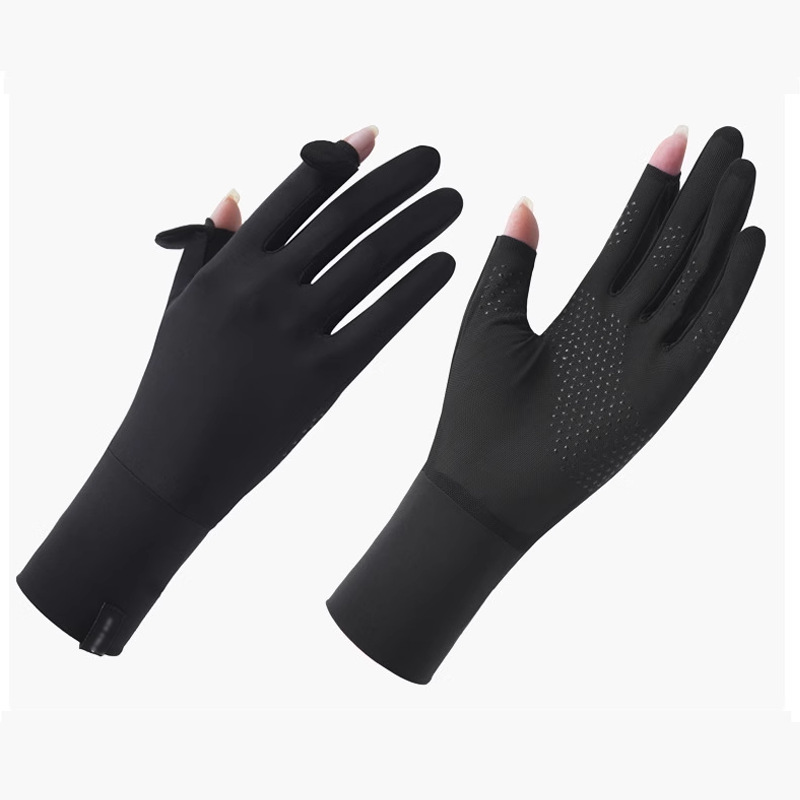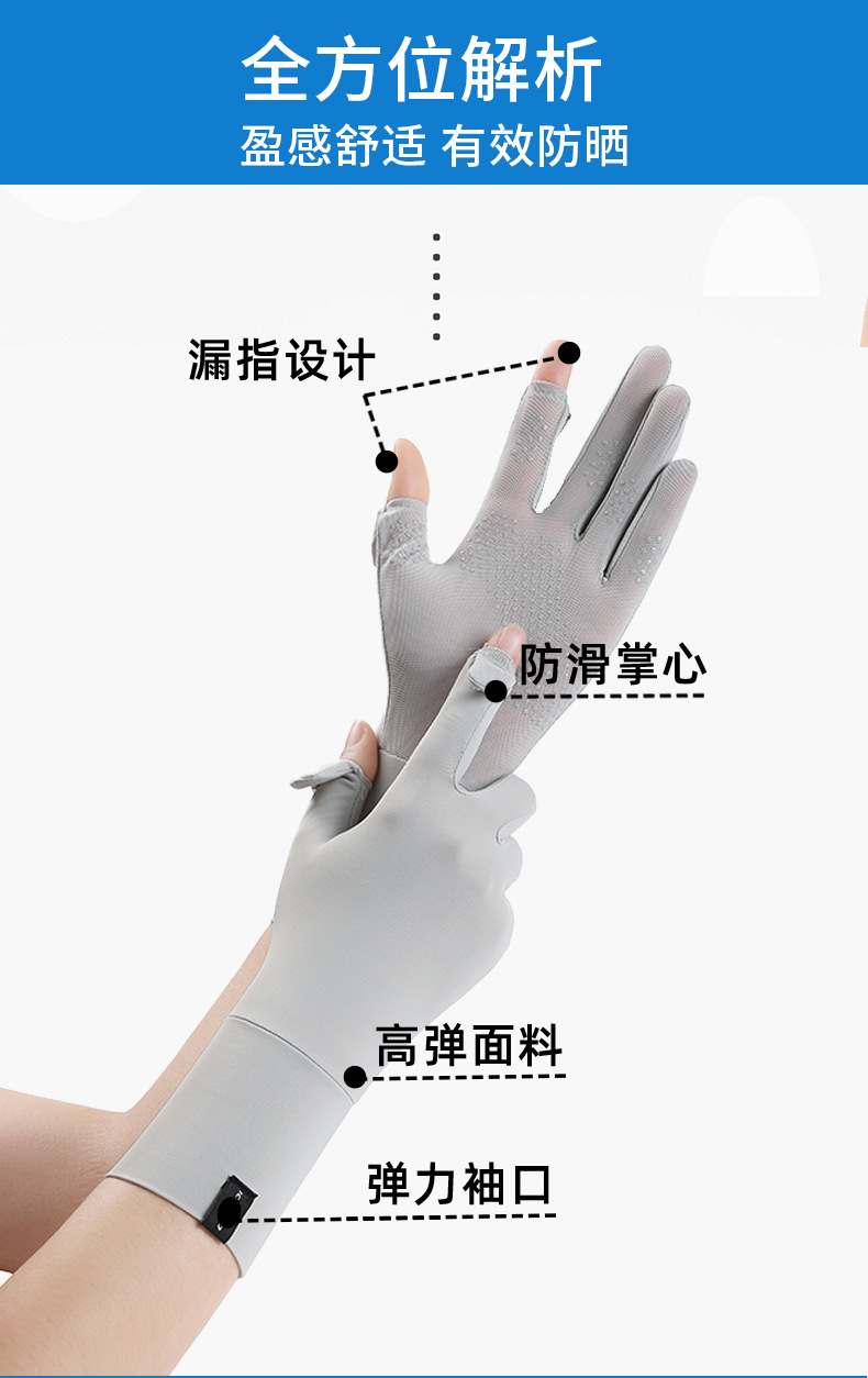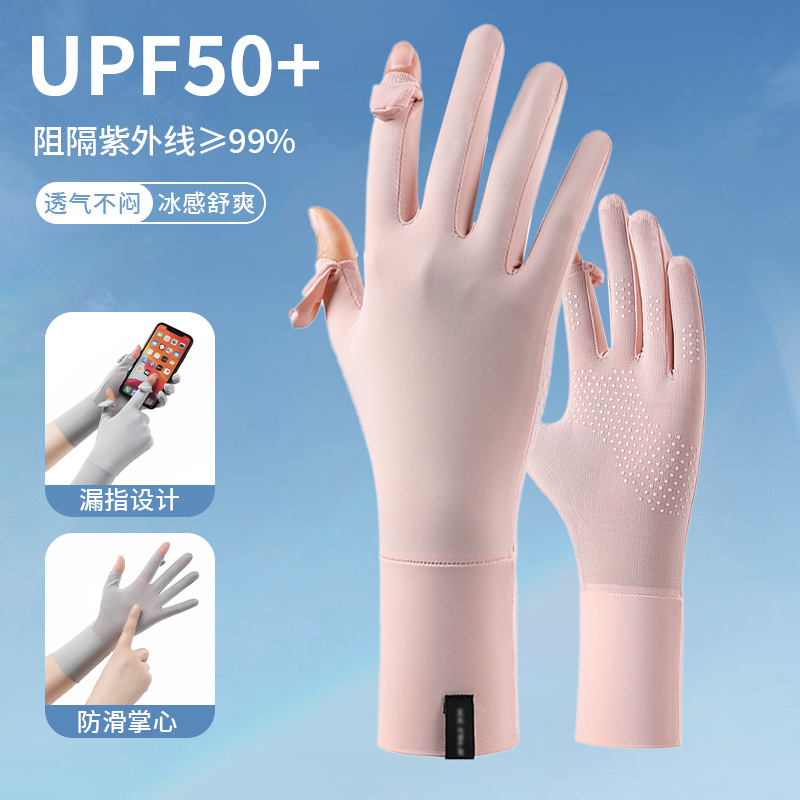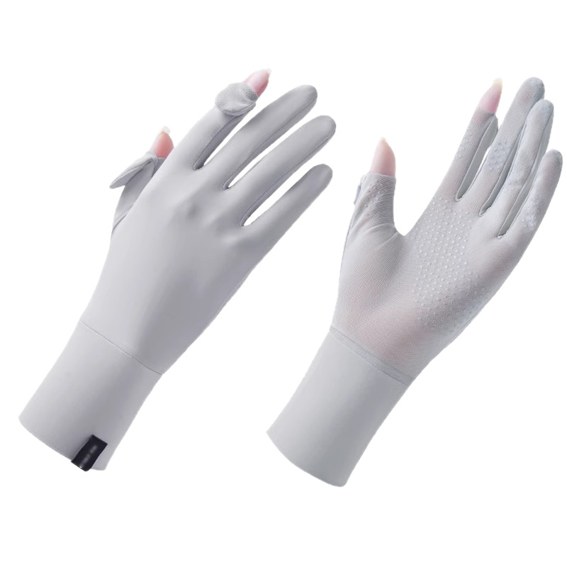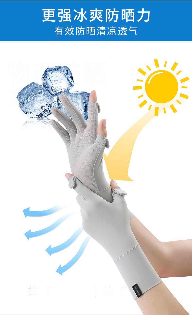 定制夏季防晒手套女士透气防紫外线翻盖触屏骑行冰丝手套中长定制