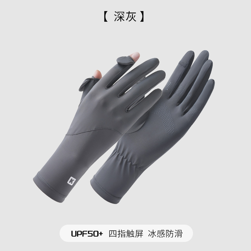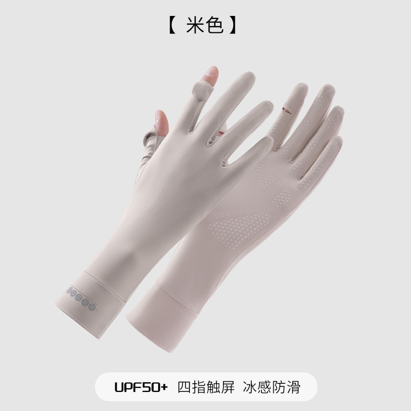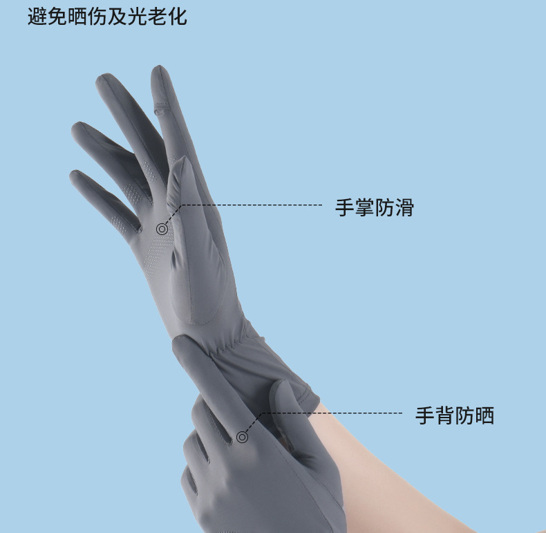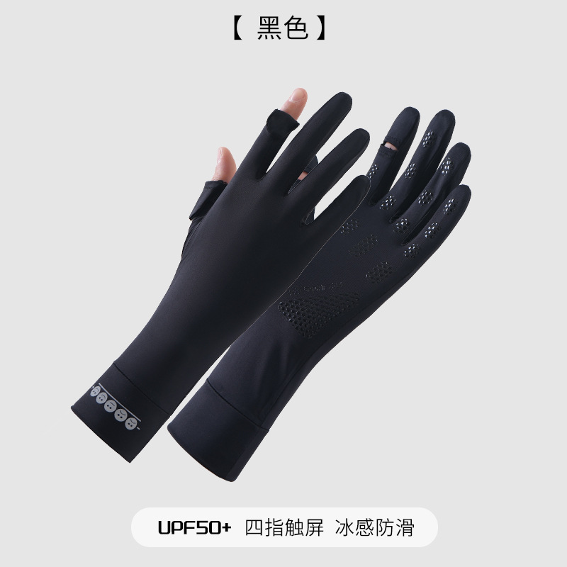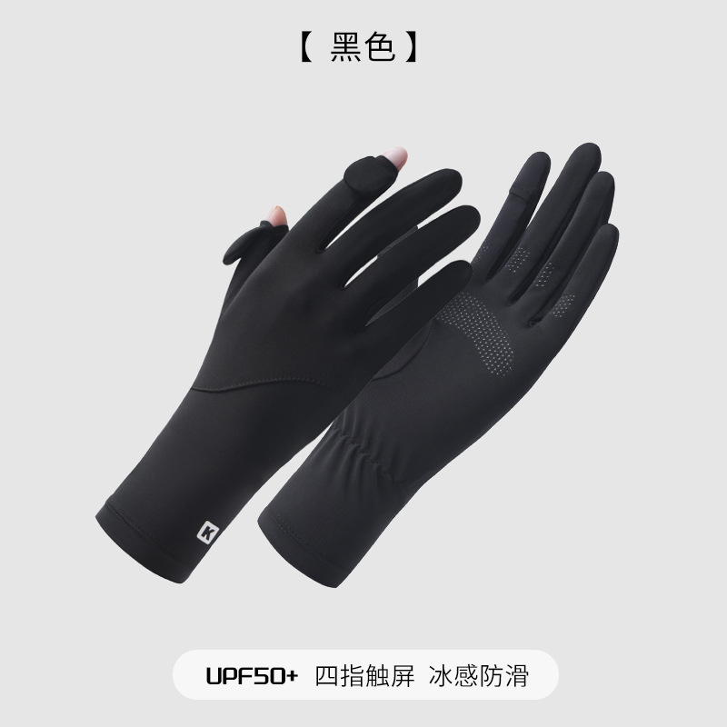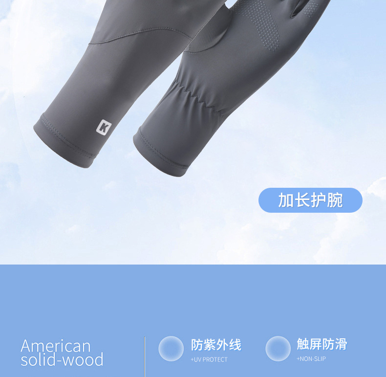 防晒手套女K标夏季防滑防紫外线加长护腕触屏冰丝中长款骑行手套