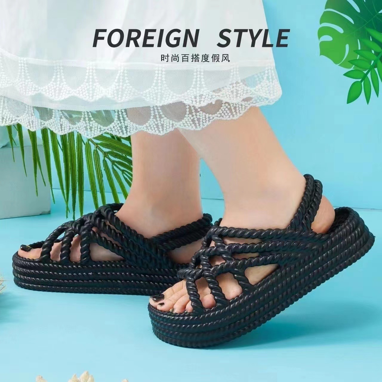 凉拖鞋女夏外穿超软2025可爱花花百搭轻便厚底海边沙滩凉鞋女外穿