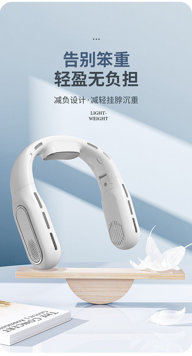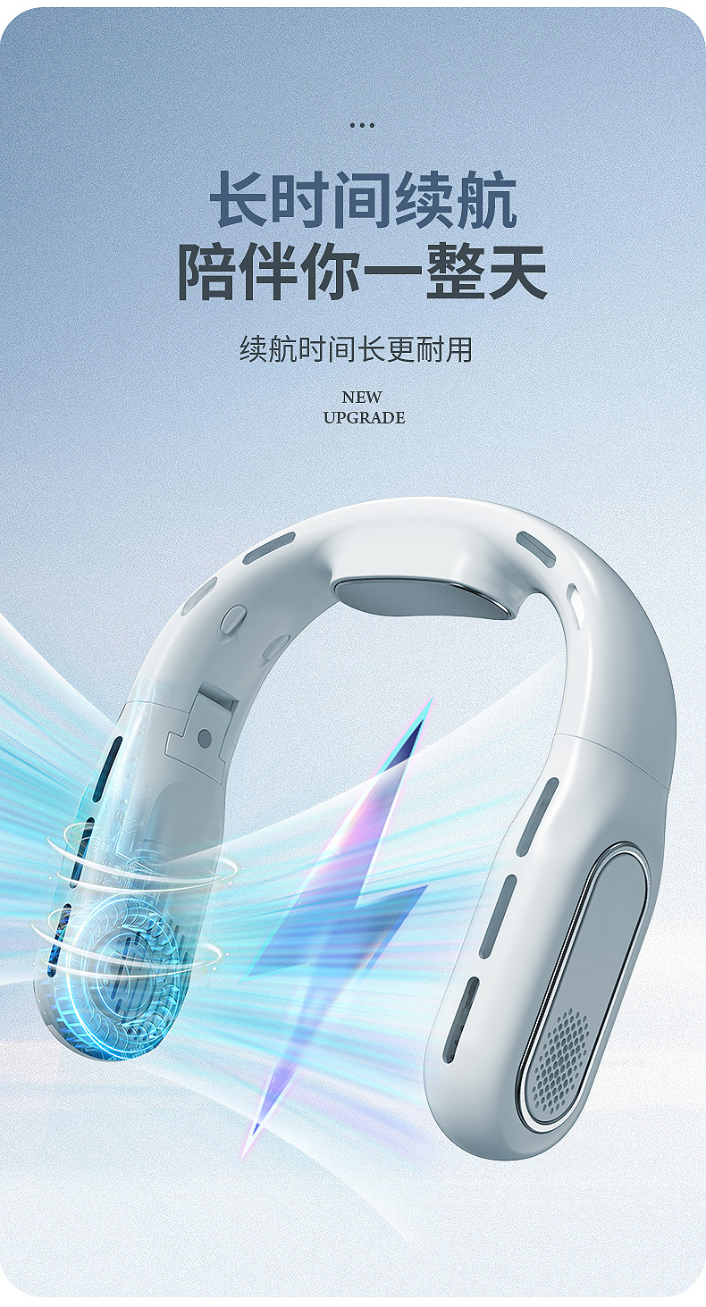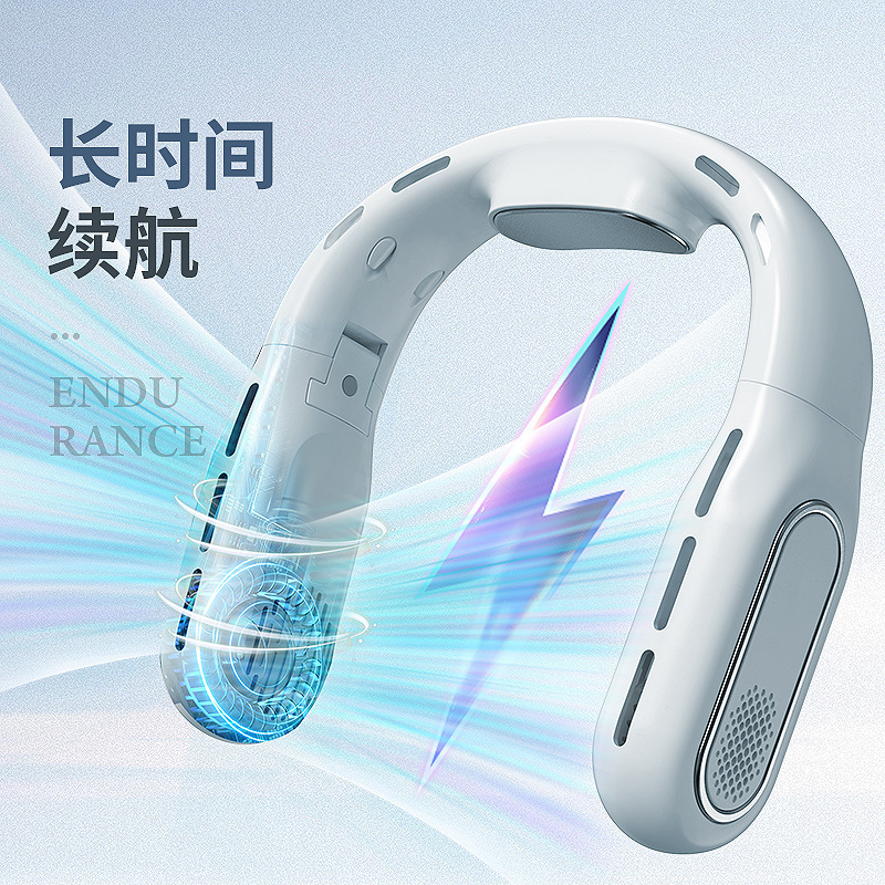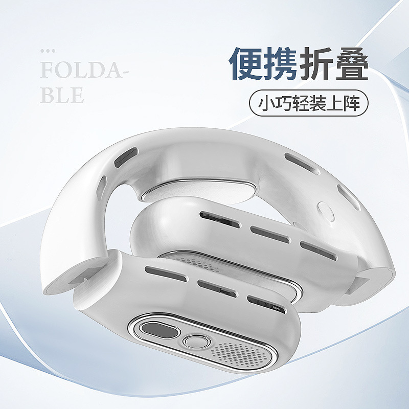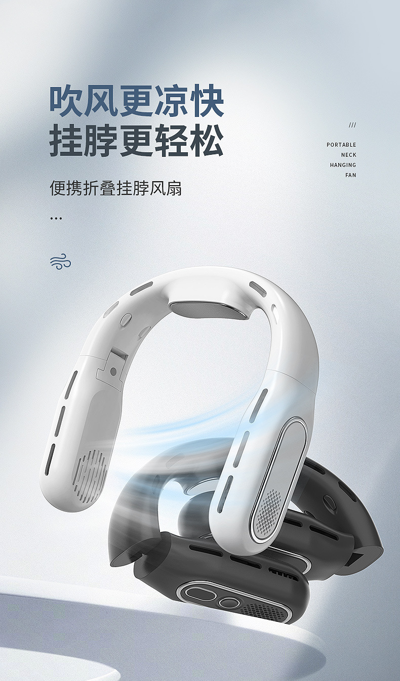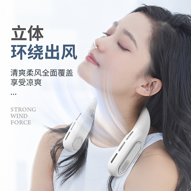 跨境2026新款无叶折叠挂脖风扇懒人静音大容量便携数显户外小风扇