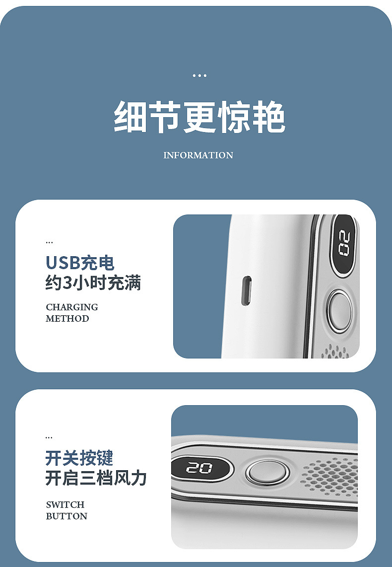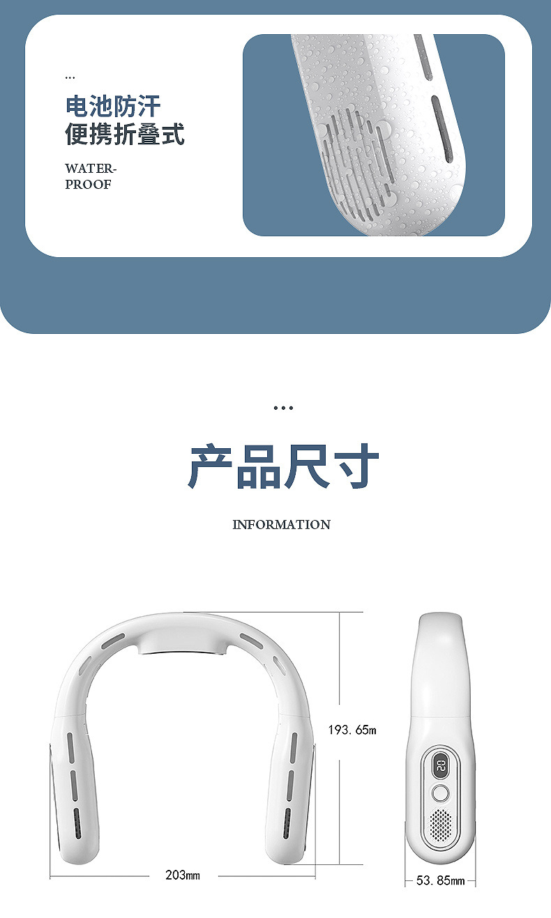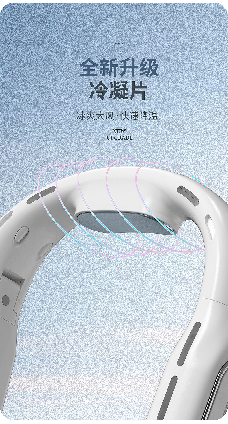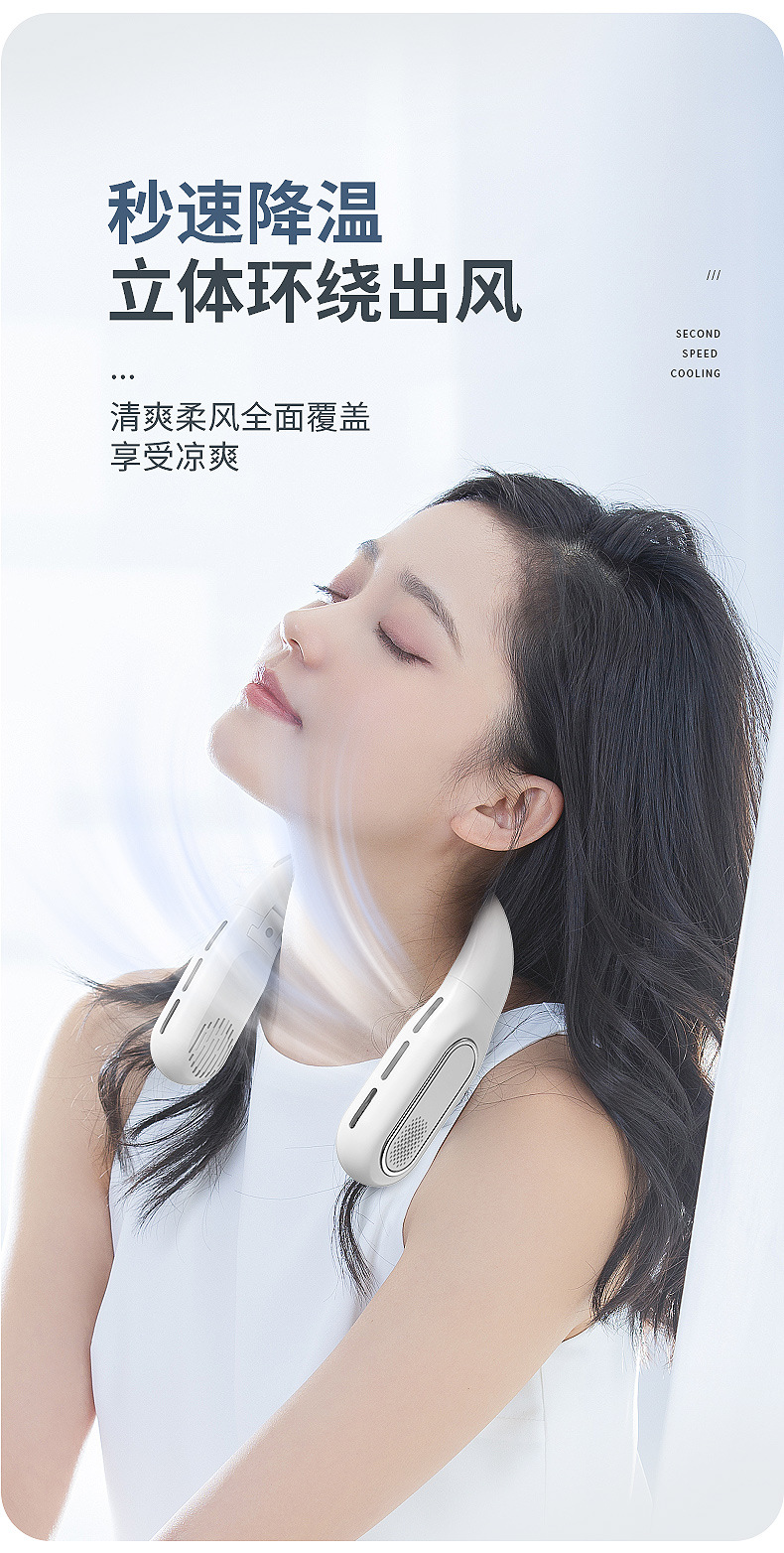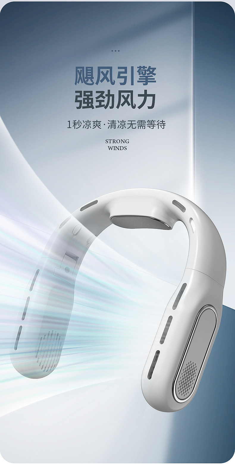 跨境2026新款无叶折叠挂脖风扇懒人静音大容量便携数显户外小风扇