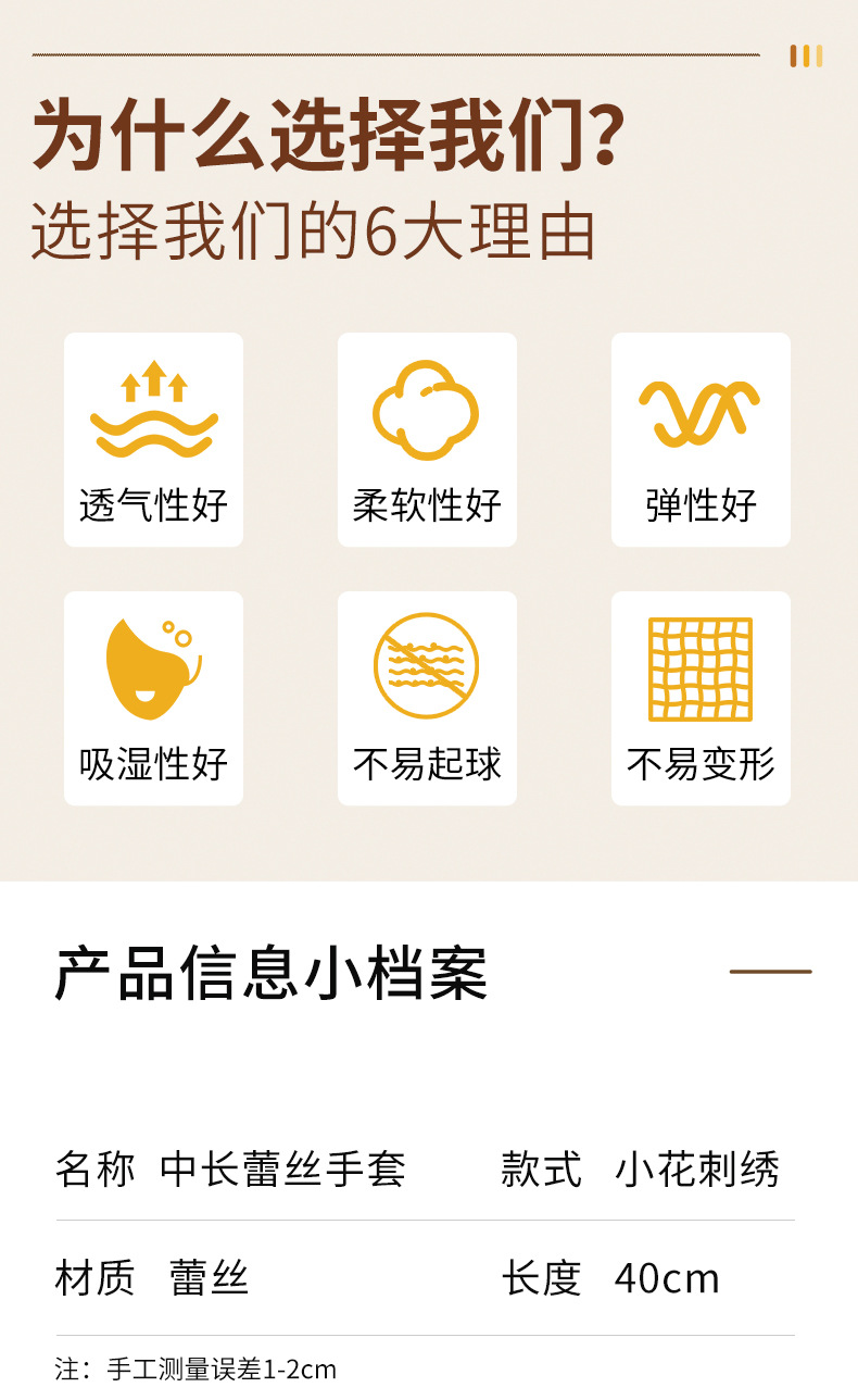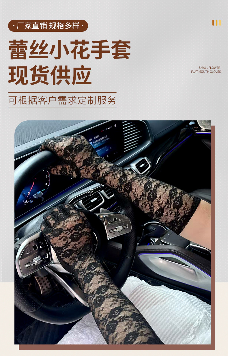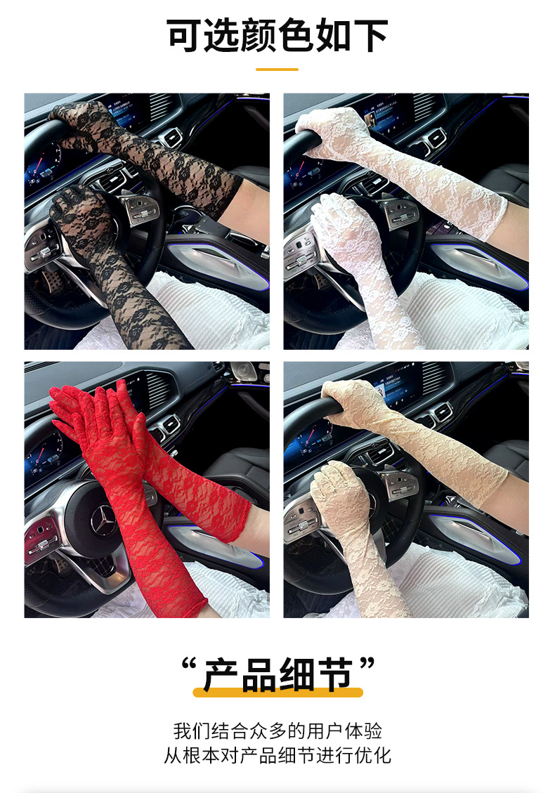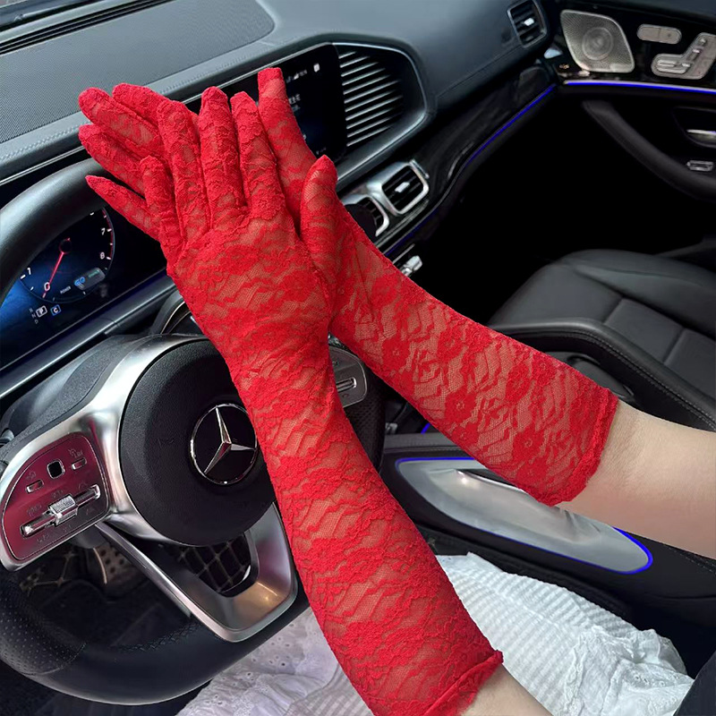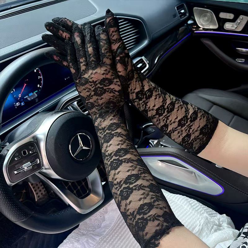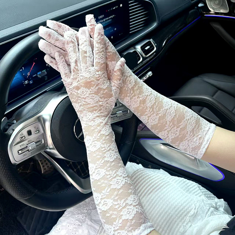 42cm 女士夏季薄款蕾丝手套长款全指 开车骑行防紫外线 防晒网纱