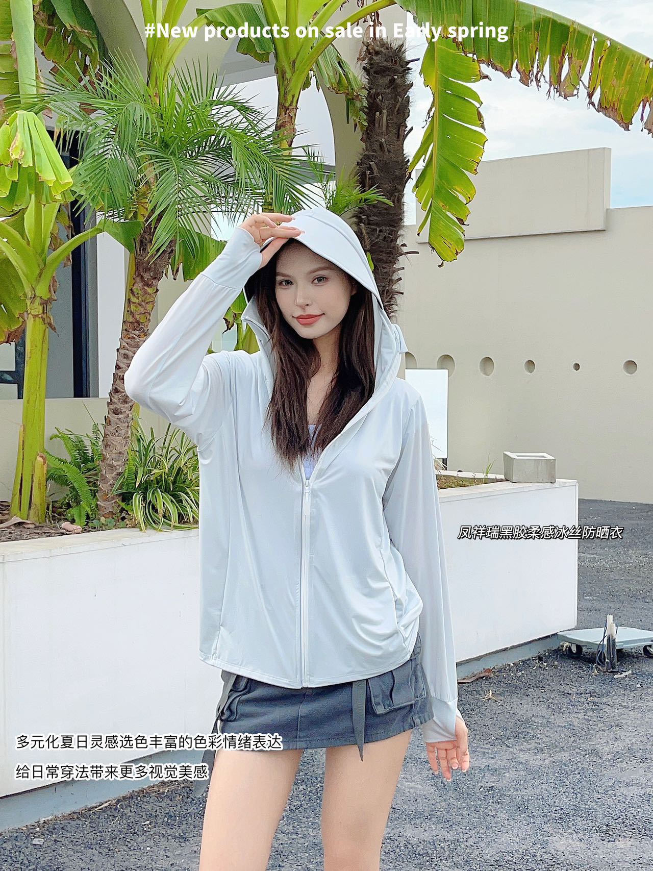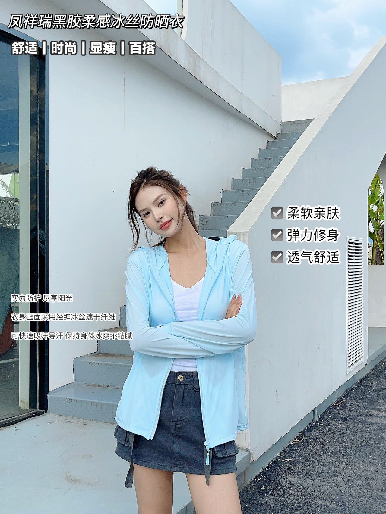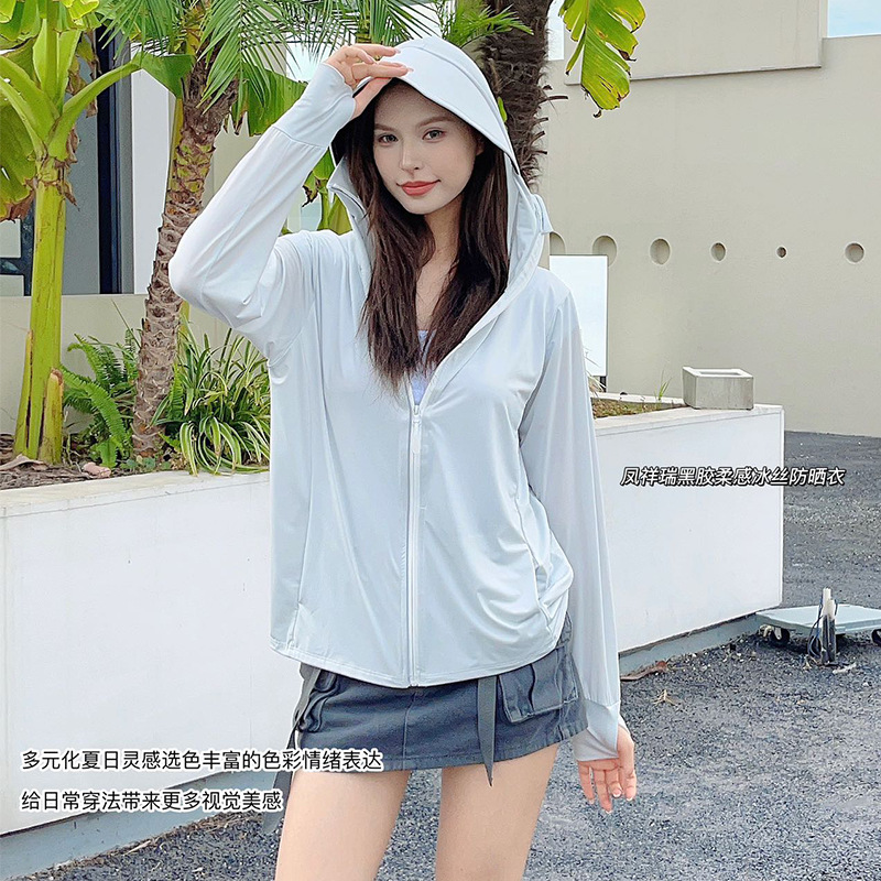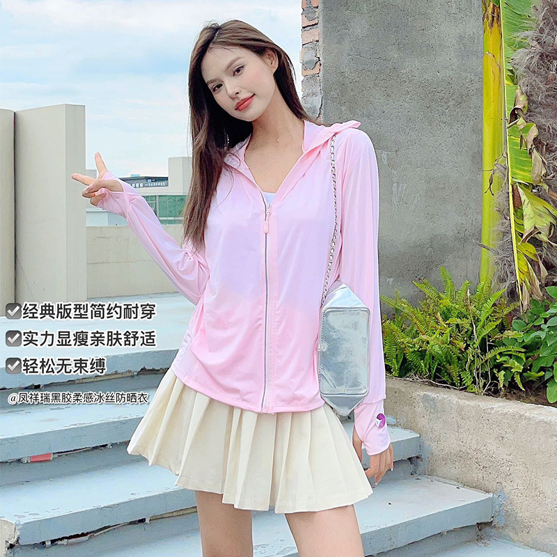 2025黑胶冰丝防晒衣女夏连帽透气防晒服冰感防紫外线外套冰感透气