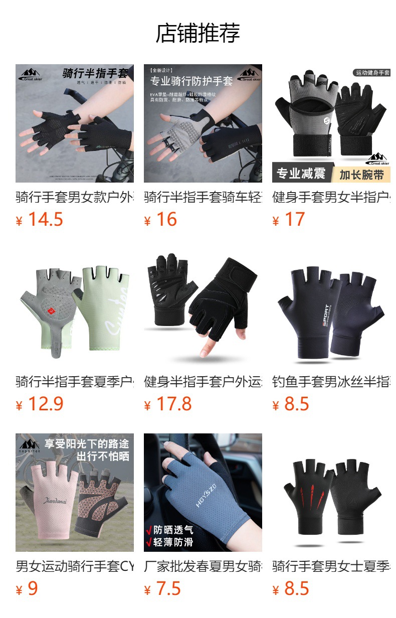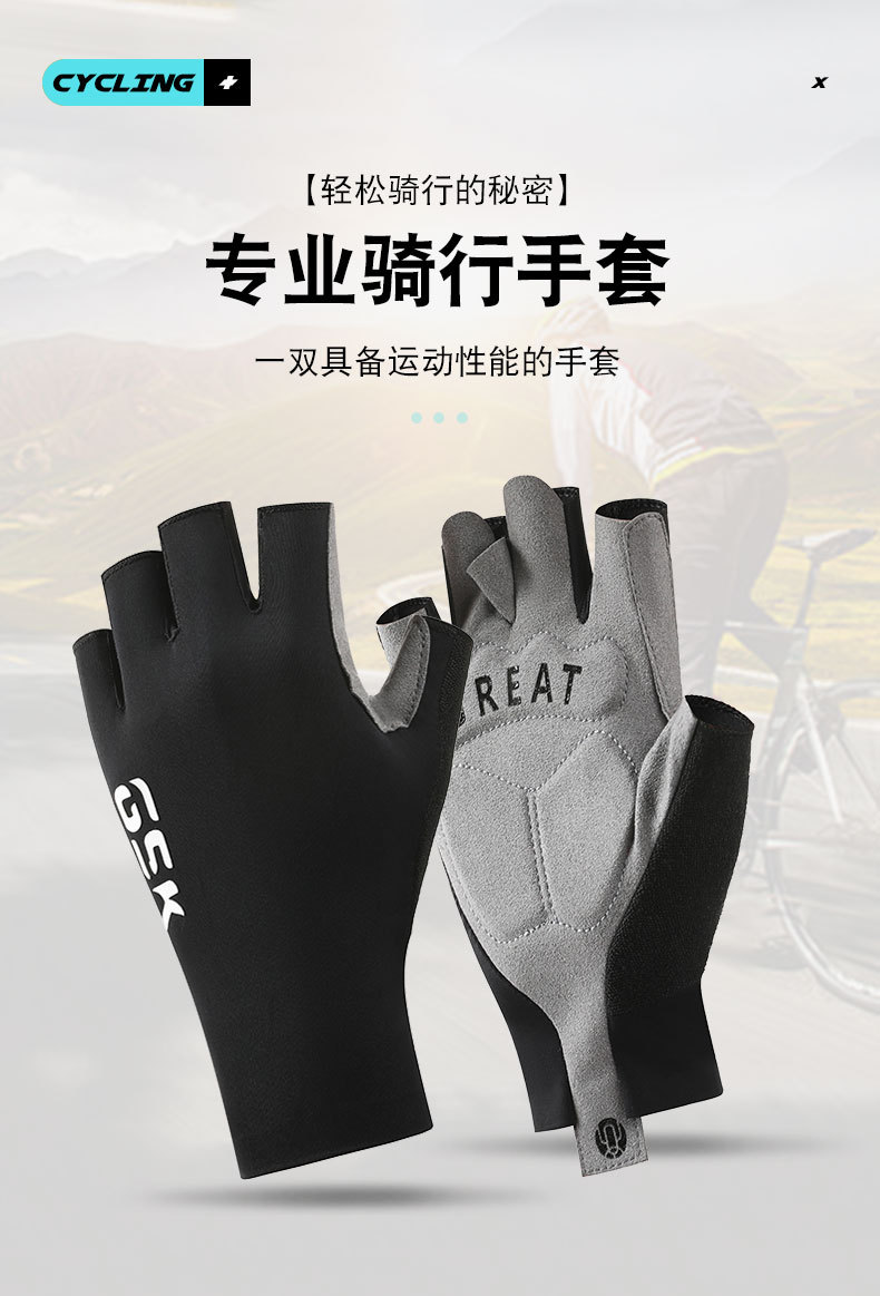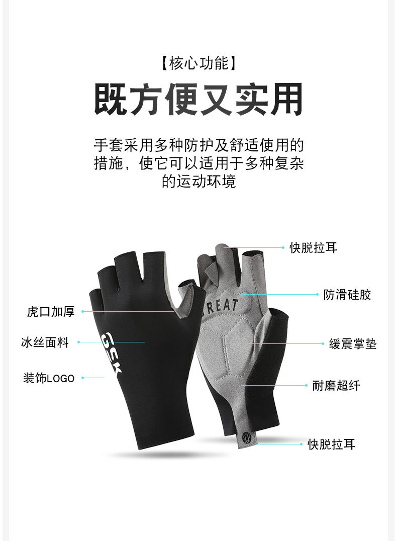 骑行半指手套男女户外健身防滑耐磨减振冰丝薄款运动半指手套批发