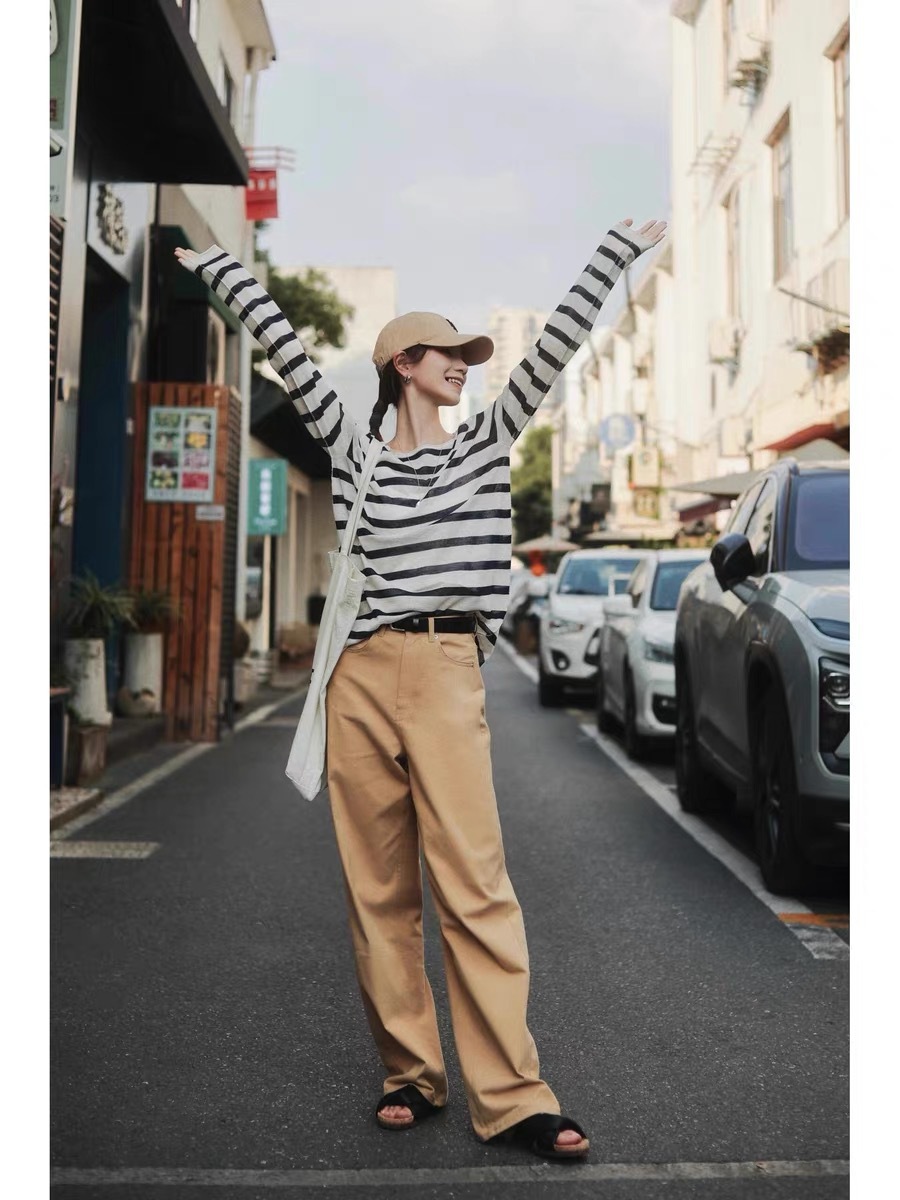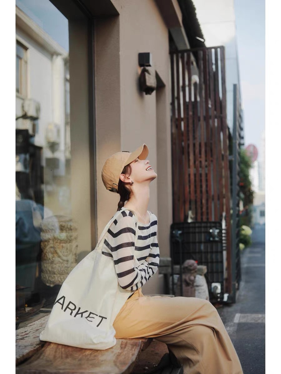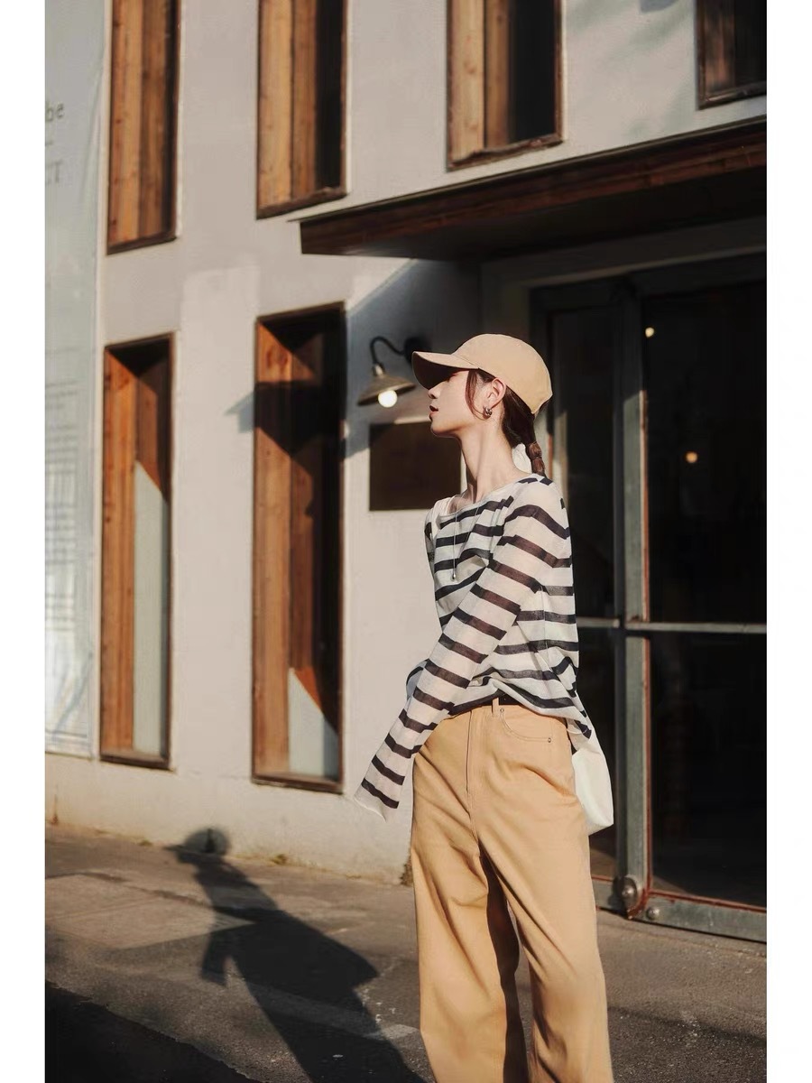100%天丝莱赛尔撞色黑白条纹针织衫女25夏新薄款长袖防晒上衣宽松