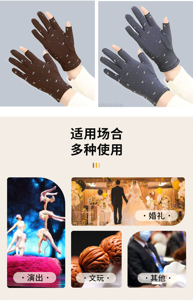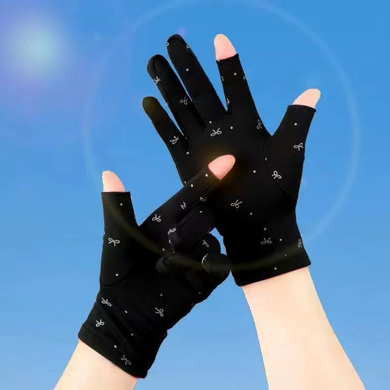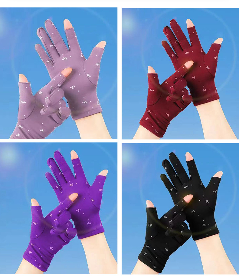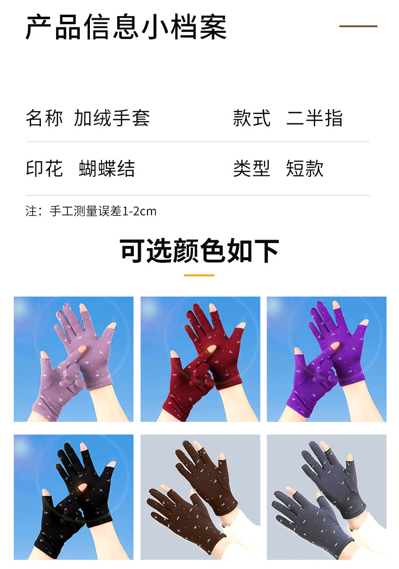 印蝴蝶结二半指牛奶丝拉毛加绒手套电动车舞蹈防晒防晒护礼仪