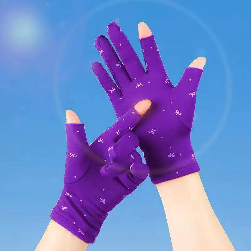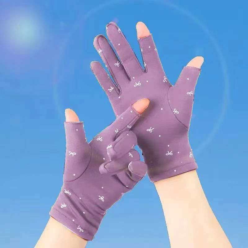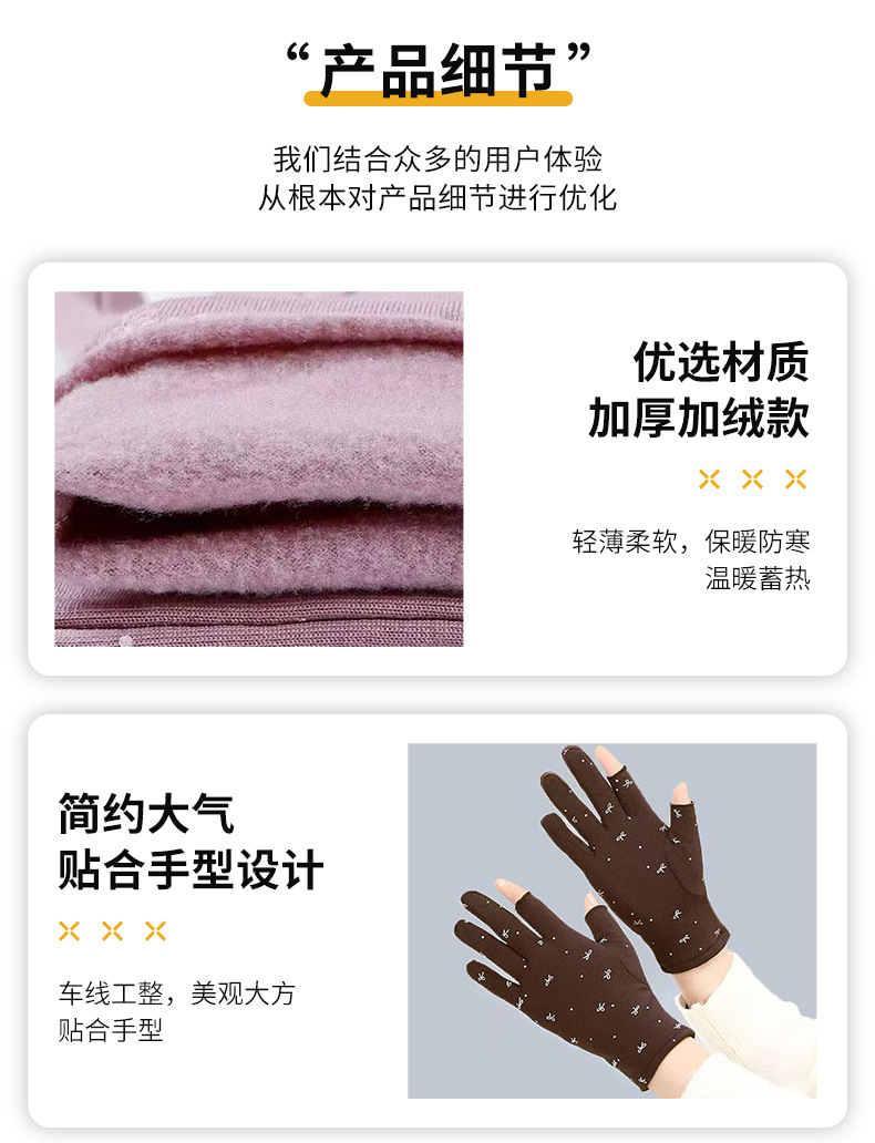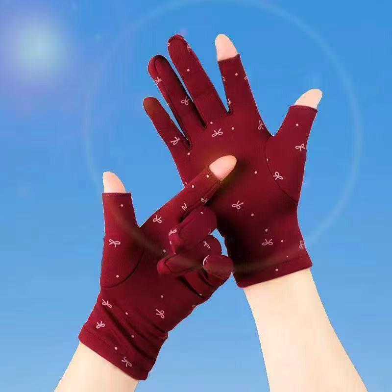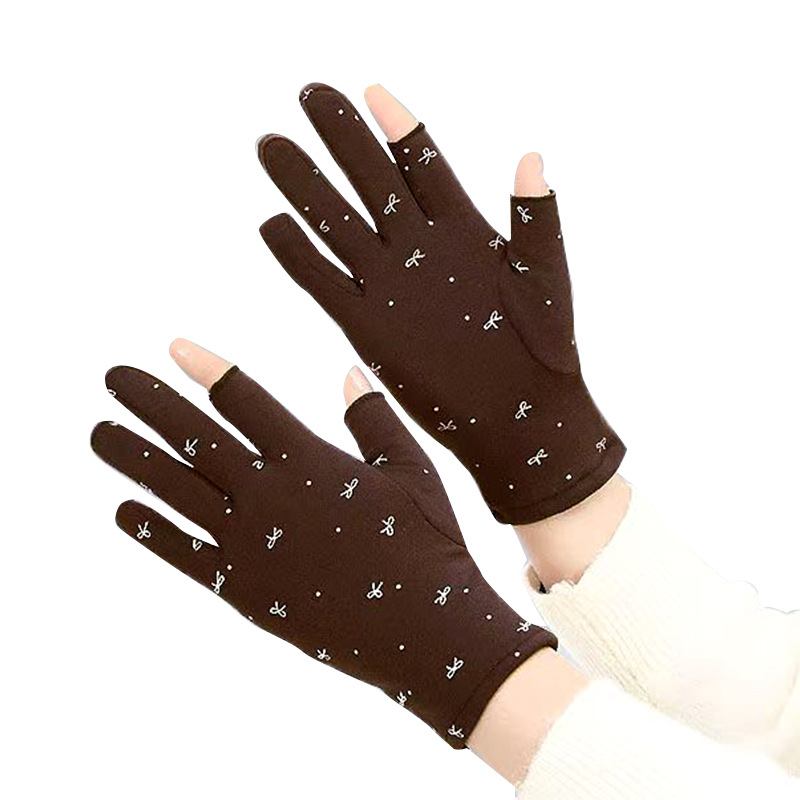 印蝴蝶结二半指牛奶丝拉毛加绒手套电动车舞蹈防晒防晒护礼仪