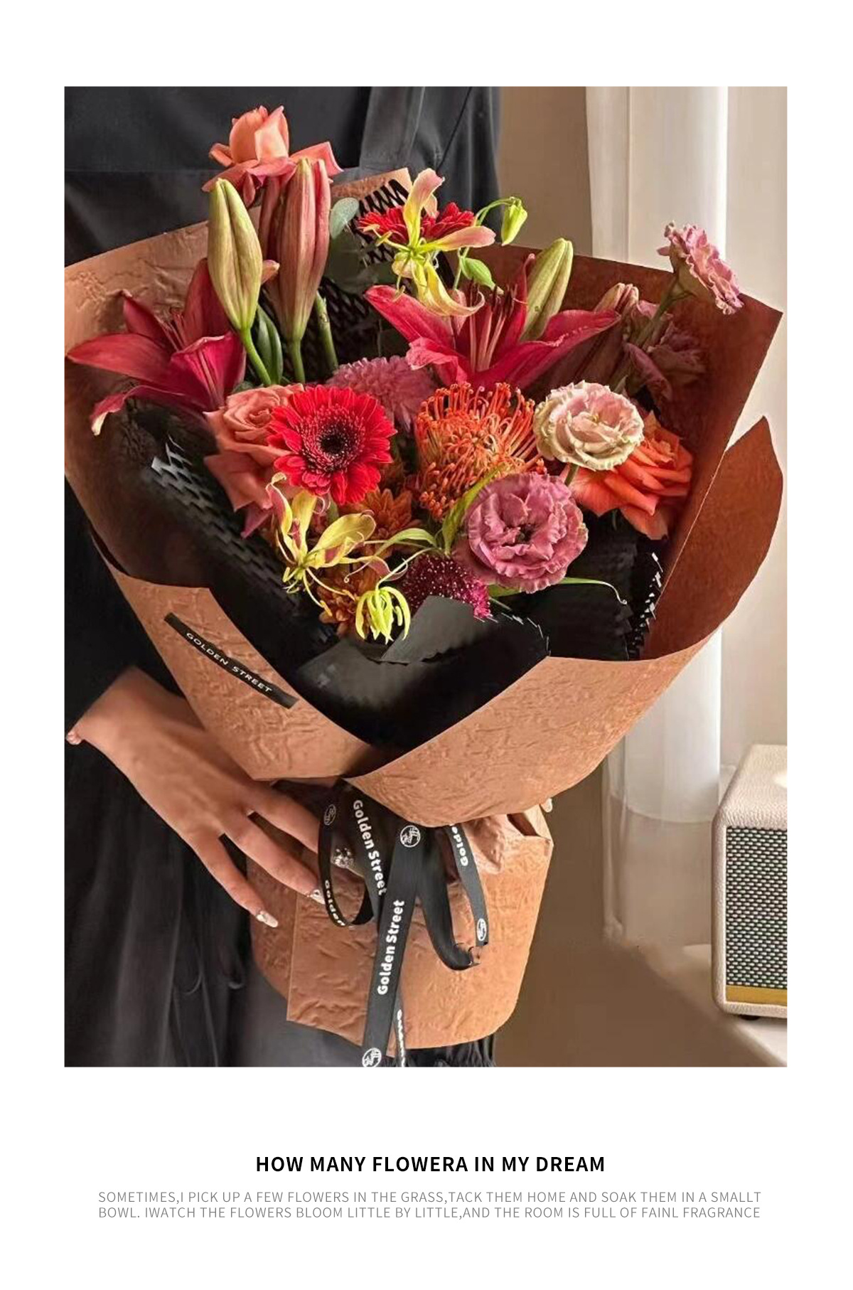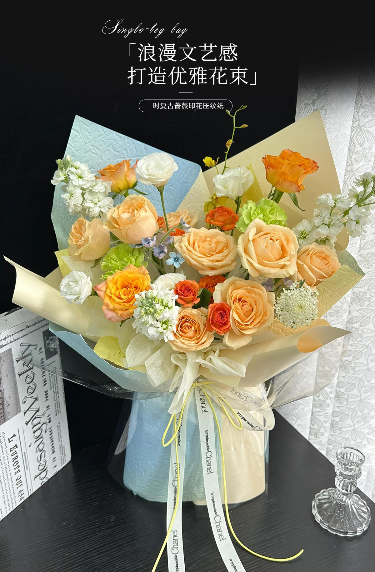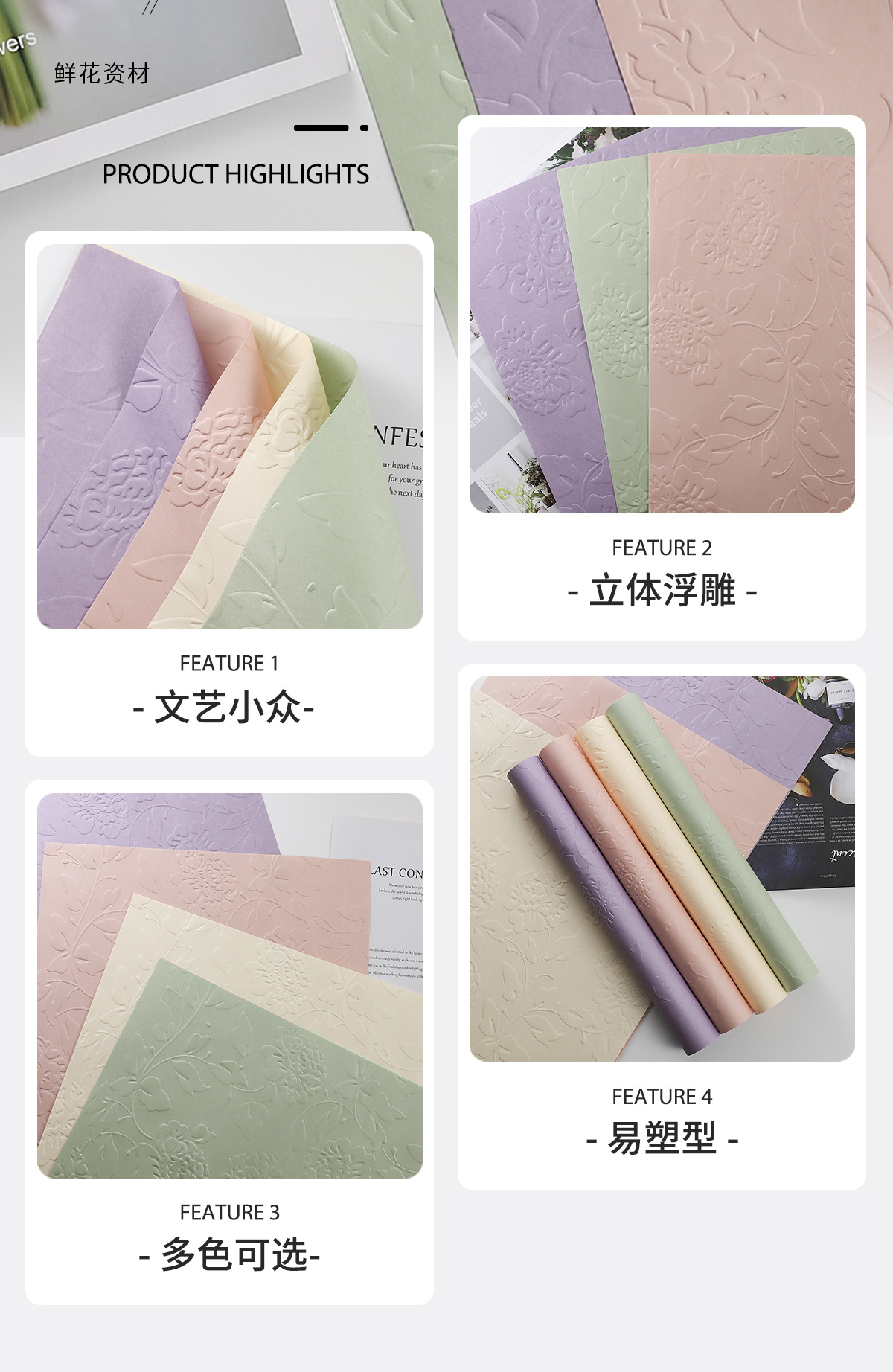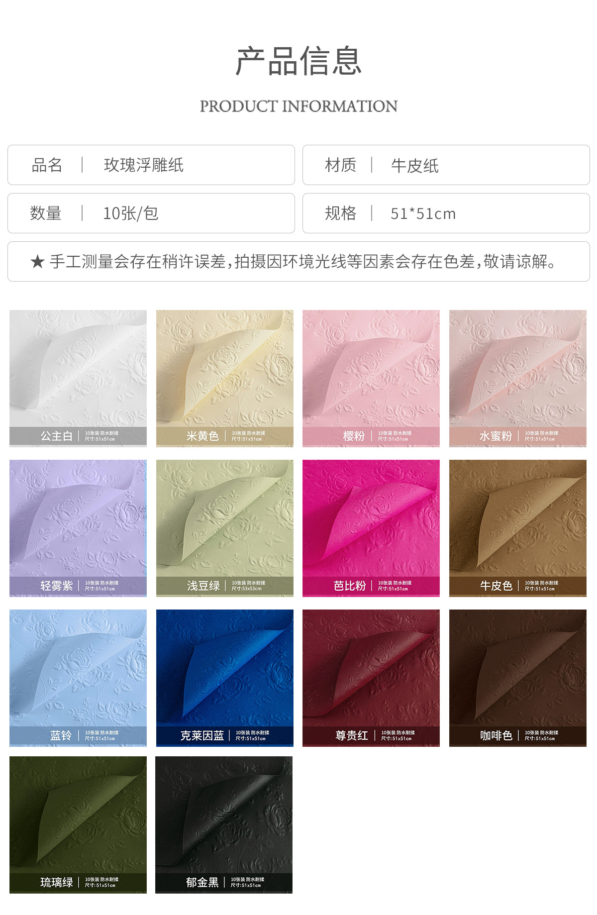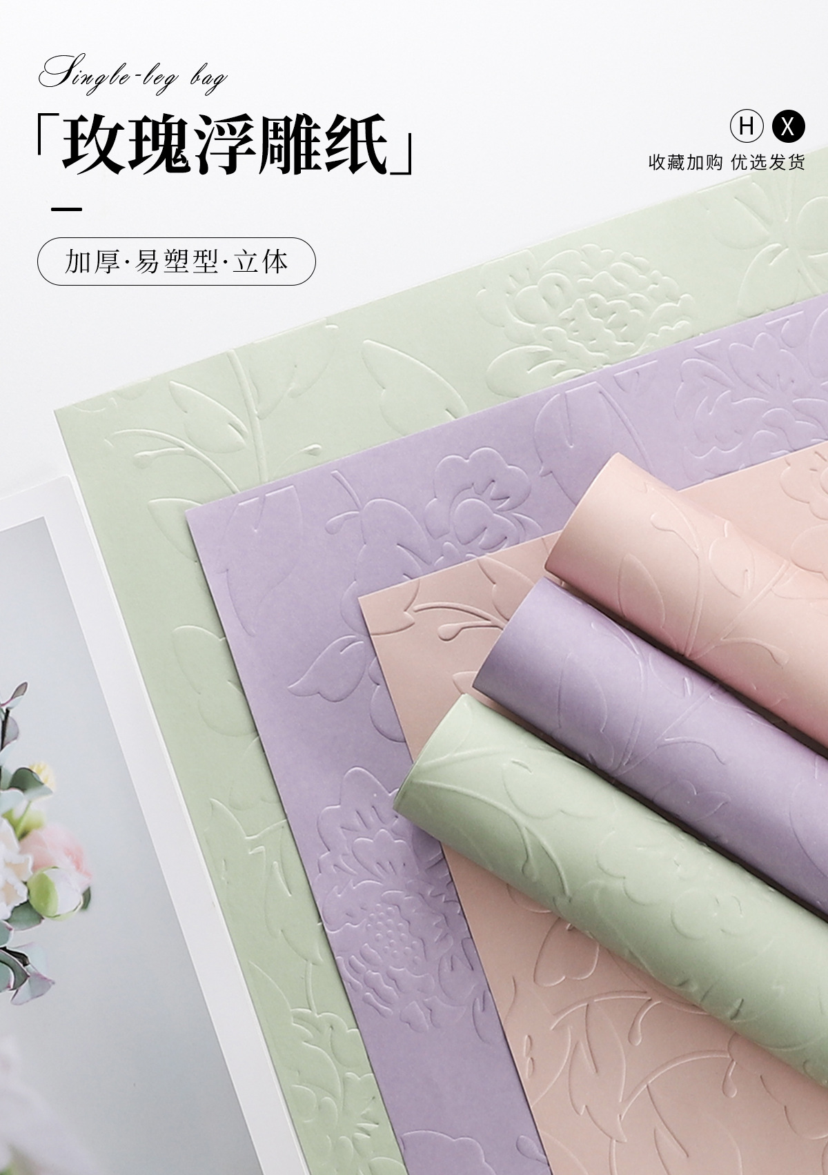 浮雕玫瑰立体压纹纸情人节花束牛皮纸鲜花包装纸花艺包花diy材料