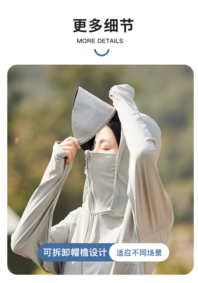 原纱型防晒衣女黑胶帽檐防晒服女可拆卸大帽檐透气皮肤衣防晒衣男