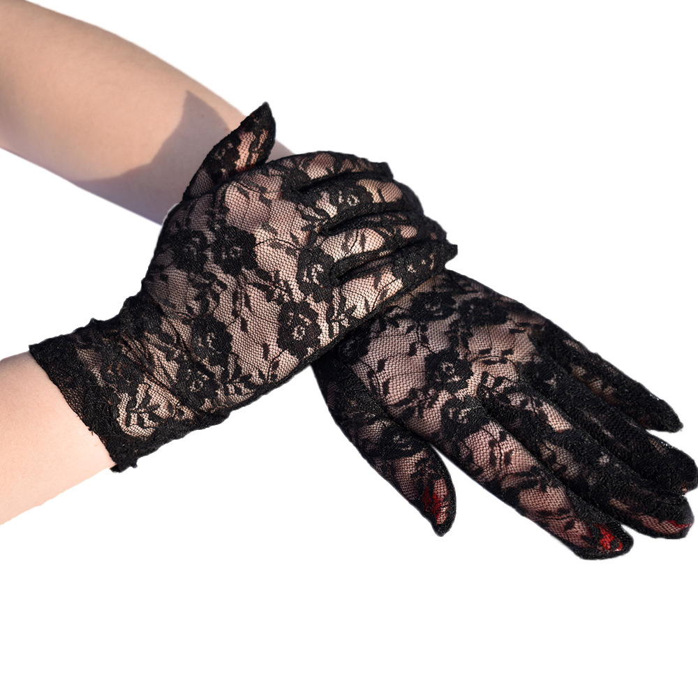 夏季女士开车骑行防晒拍照礼仪手套 短款分指 性感蕾丝薄款短手套