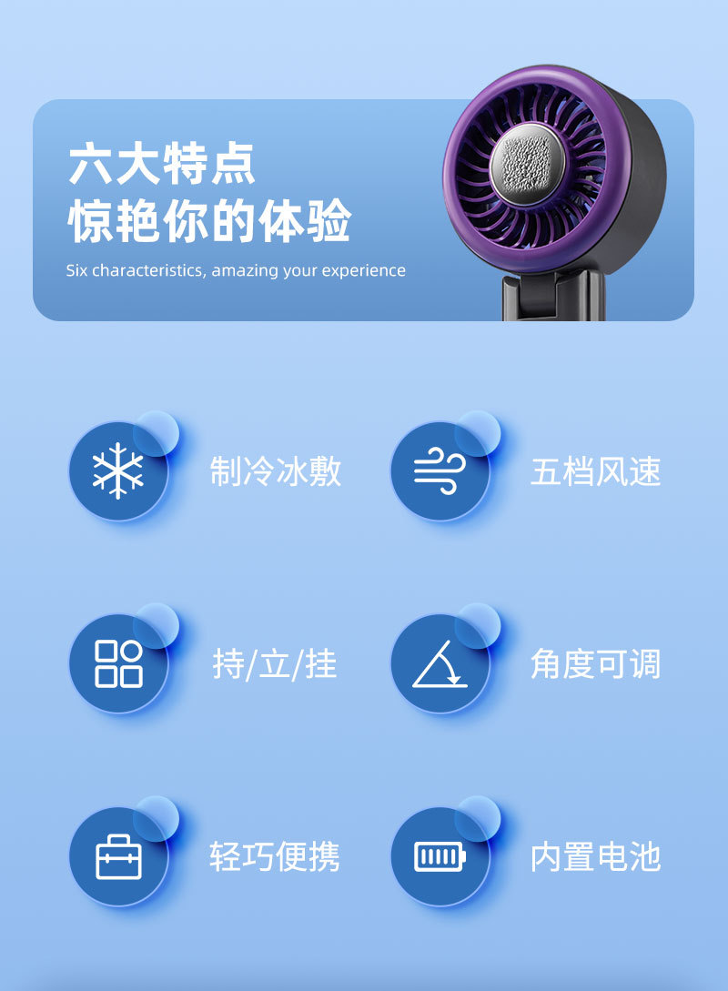 新款户外高速手持风扇冰敷半导体制冷暴力小风扇折叠挂脖usb风扇