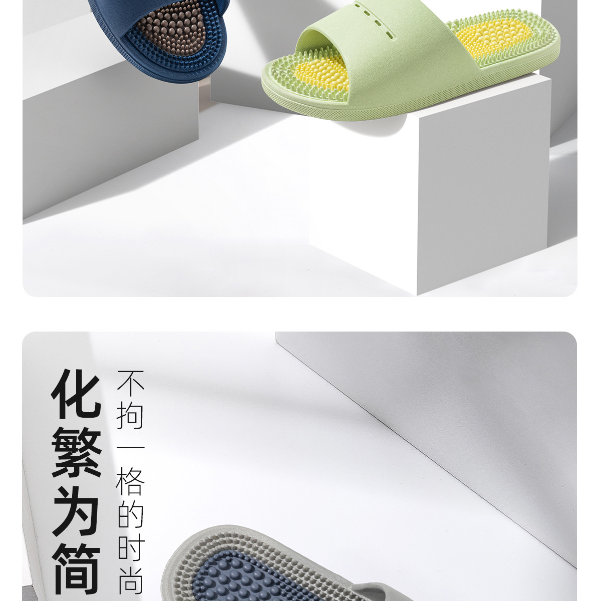 耐磨拖鞋男士家居pvc一字拖洗澡防滑指压板男款夏按摩露趾足底