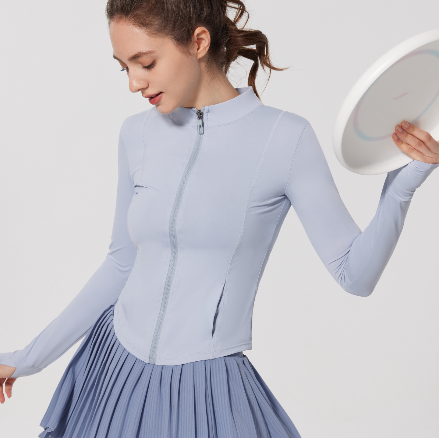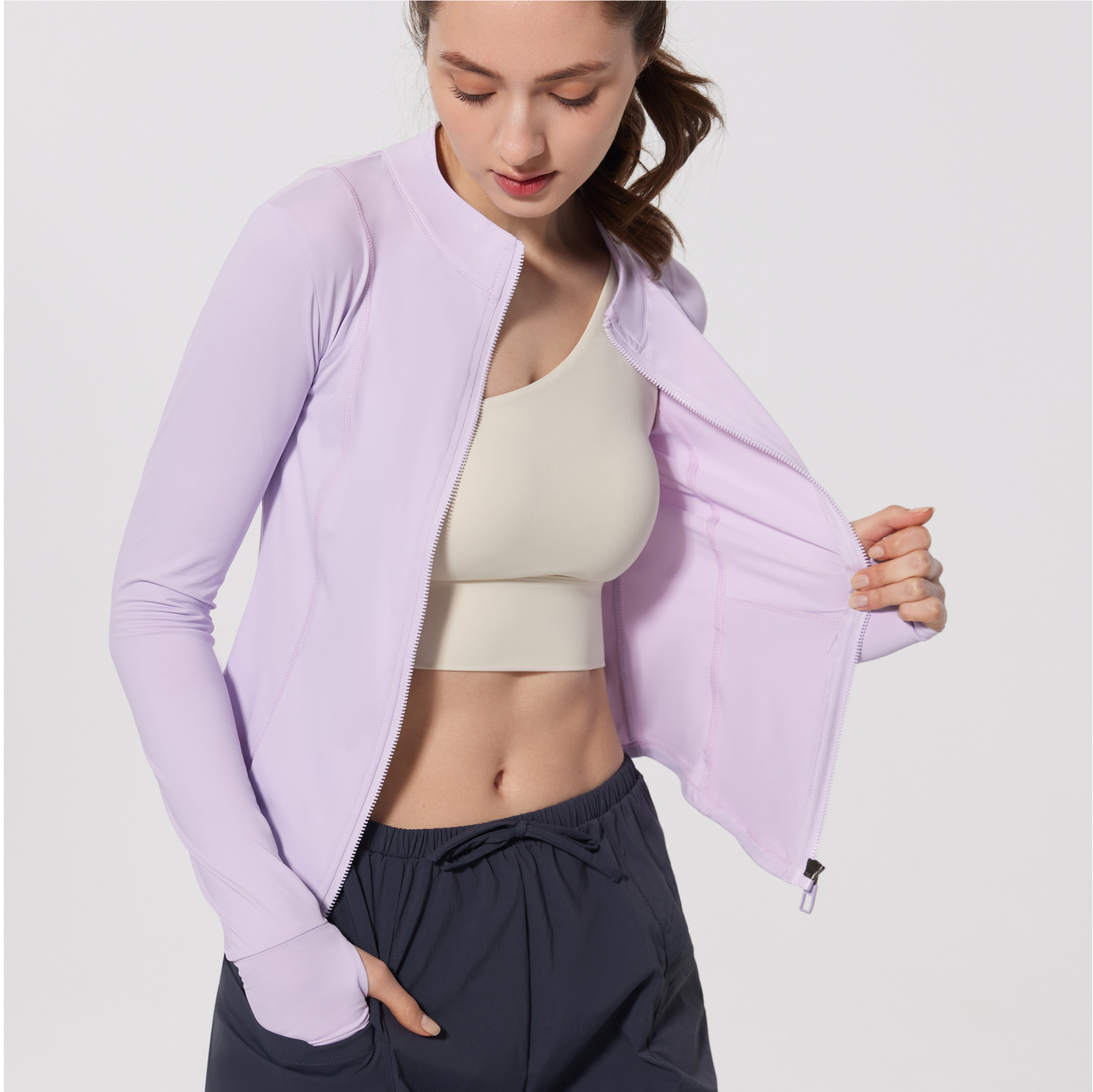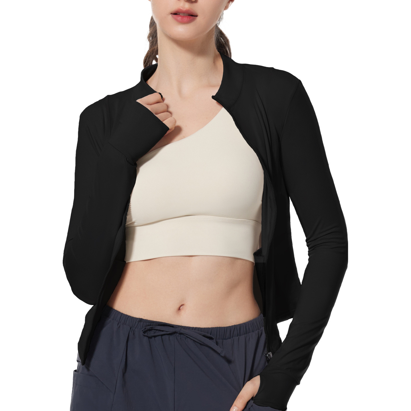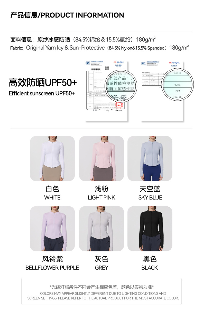 跨境夏薄款原纱防晒衣冰感皮肤衣防紫外线运动外套瑜伽服套指长袖