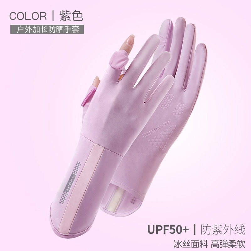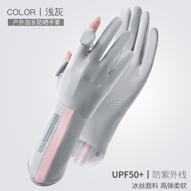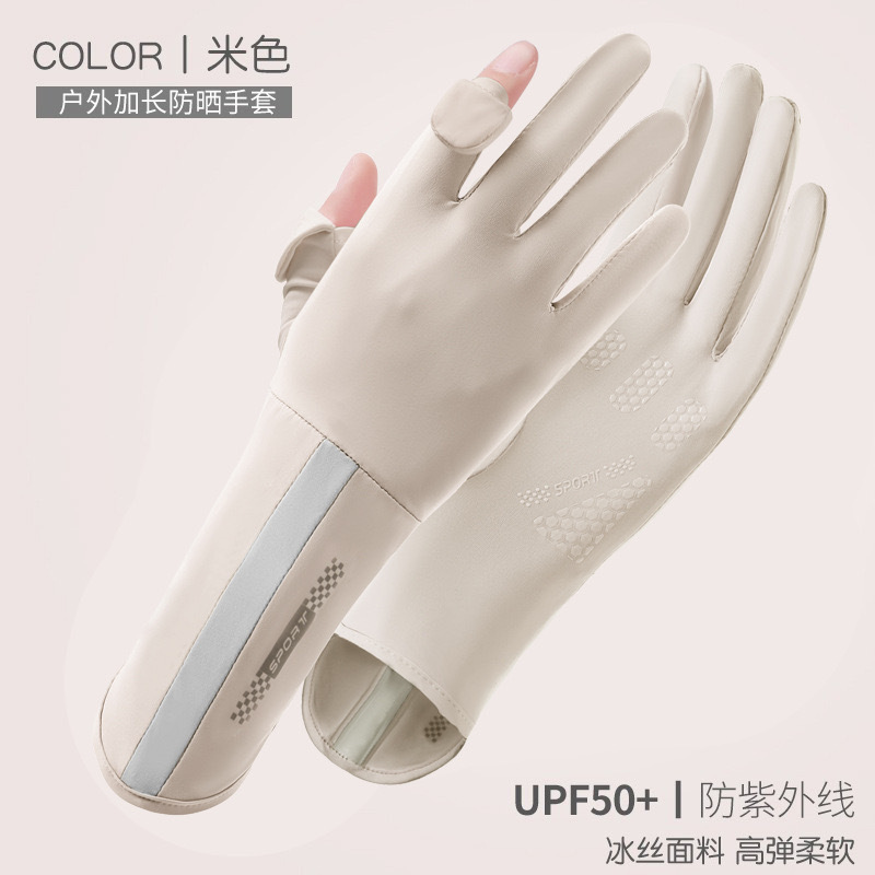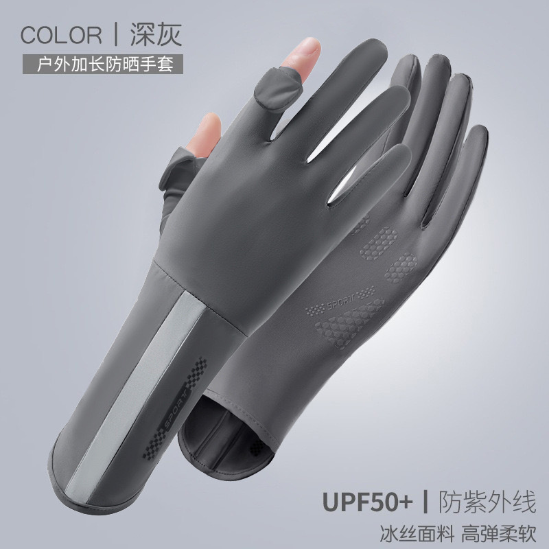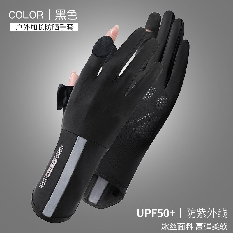 夏季冰丝防晒手套男女士透气轻薄防滑触屏漏二指防紫外线遮阳骑行