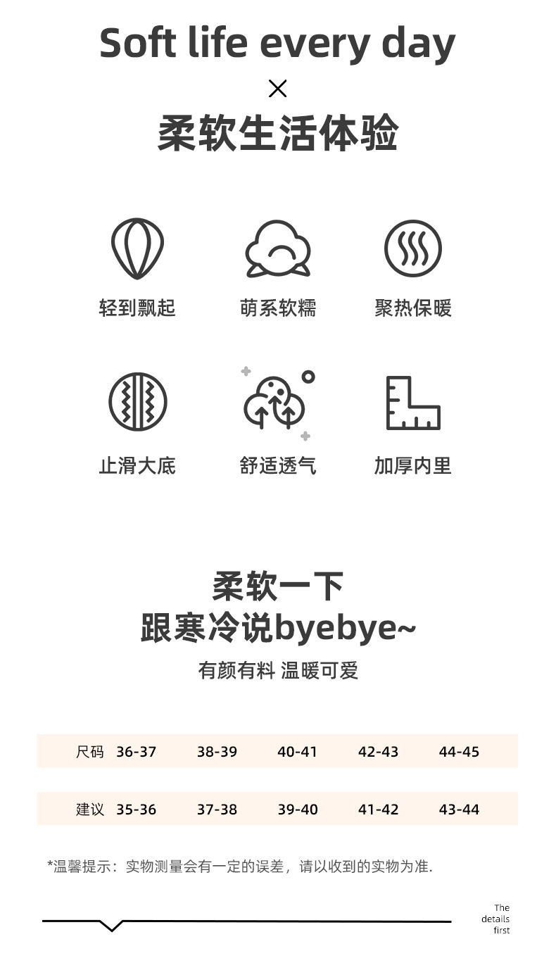 | 38-39 recommends size 37-38 feet.(38-39建议37-38脚) | USD $1.21 | 2261 pair available |