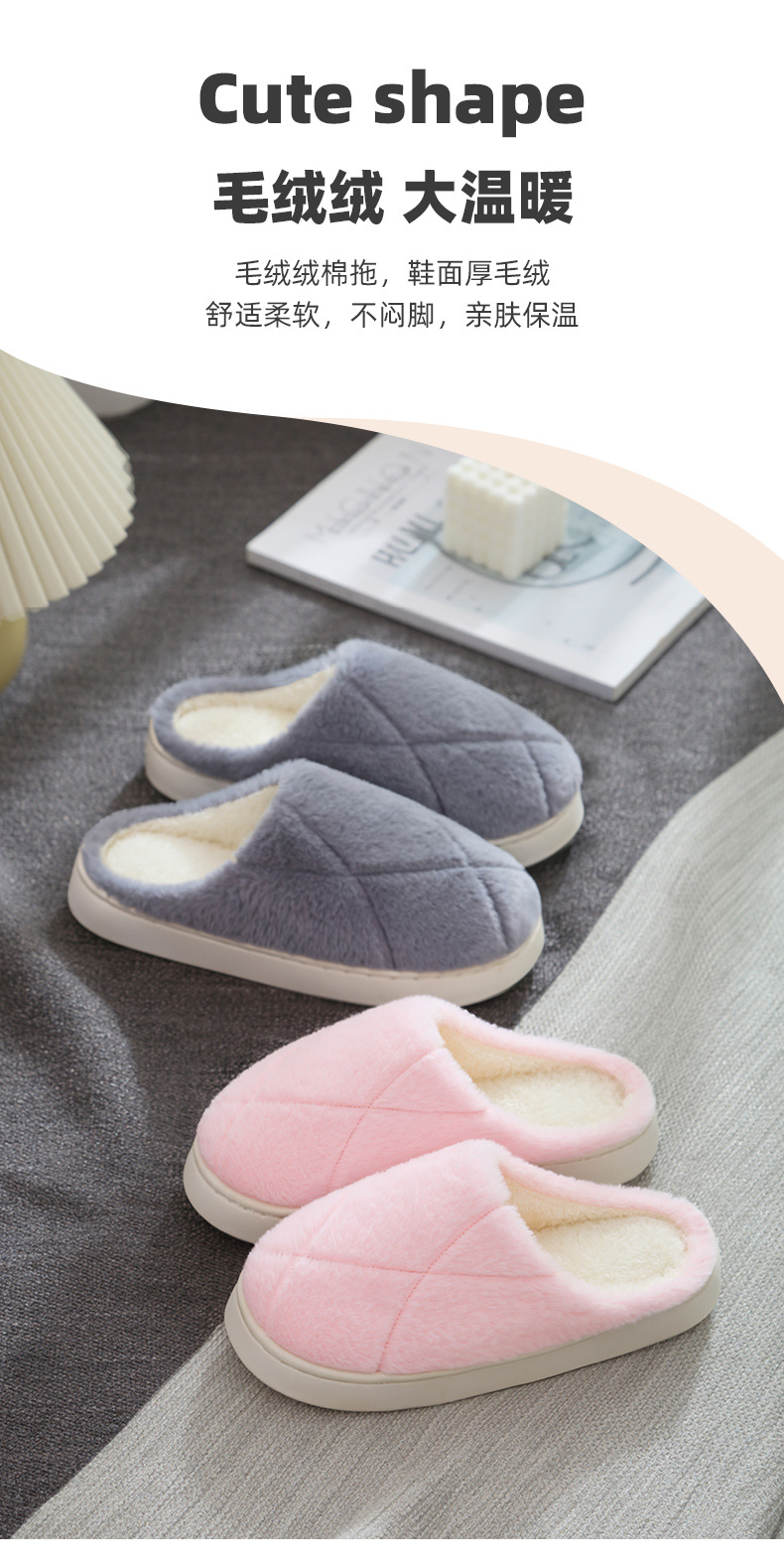 工厂批发现货新款交叉毛绒棉鞋女冬季防滑家居保暖棉拖男超市摆摊