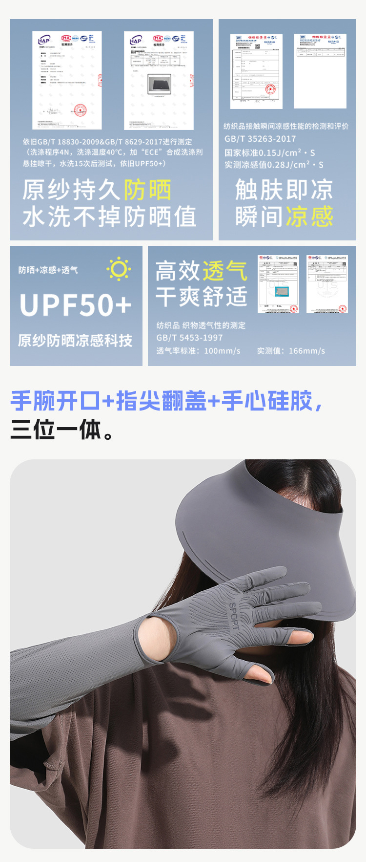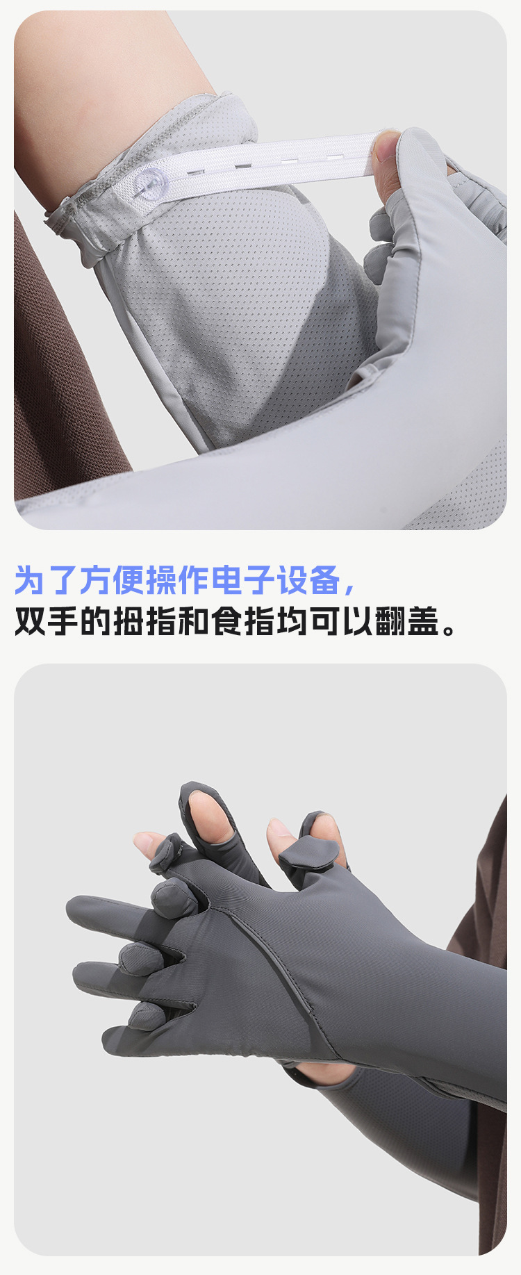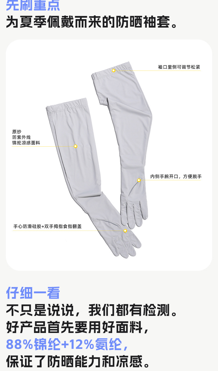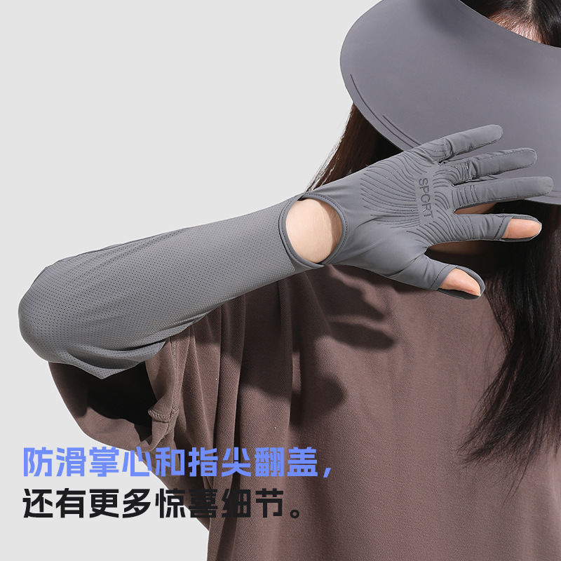 防晒手套女款加长款夏季锦纶冰丝防紫外线凉感防滑翻盖可触屏透气