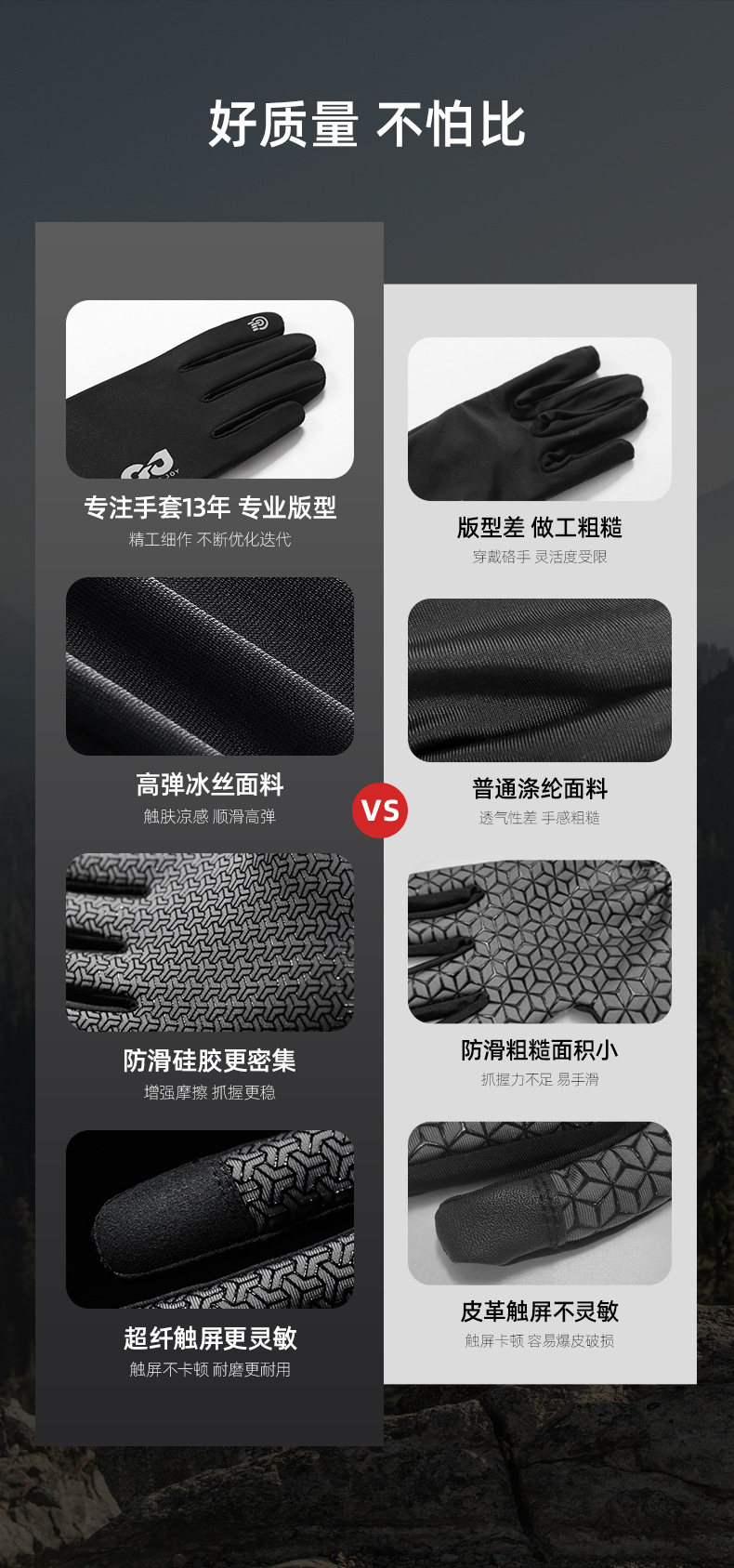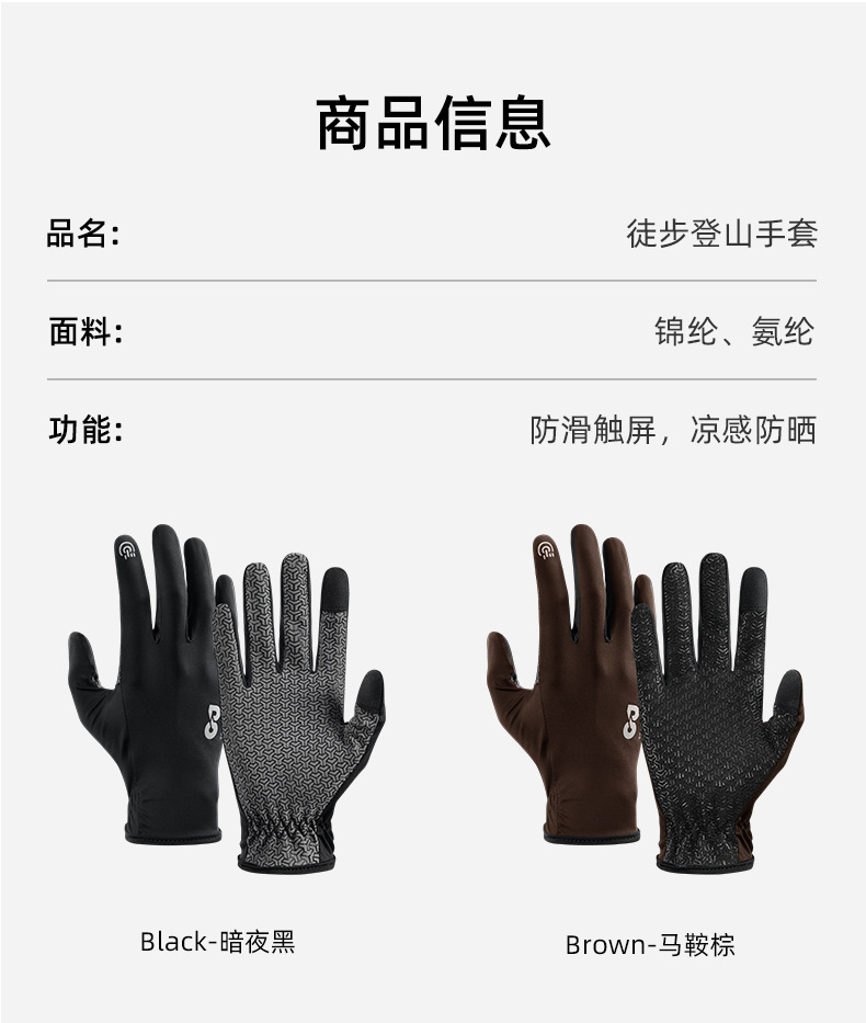 夏季户外运动徒步登山手套全掌防滑耐磨触屏冰丝透气防晒骑行手套