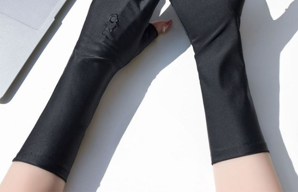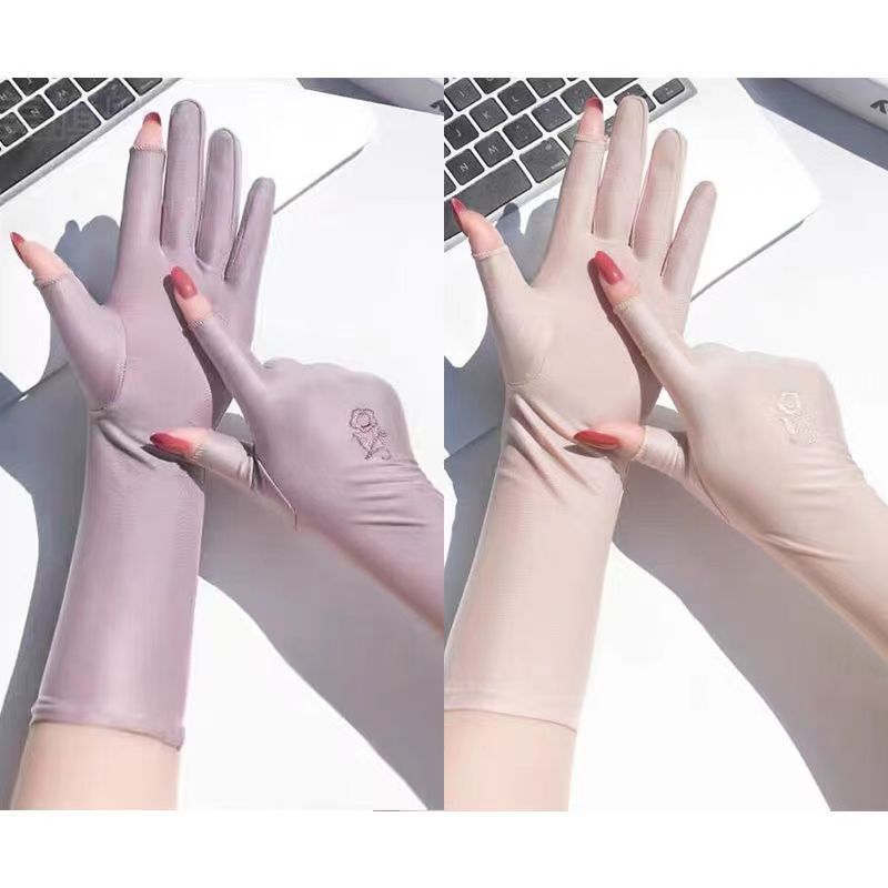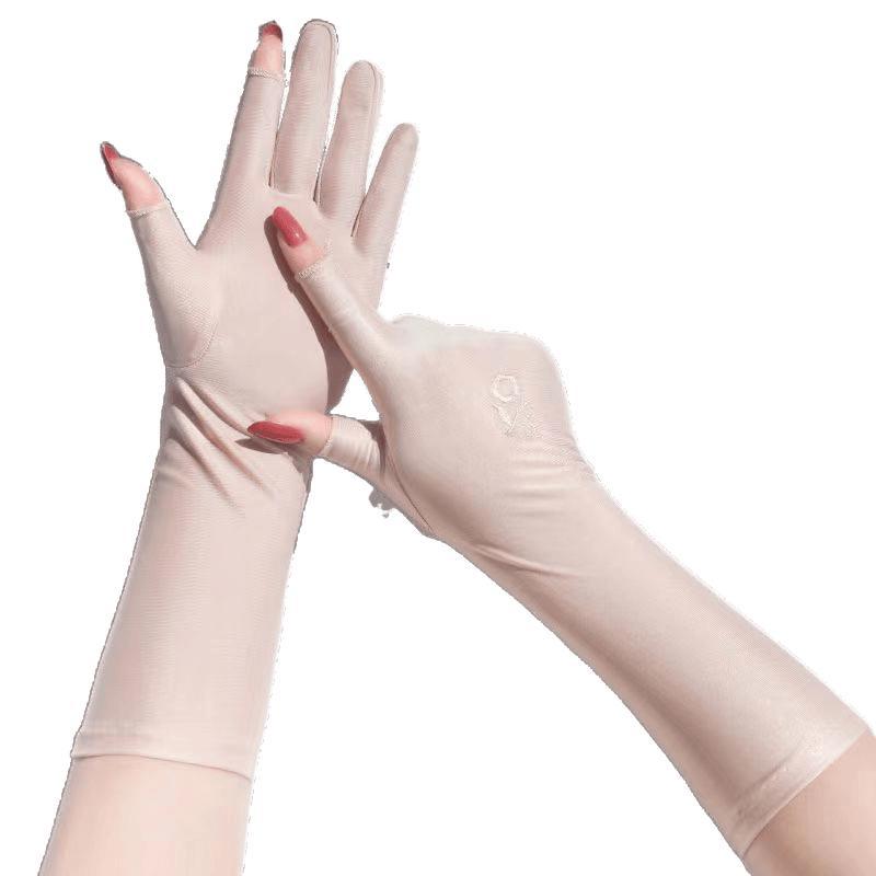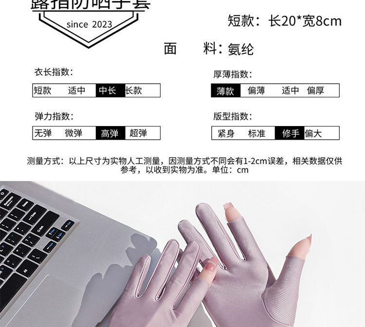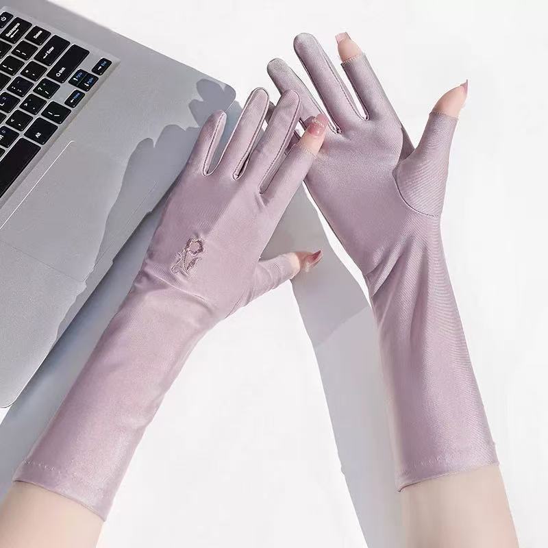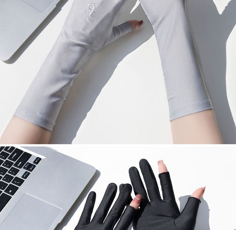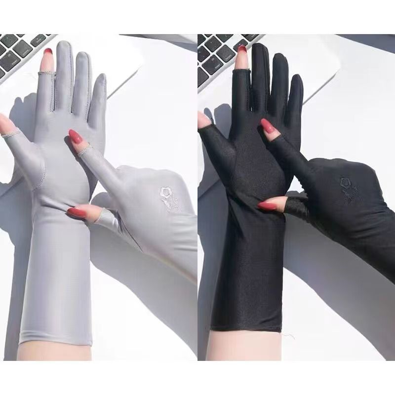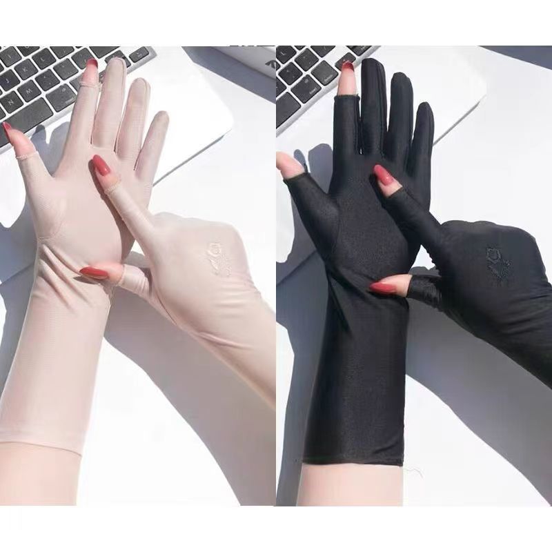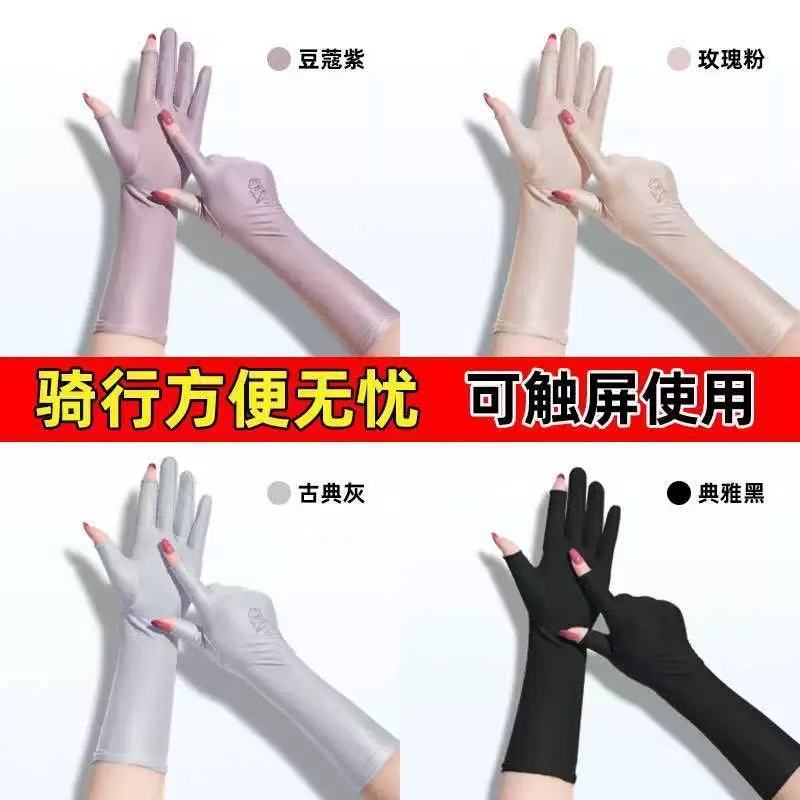 防晒手套女防紫外线开车漏二指中长款夏季冰丝薄款露手指头春秋款