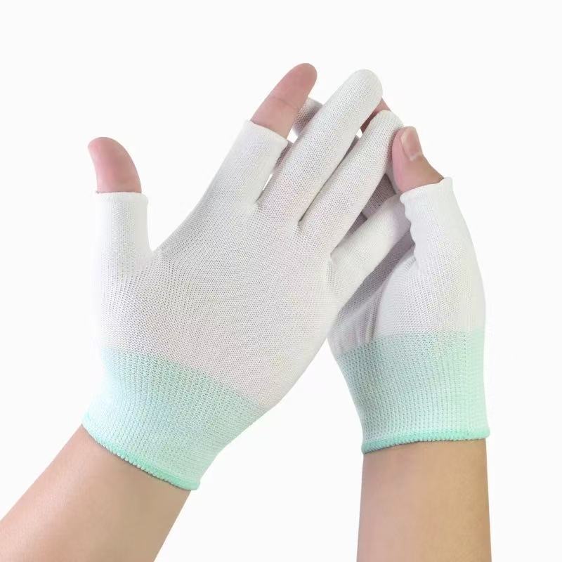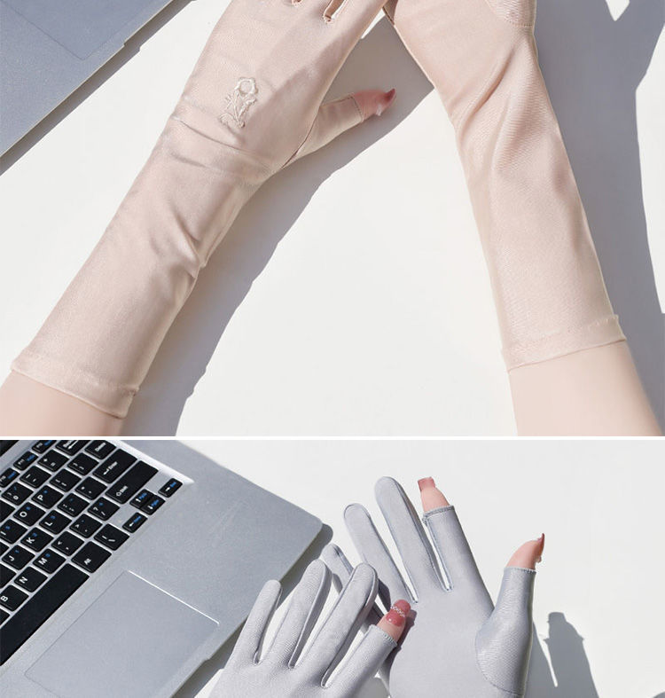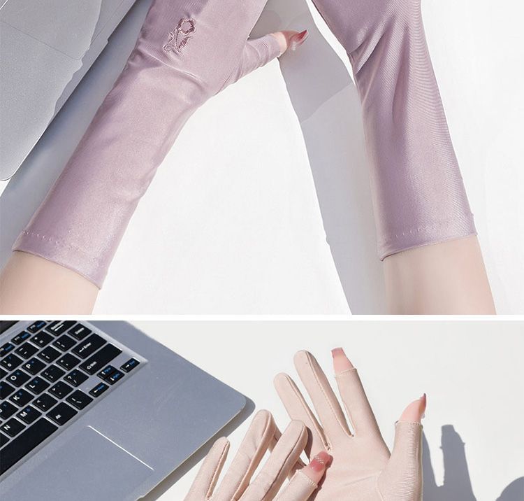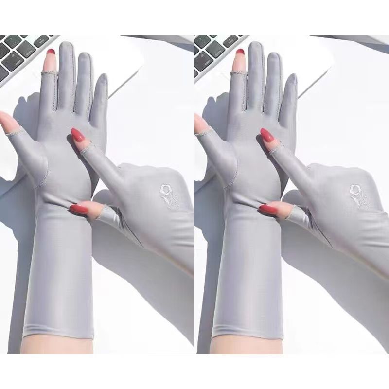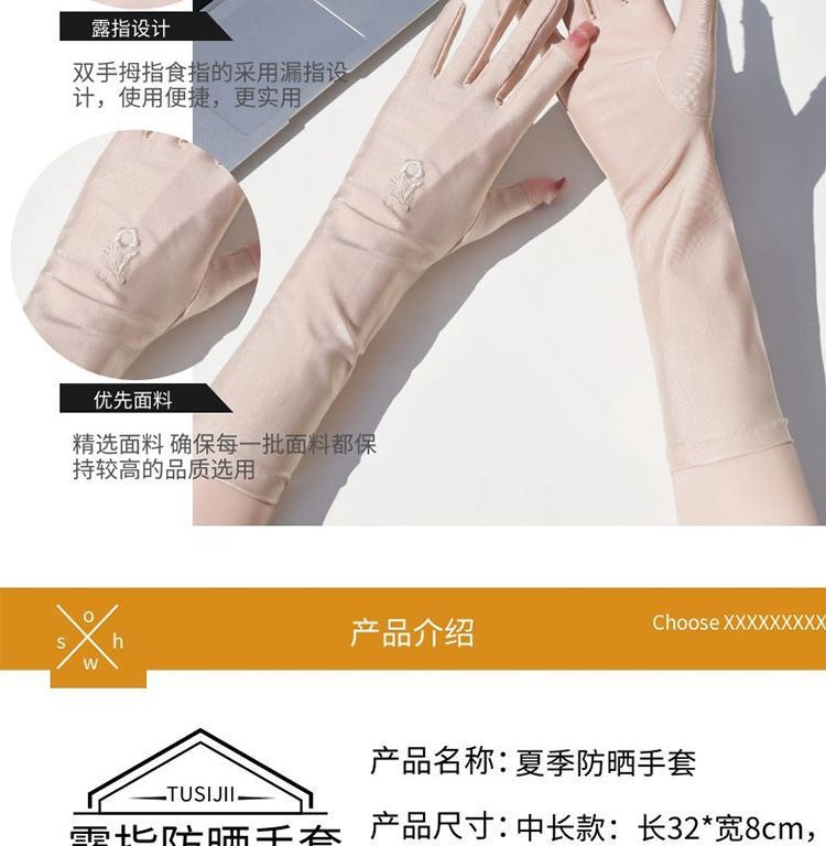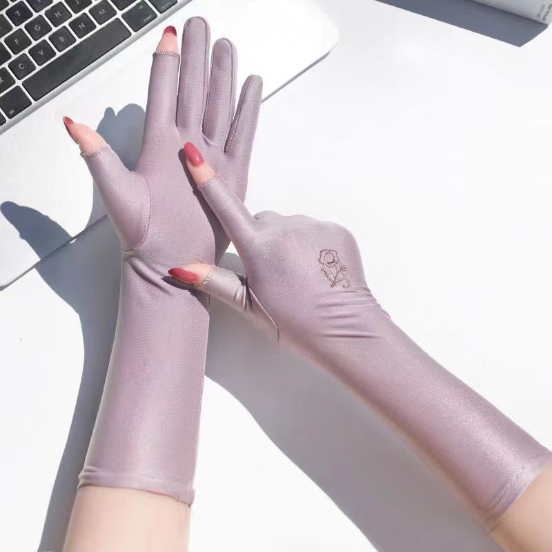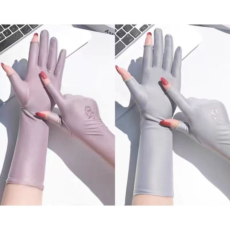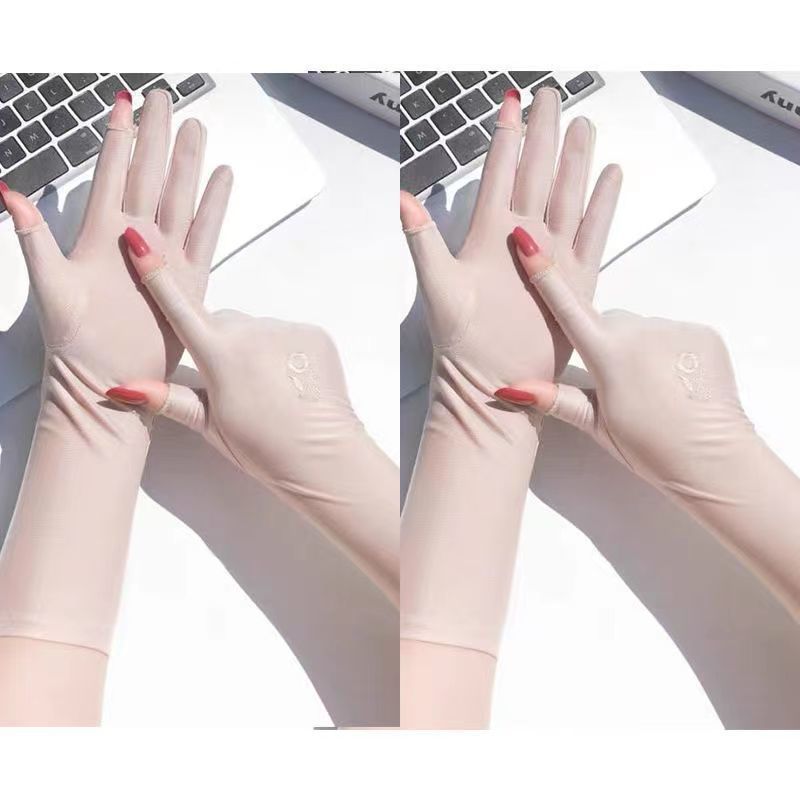 防晒手套女防紫外线开车漏二指中长款夏季冰丝薄款露手指头春秋款