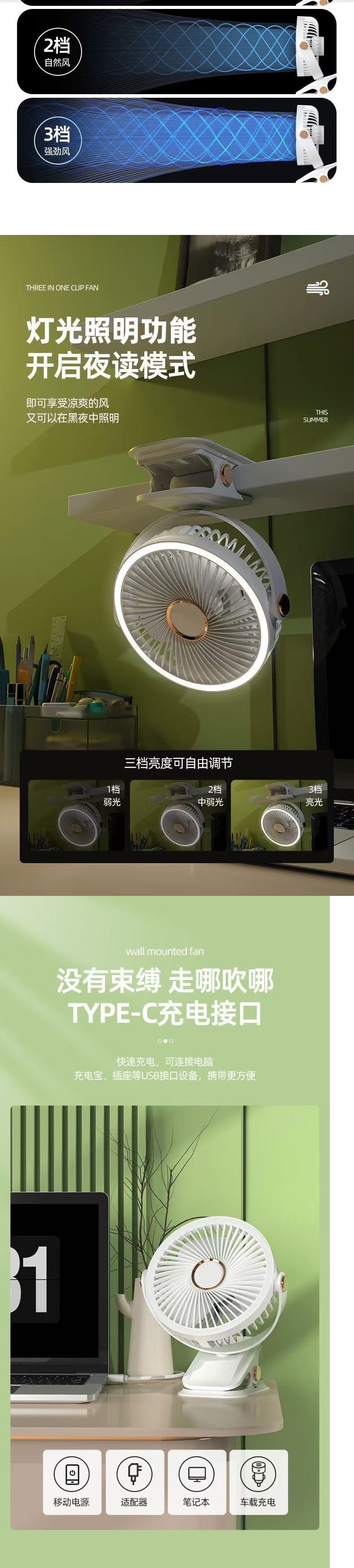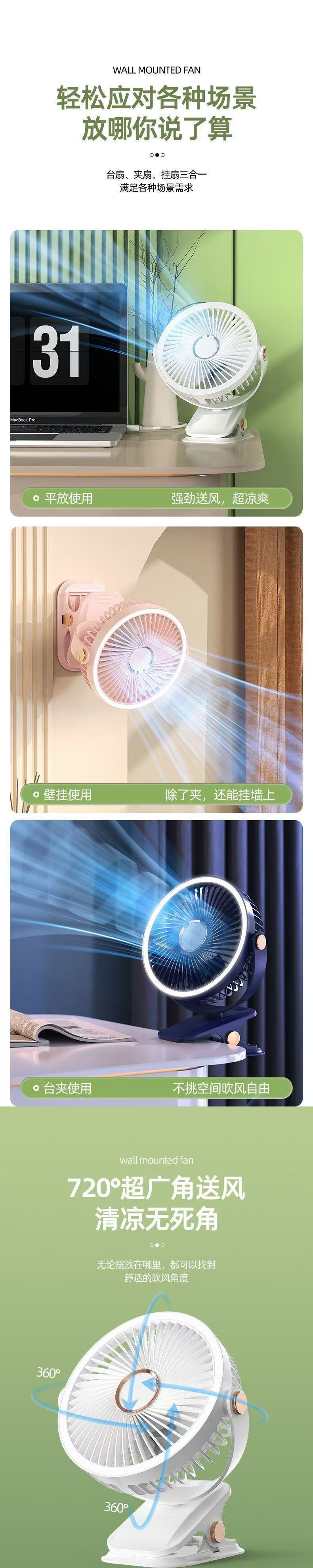 新款风扇超静音USB充电风扇家用宿舍台式卧室小型电风扇超长续航