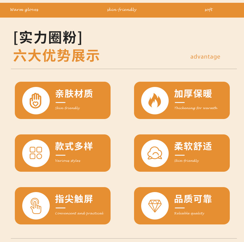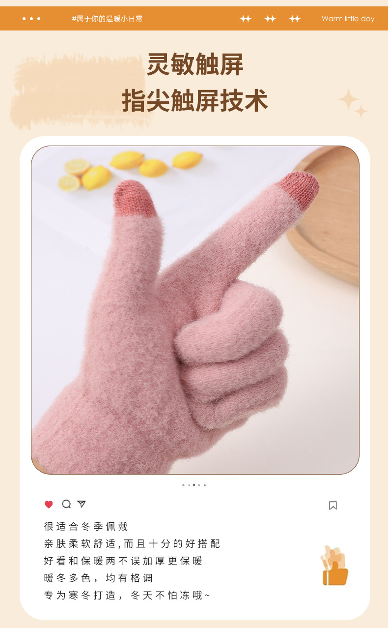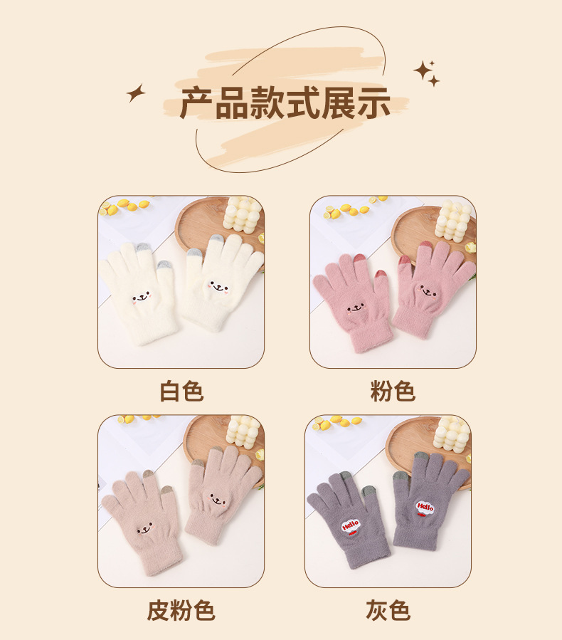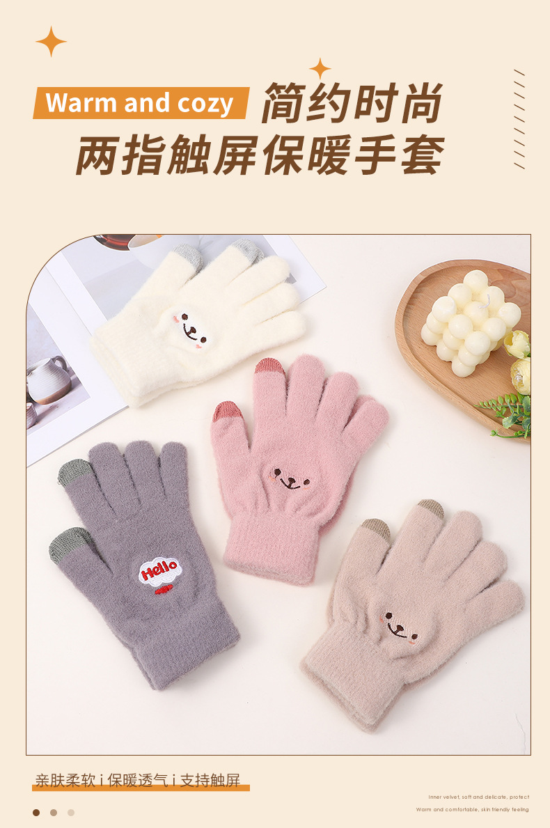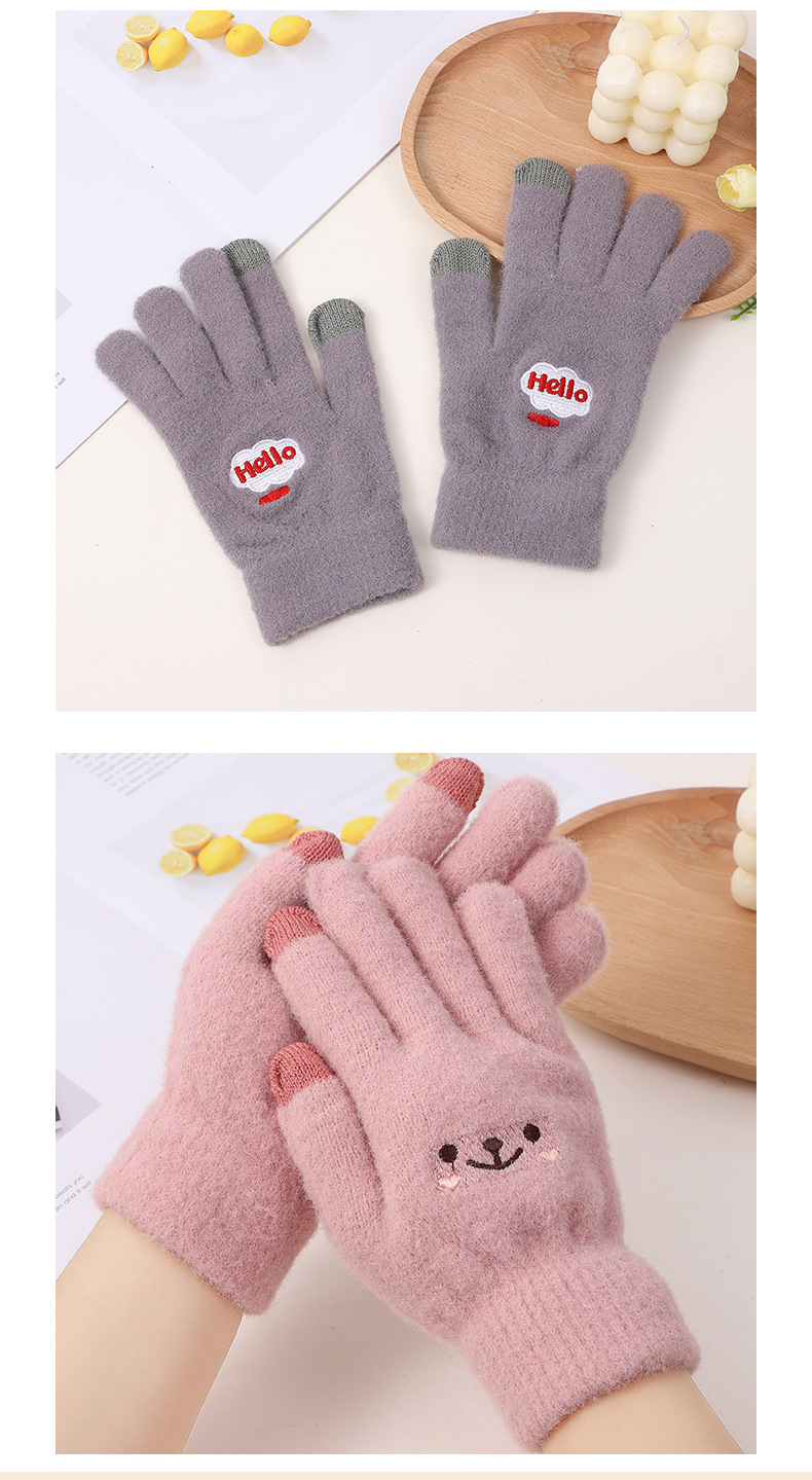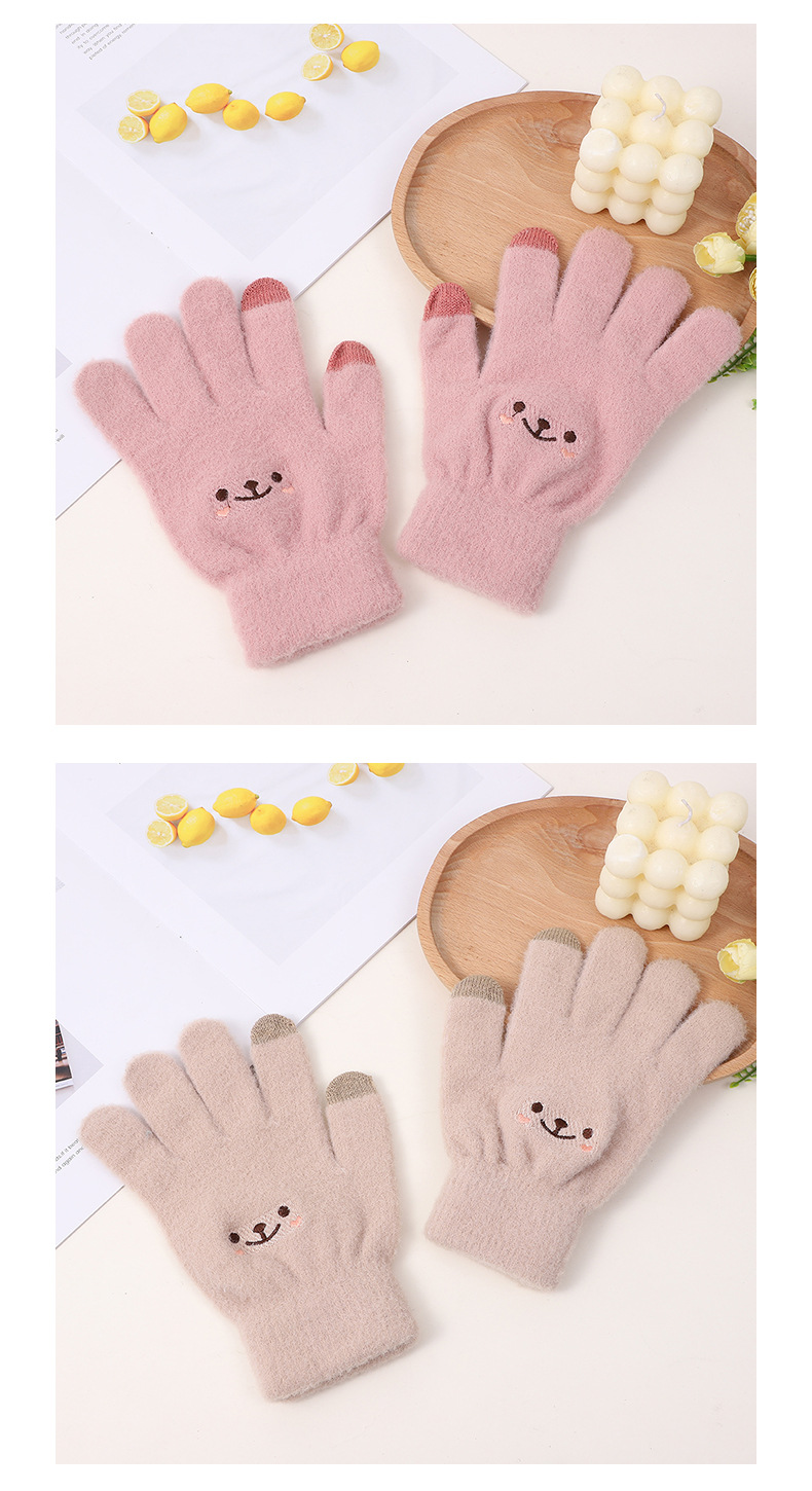 秋冬季可爱笑脸熊保暖手套女卡通触屏骑行手套百搭刺绣男针织手套