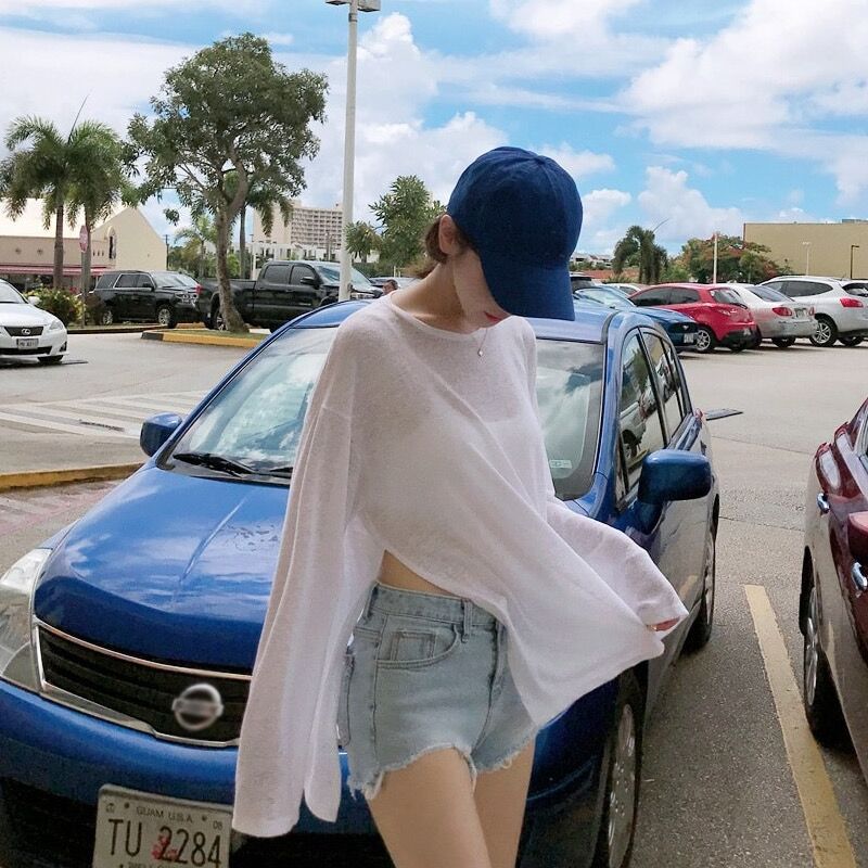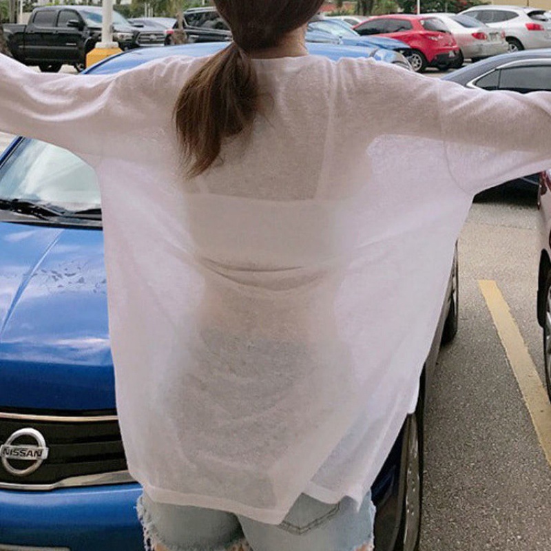 夏季ins小众设计感上衣时尚开叉宽松薄款长袖T恤女防晒罩衫外搭潮