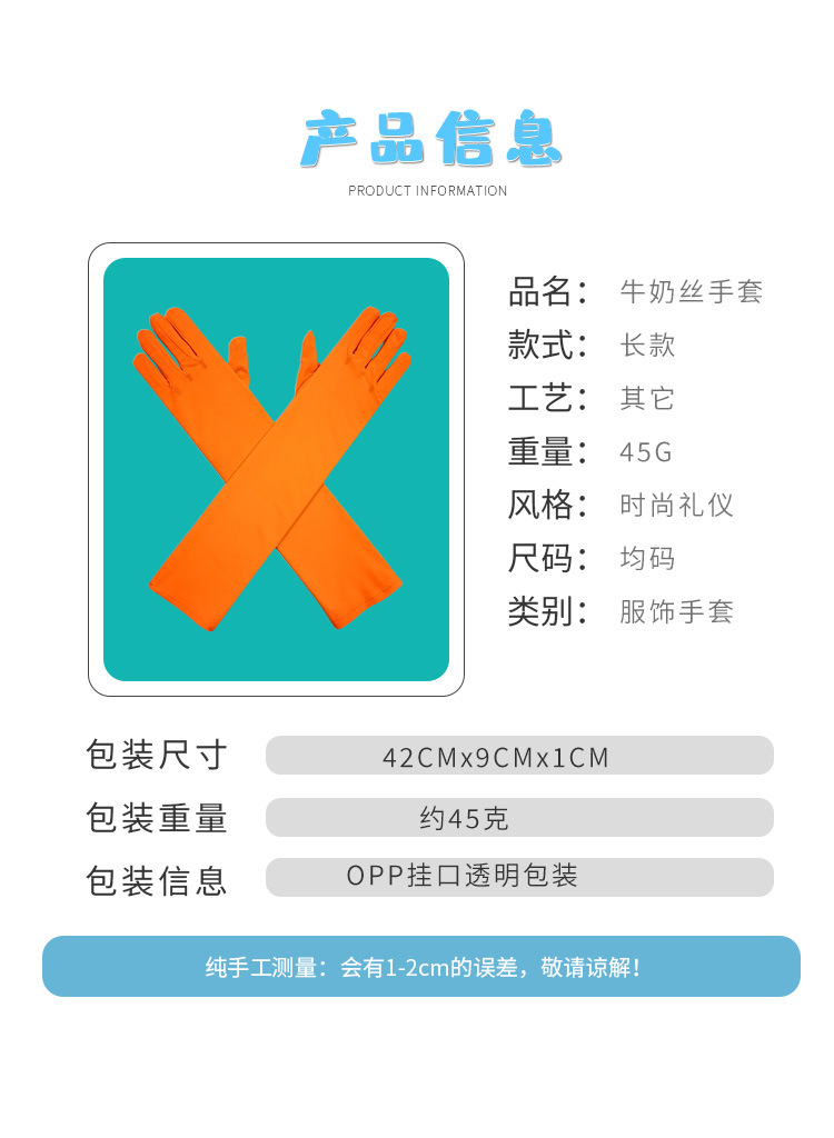 跨境手套女防晒42厘米牛奶丝弹力批发化妆派对舞会万圣节百搭