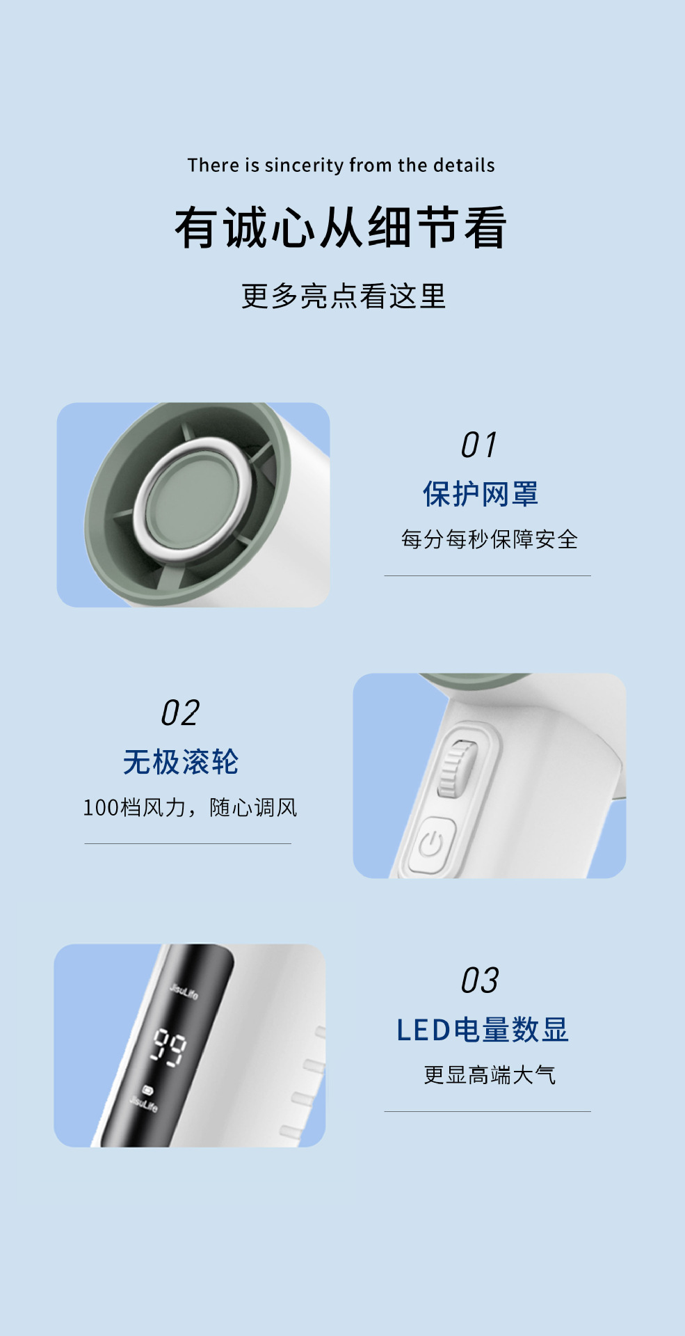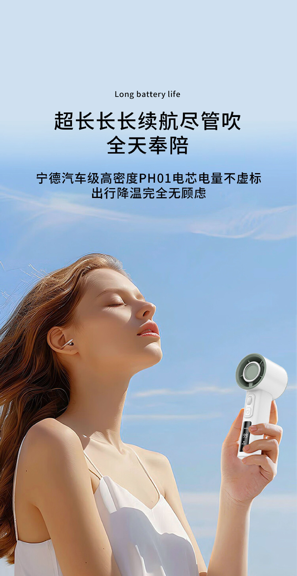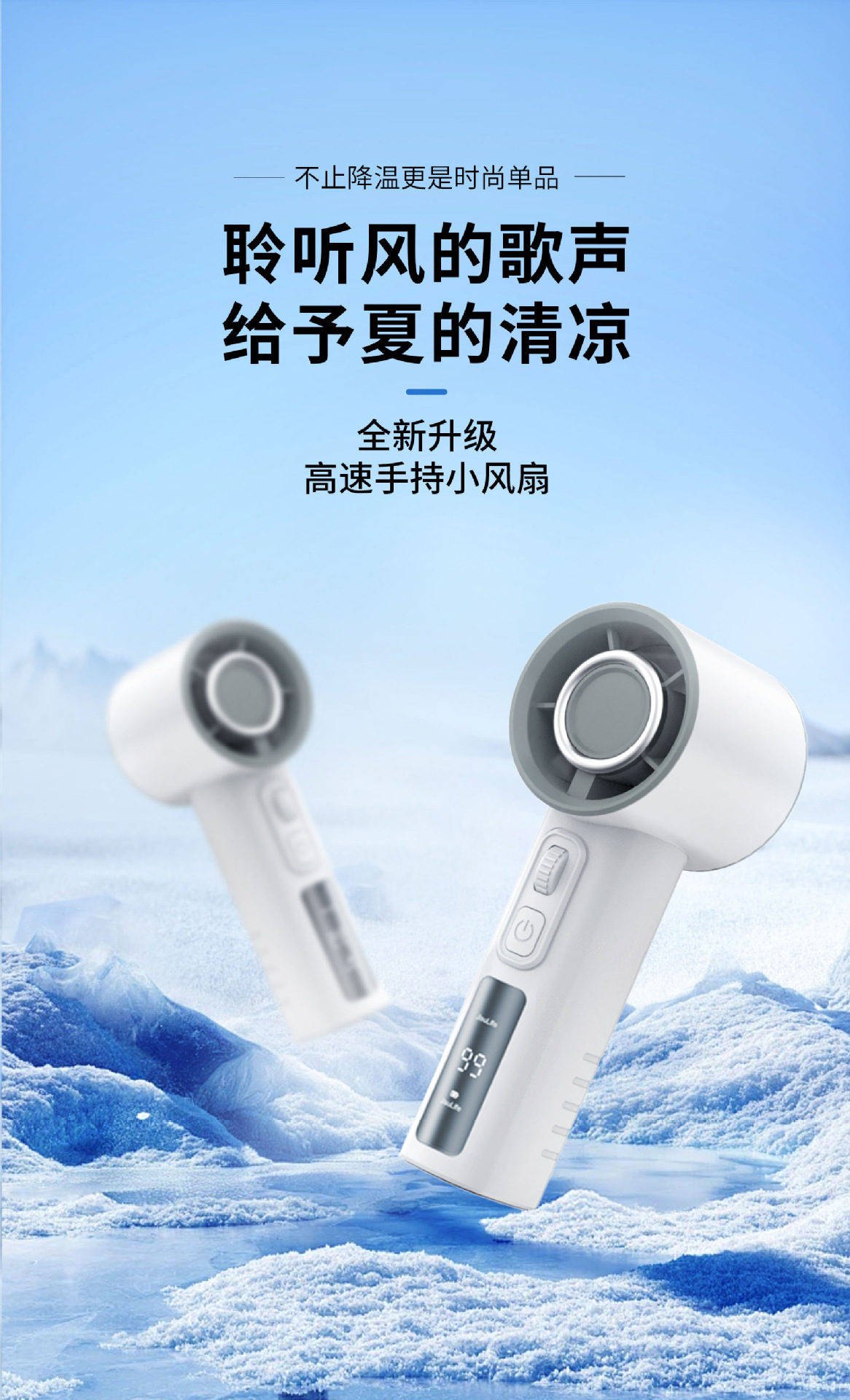新款私模高速手持风扇充电飓风数显小巧便携式续航超长户外小风扇
