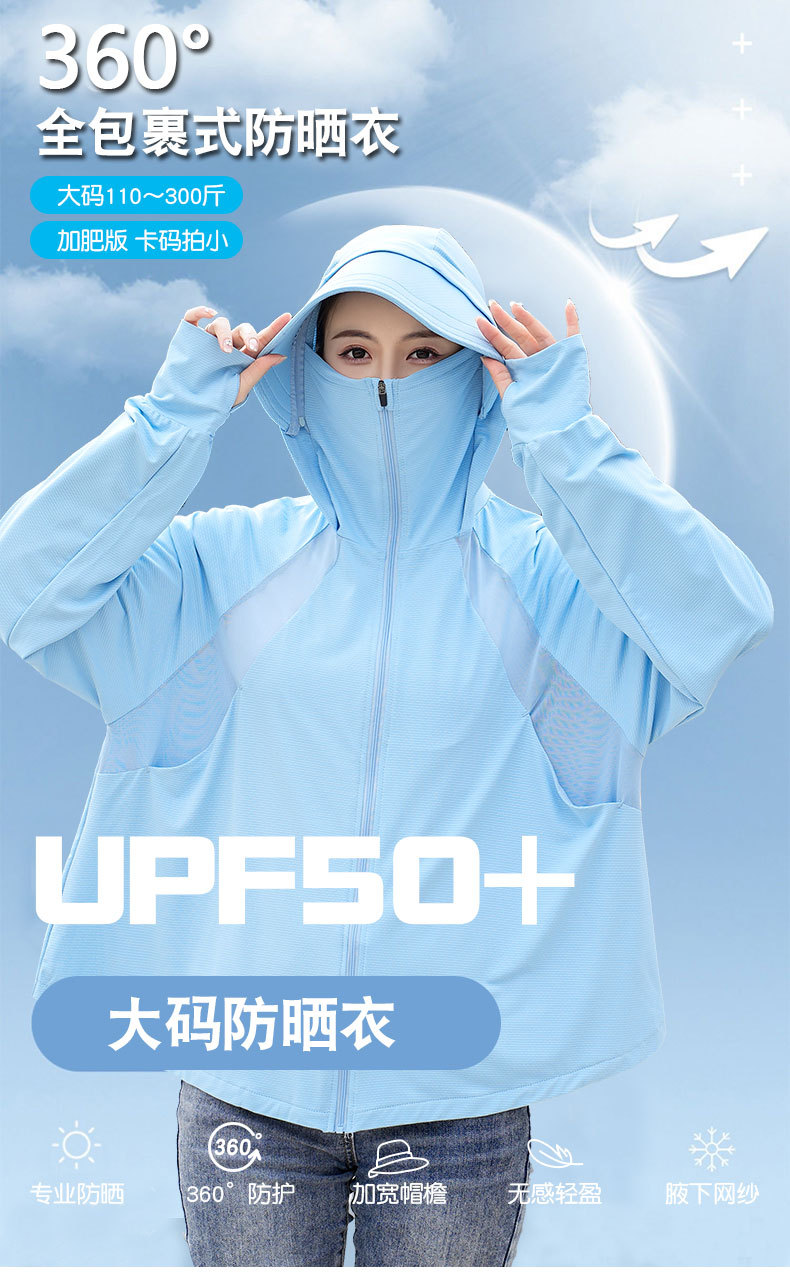 upf50大码胖M防晒衣女夏防紫外线透气超薄皮肤衣防晒衫遮阳服抖篷