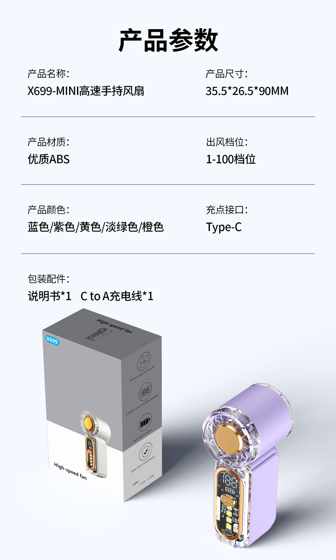 新款迷你高速小风扇便携手持口袋风扇充电大风力小型高速小风炮