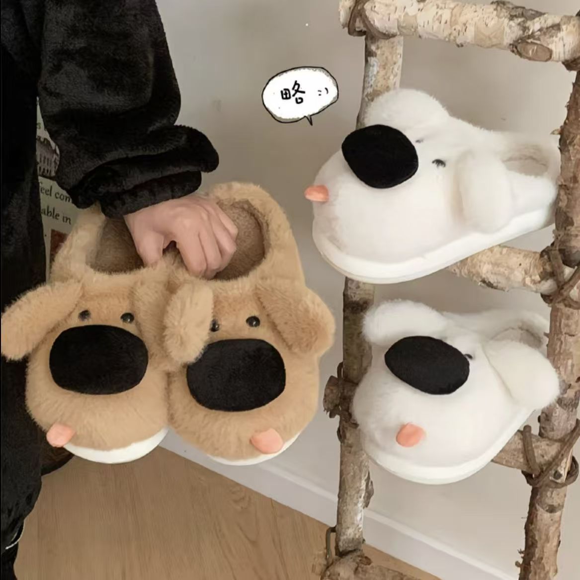 网红新款可爱小狗拖鞋冬季外穿防滑居家加绒室内保暖棉鞋毛毛