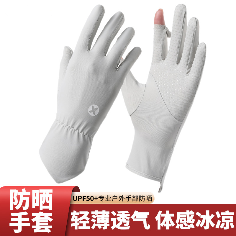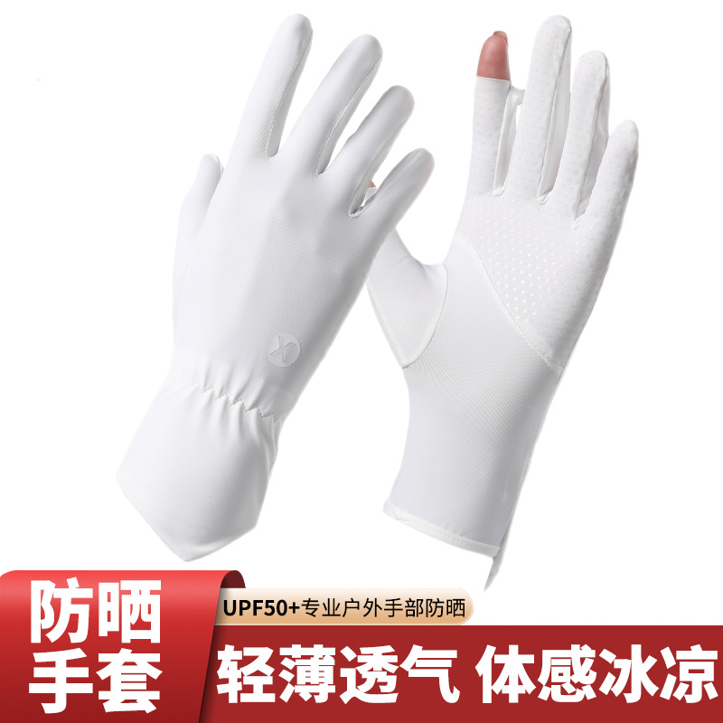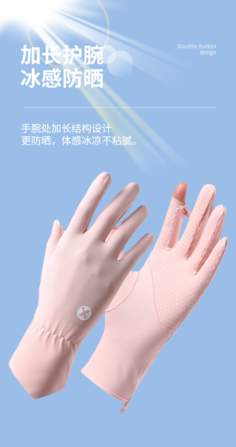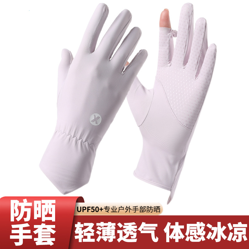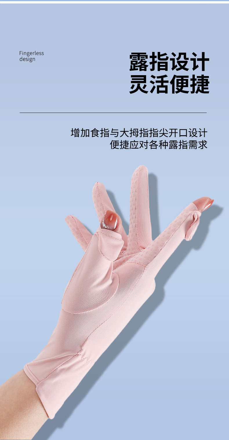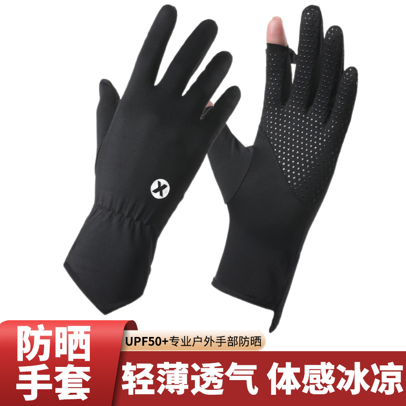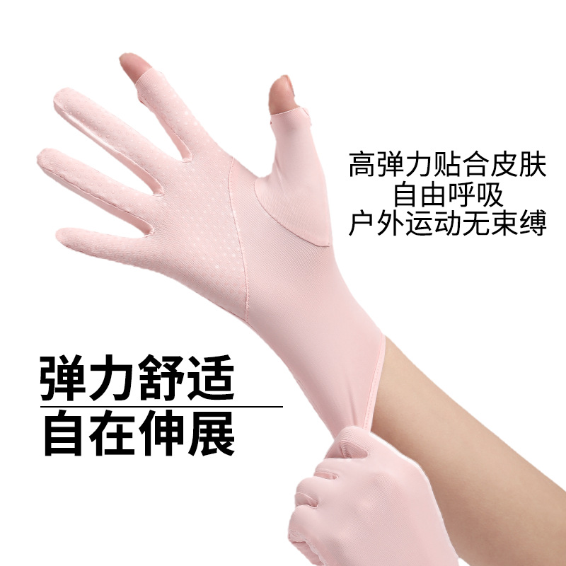防晒手套夏季女款户外开车骑行薄款透气防滑翻盖触屏冰丝骑行手套