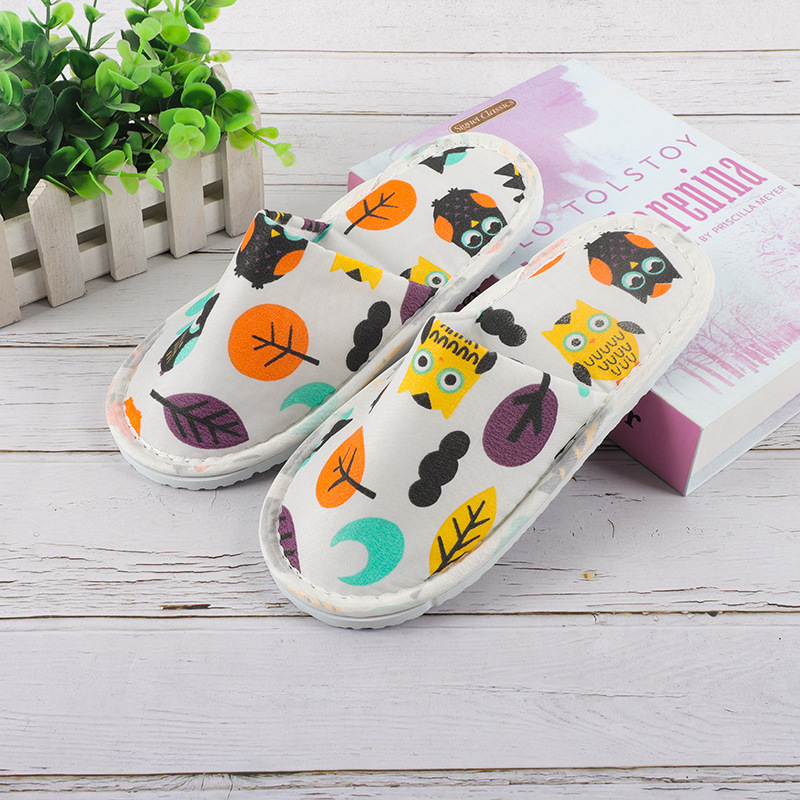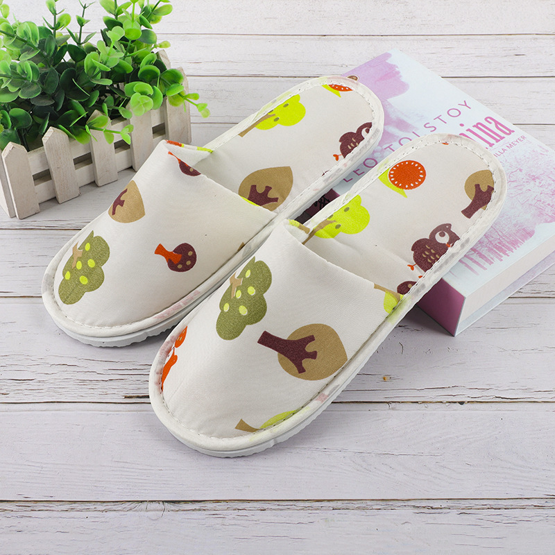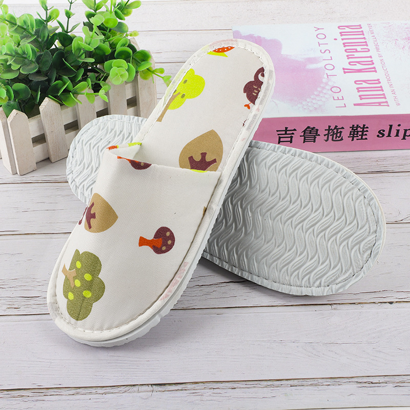 现货供应一次性卡通图案拖鞋酒店民宿客栈居家待客柳叶纹底可批发