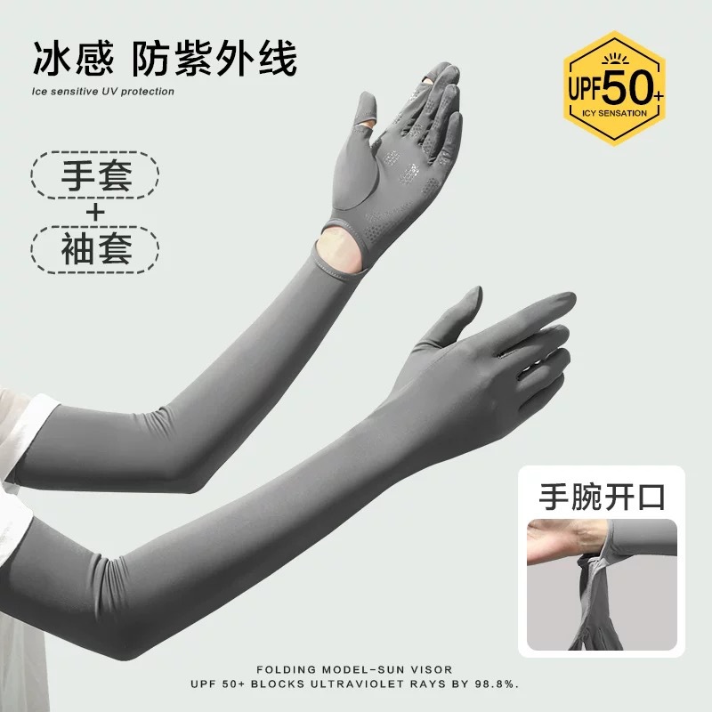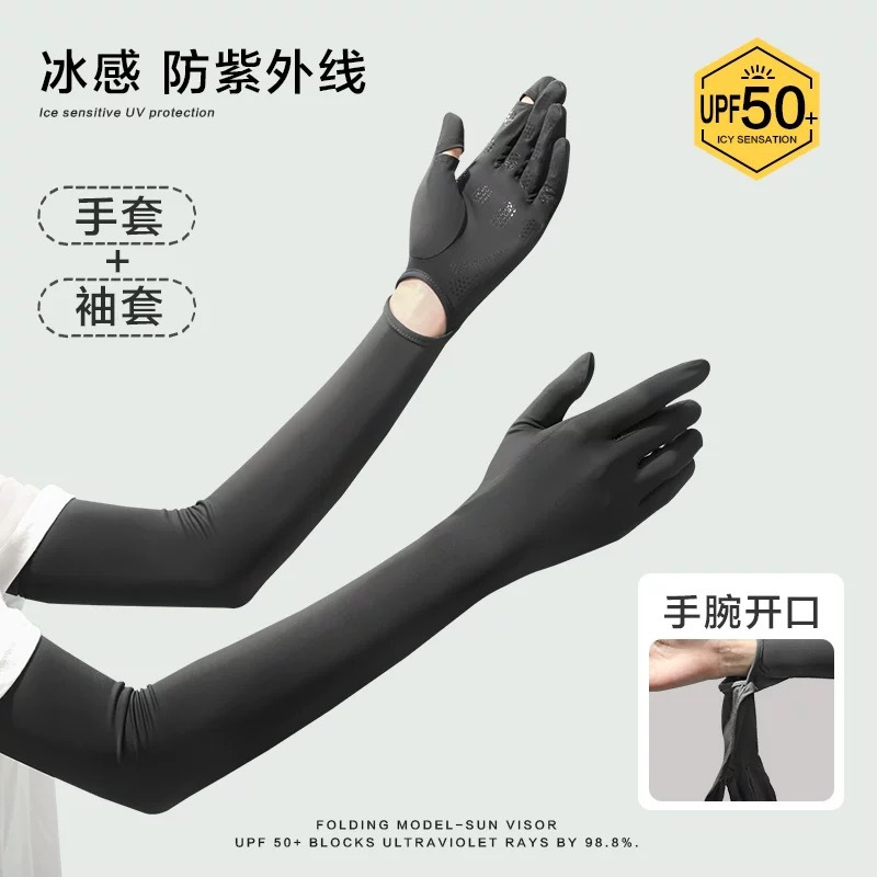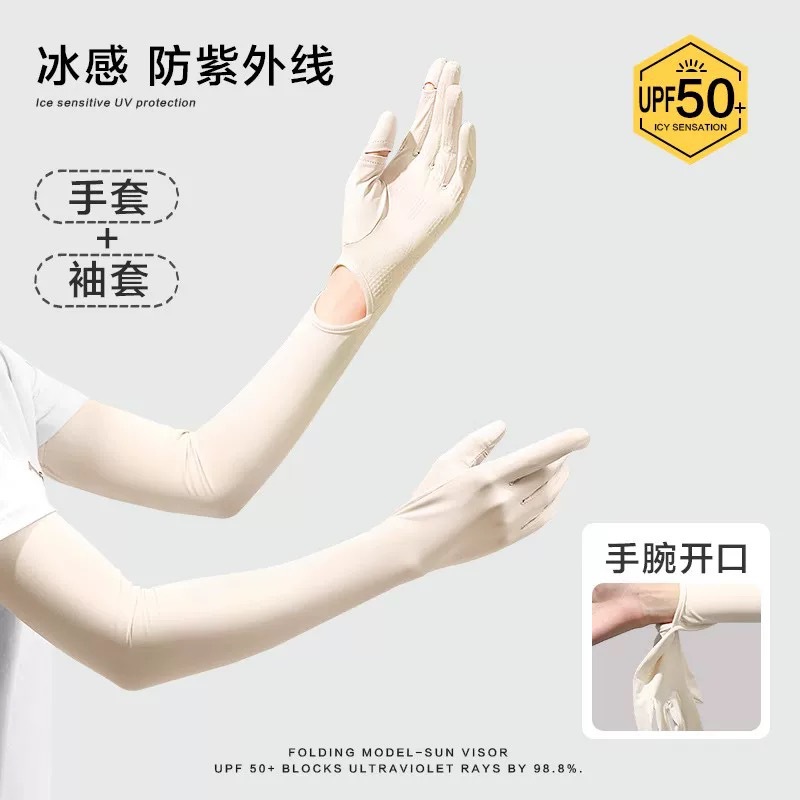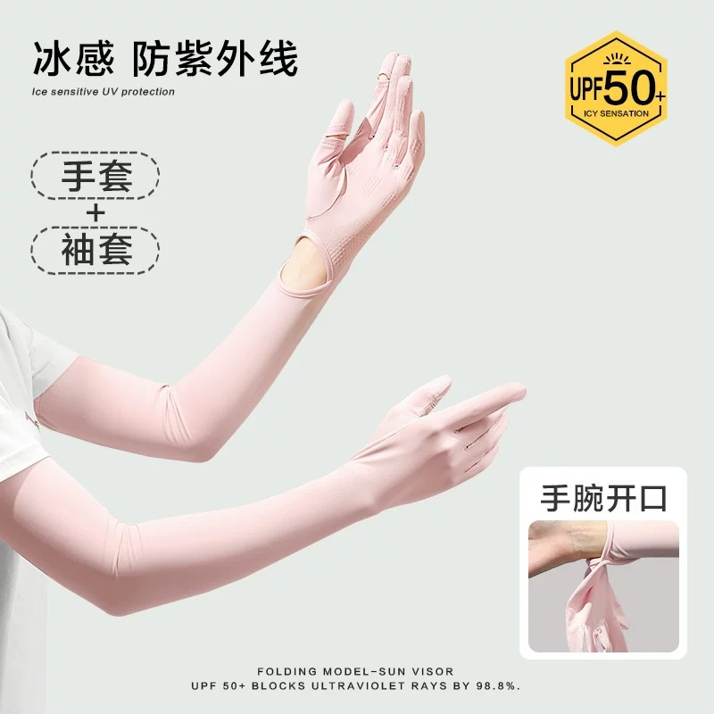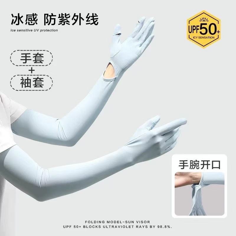 防晒冰袖女长款冰丝袖套防紫外线夏季开车骑车轻薄防晒透气手套