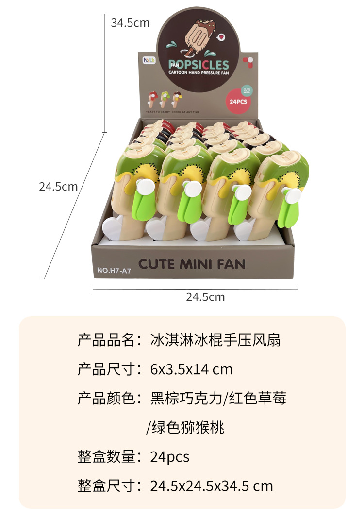 手压小风扇夏天冰棍棒冰水果手摇风扇迷你手动按压手持风扇摆地摊