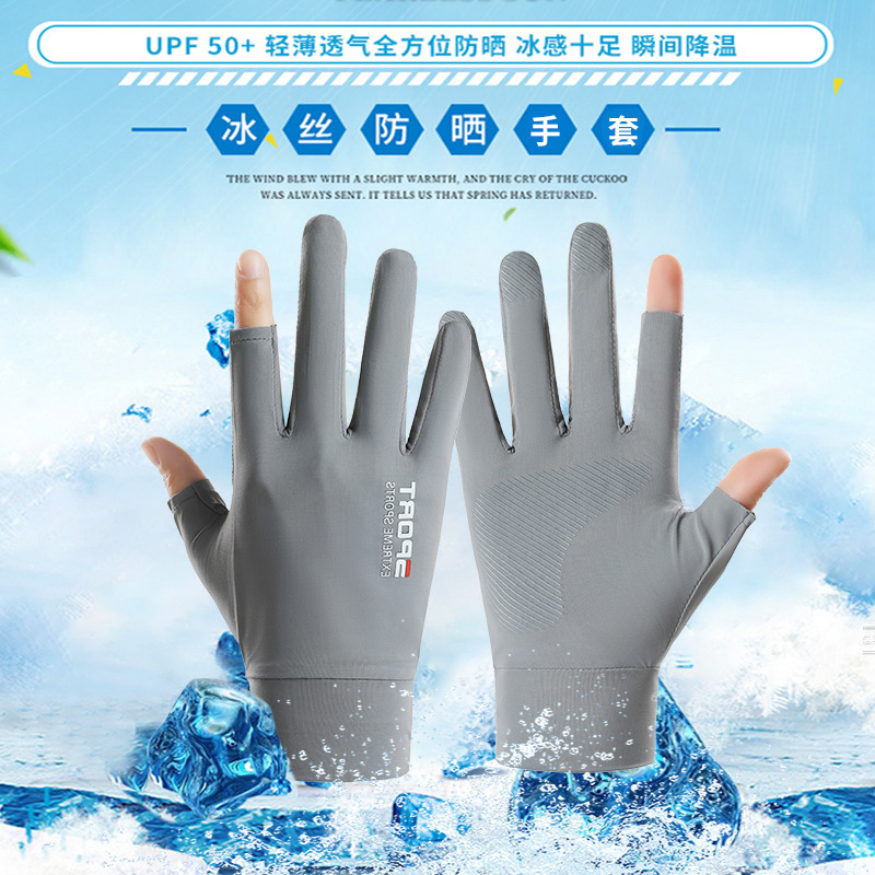 防晒手套男夏季新款露指薄款冰丝半指防晒手套开车钓鱼露指手套男