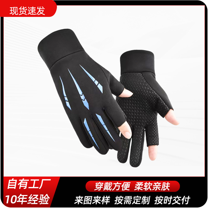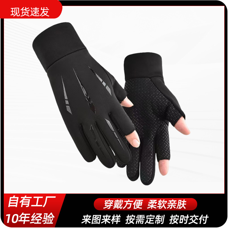 男女通用漏指棉款手套骑行户外运动送外卖钓鱼保暖二指2025新款