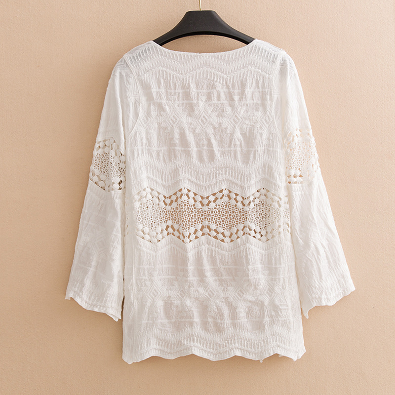 中间镂空 纯棉绣花蕾丝开衫 外套2019年春装新款 海边度假防晒衣