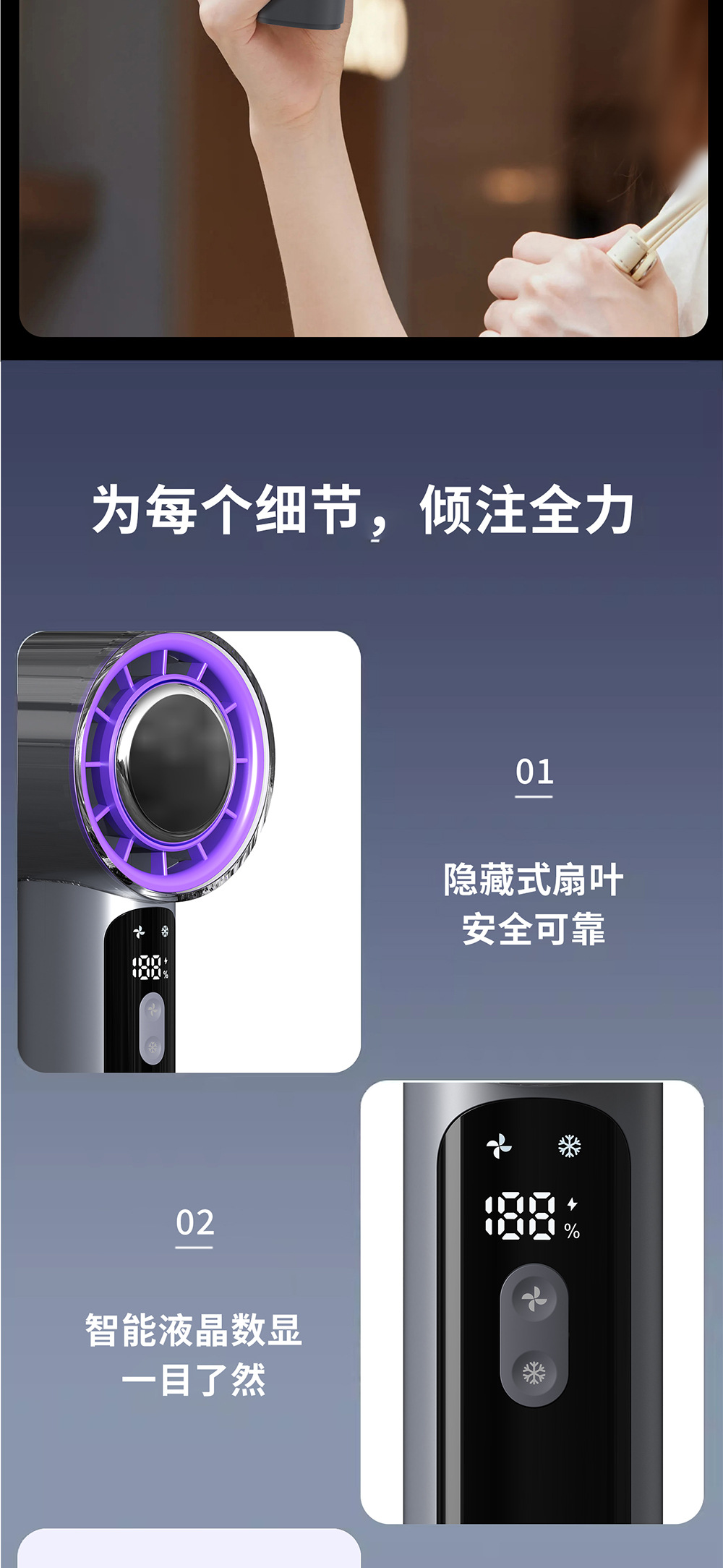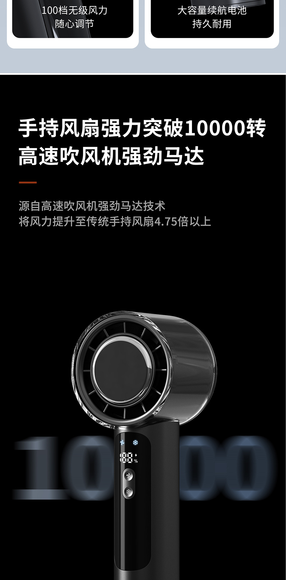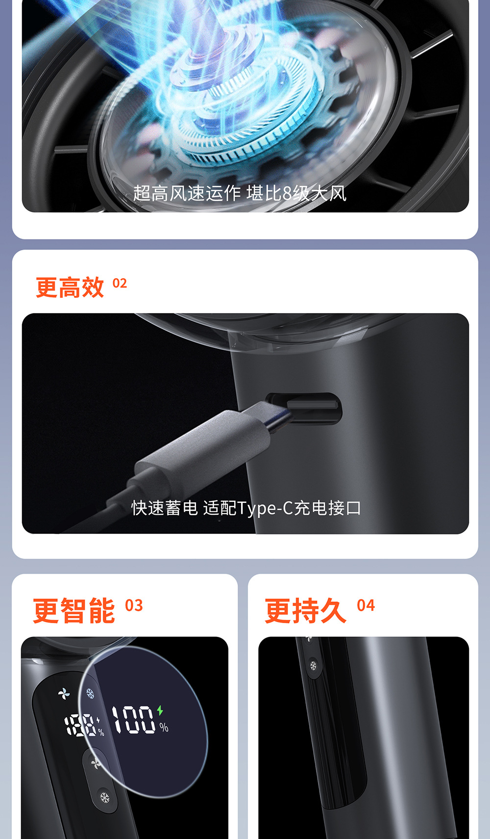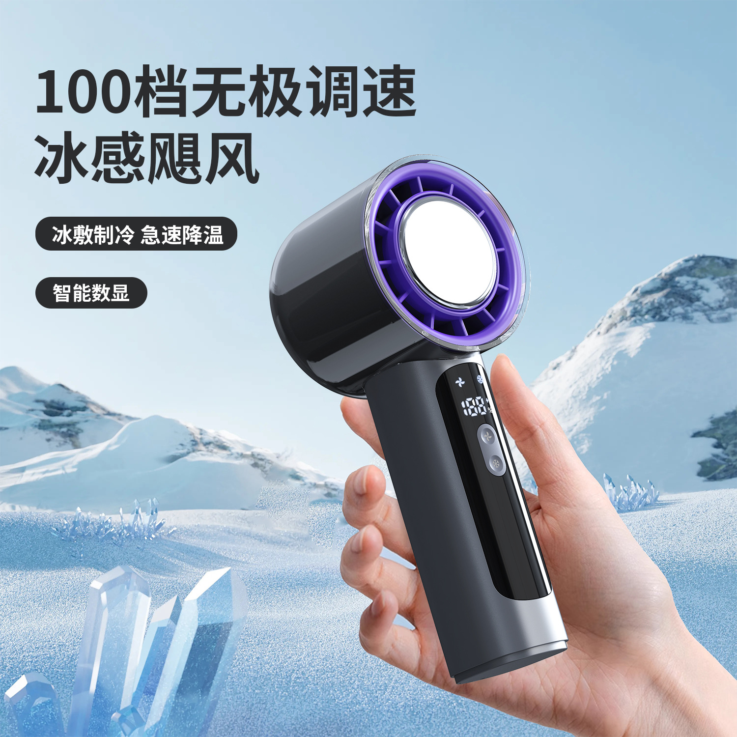 2025新款100档高速手持风扇usb迷你充电小风扇冰敷半导体电风扇