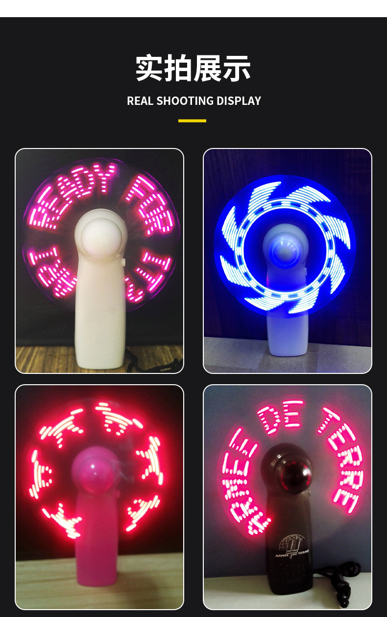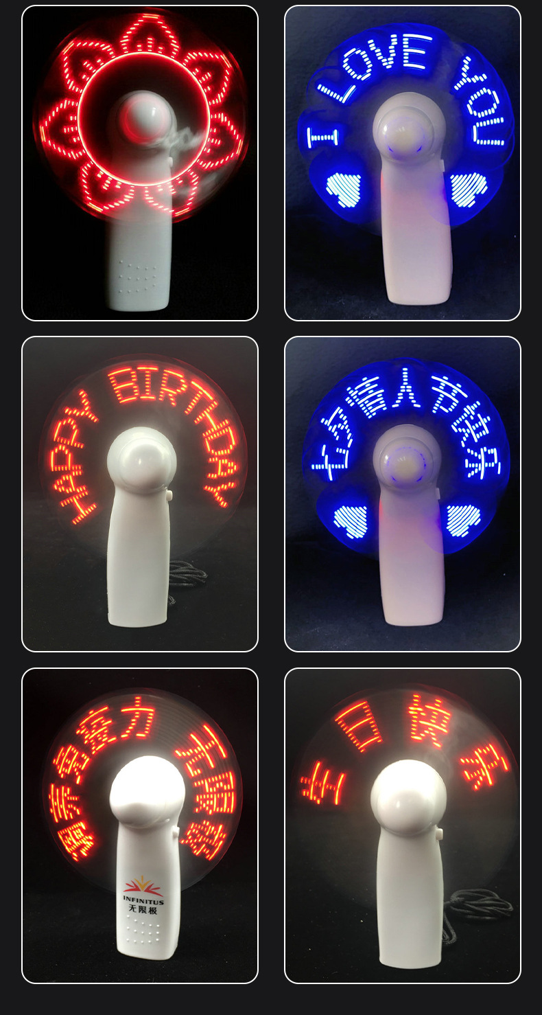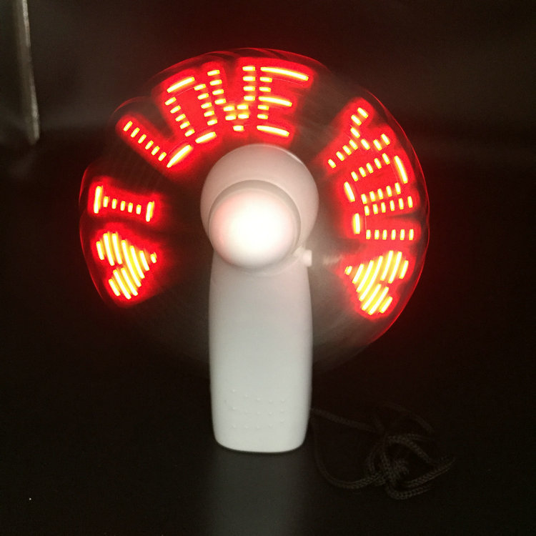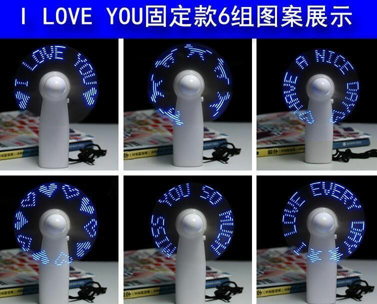 厂家现货LED闪字风扇时尚小礼品电脑烧录手持DIY可改字发光风扇
