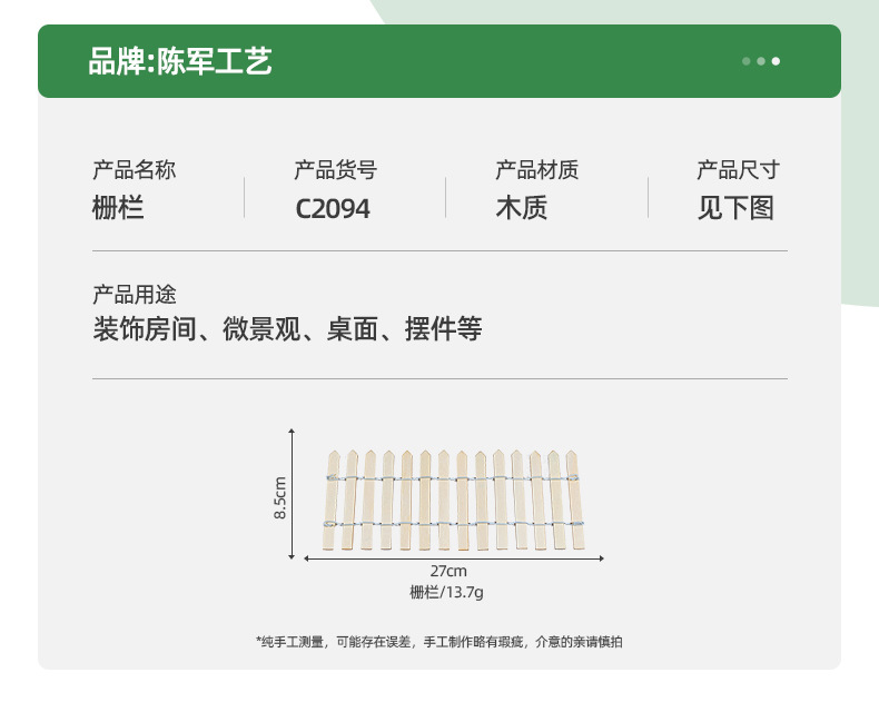 微景观创意原色大号木质栅栏 diy装饰品配件生态瓶园艺造景小摆件