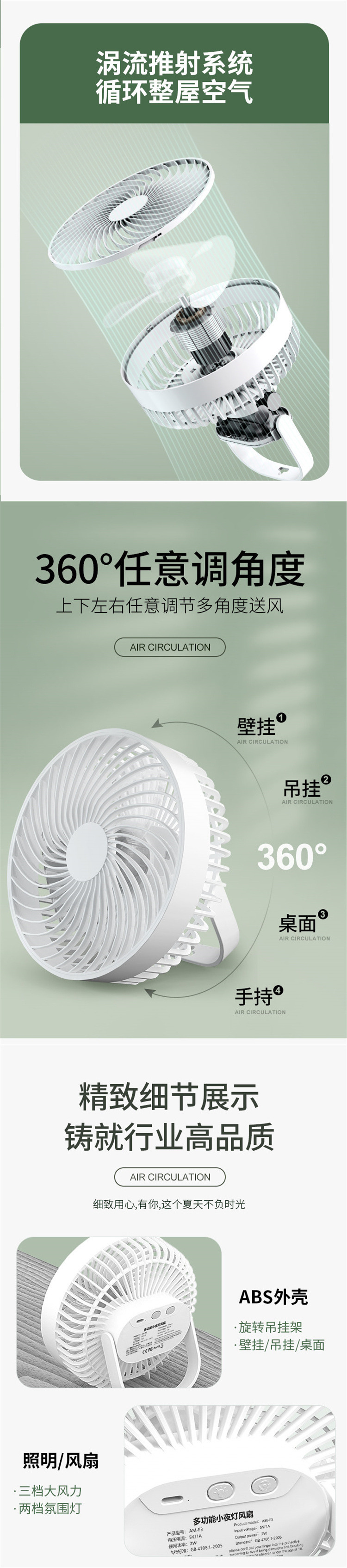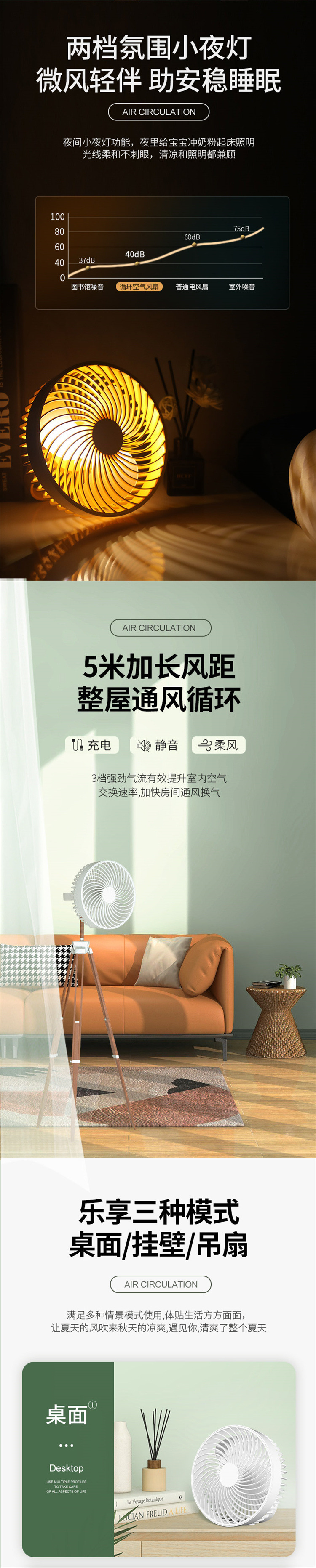 吊扇小风扇学生宿舍床上usb充电超静音电风扇大风力户外露营帐篷