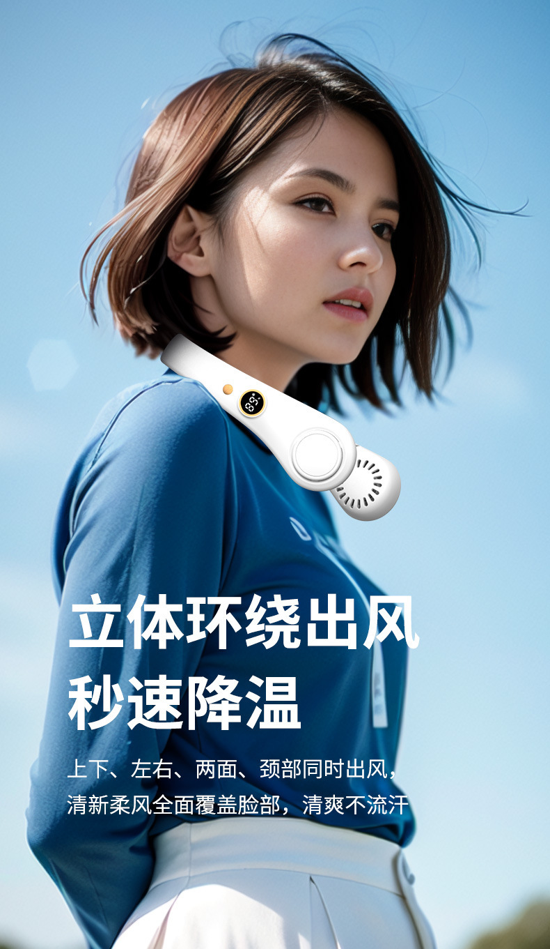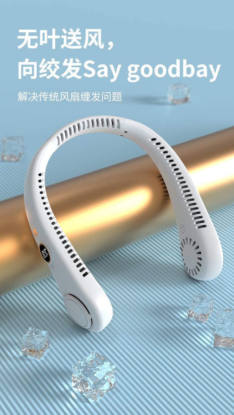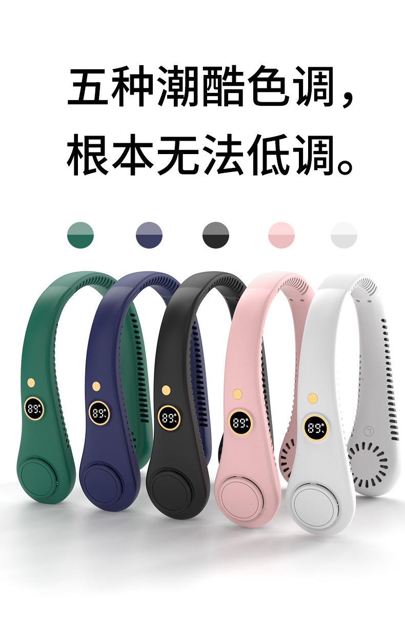 跨境五档数显挂脖风扇静音户外运动USB小风扇 无叶挂脖电风扇迷你