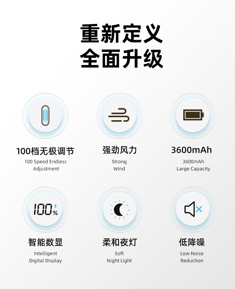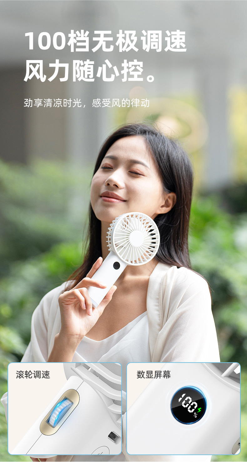 2026新款手持小风扇 usb户外随身夜灯滚轮100档大风力小风扇跨境