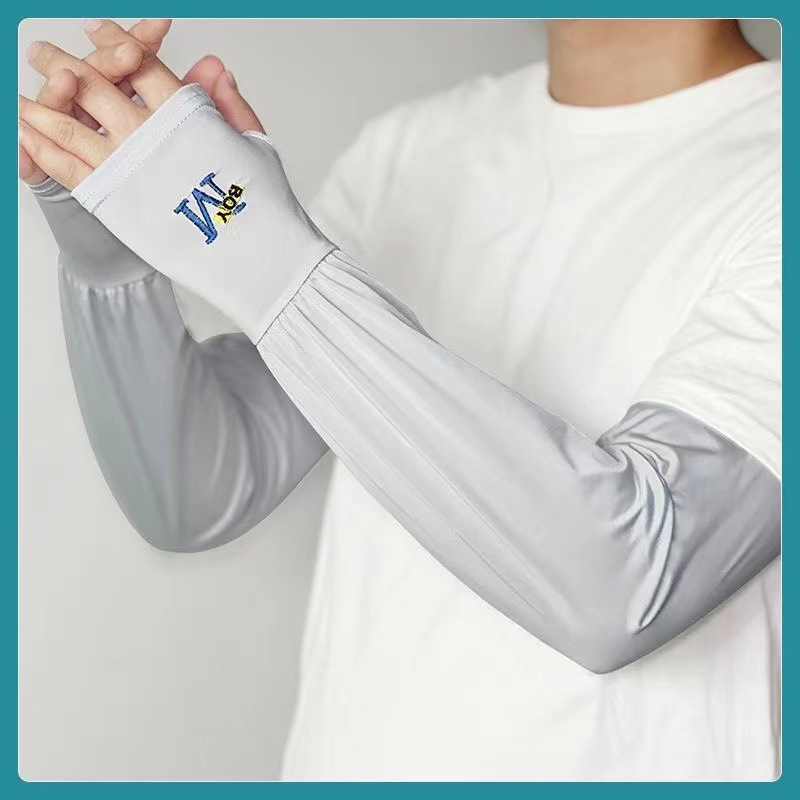 夏季男款防晒冰袖户外骑行开车防紫外线宽松手臂护袖防晒刺绣袖套