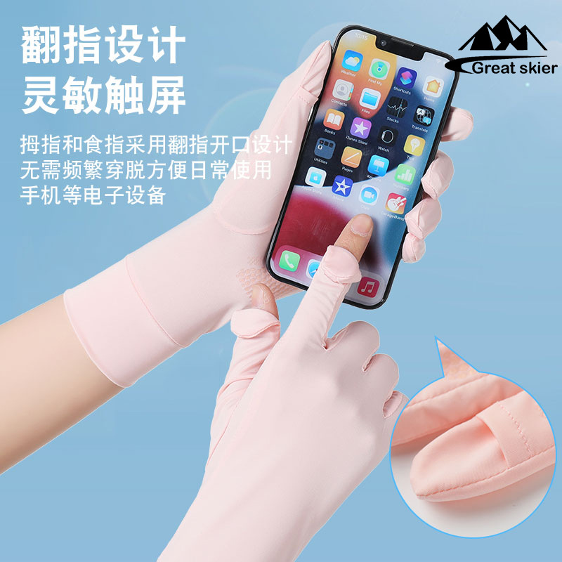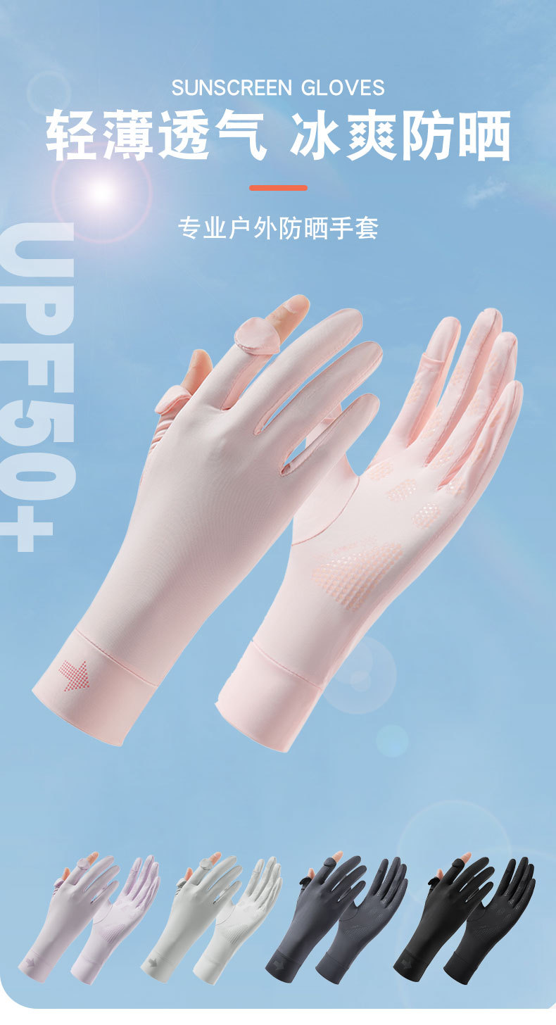 夏季防晒手套女士户外开车骑车防滑防紫外线冰丝薄款骑行手套跨境